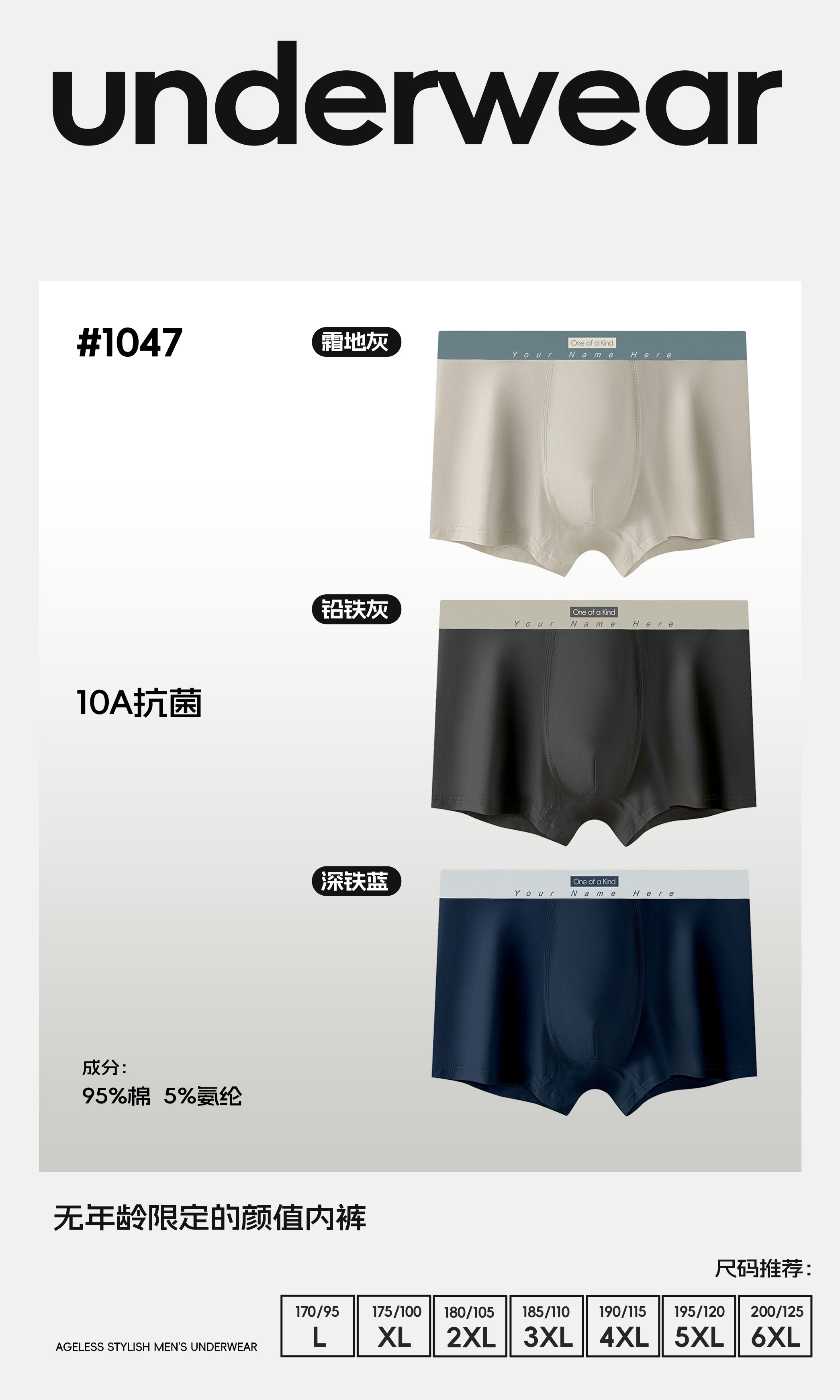 男士新疆长绒棉明筋时尚平角内裤简约全年龄可穿1040/146/1047/1049
