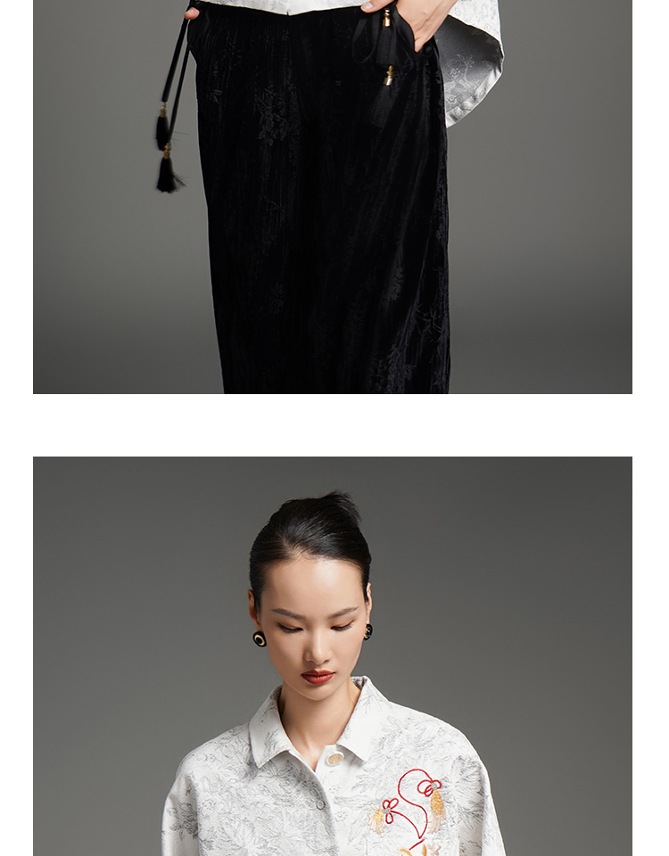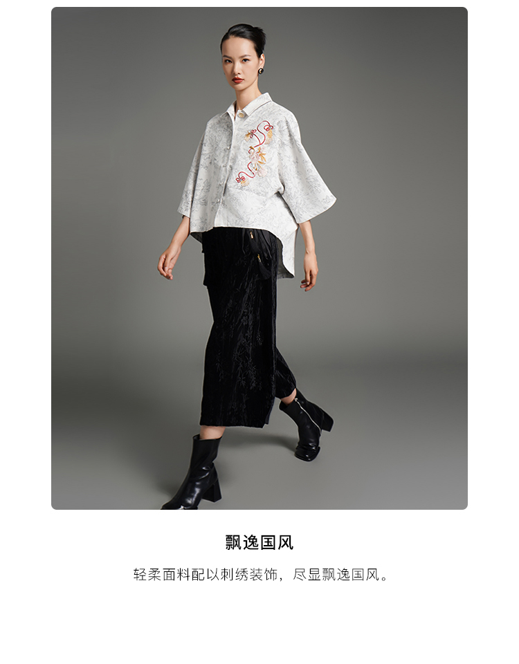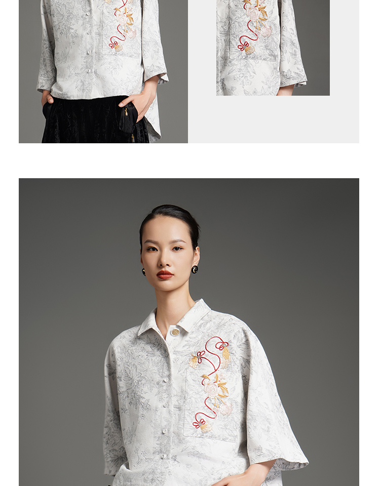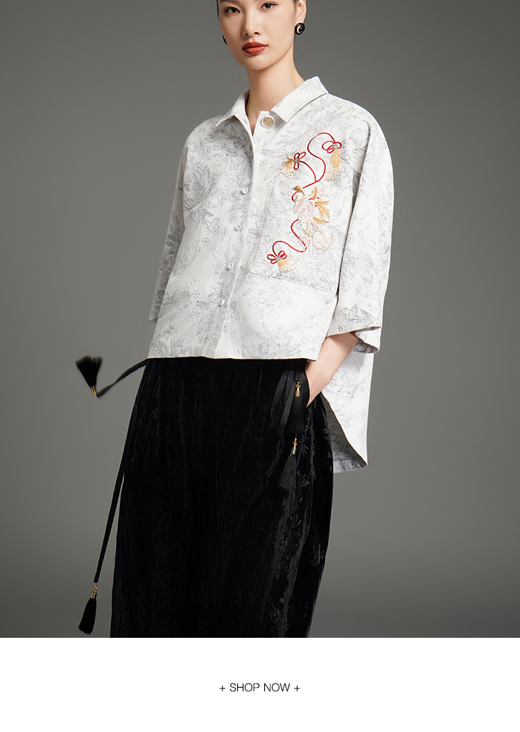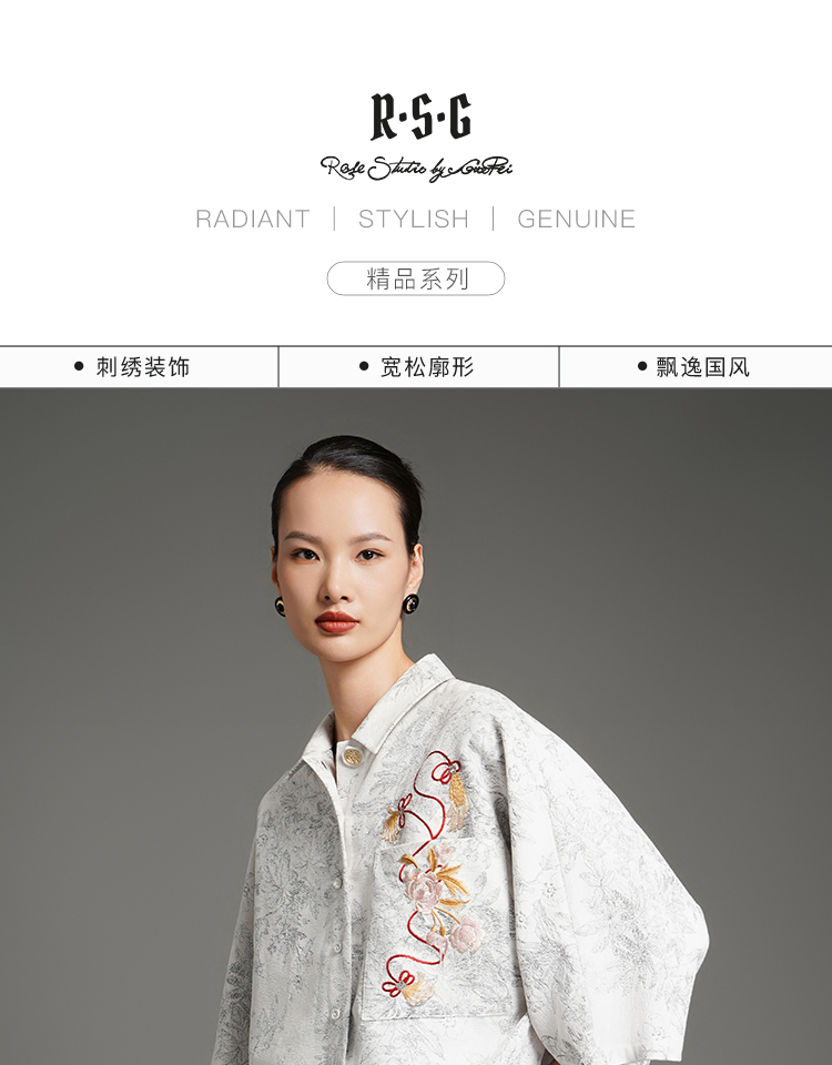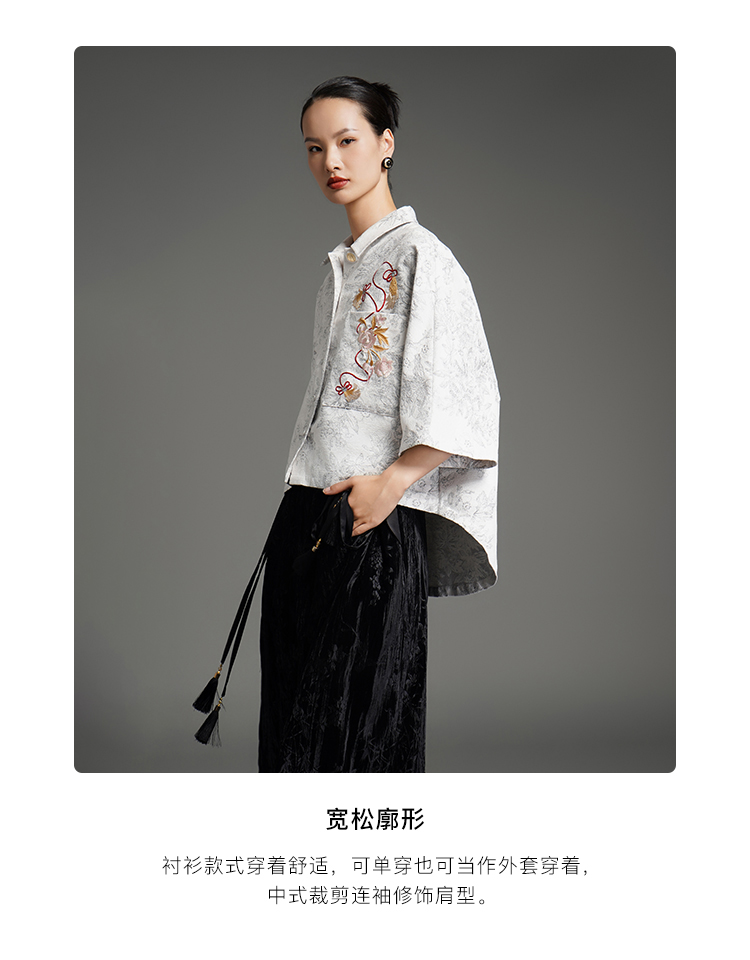 RSG郭培成衣品牌新中式芙蓉花刺绣国风设计感宽松款衬衫外套