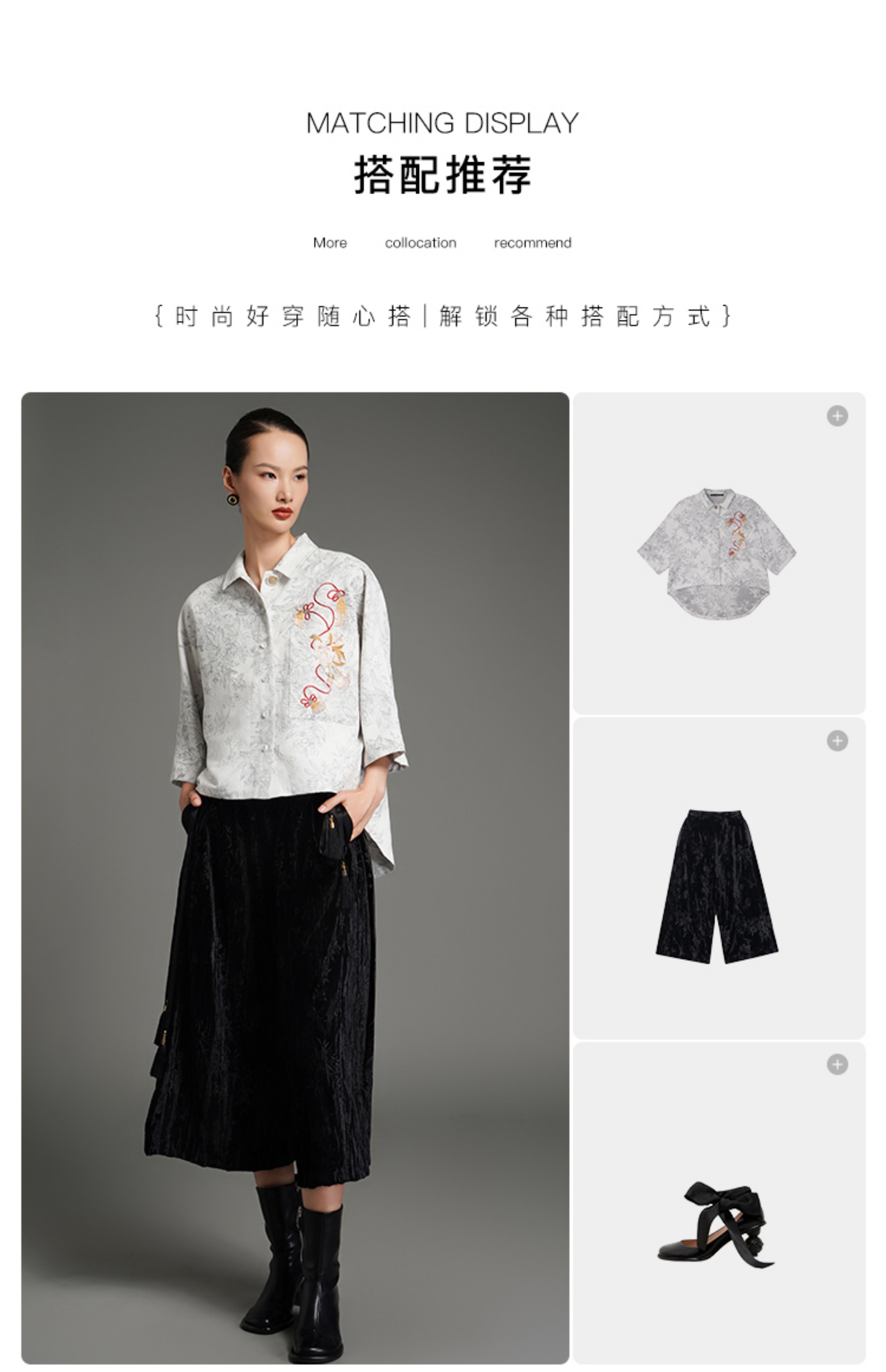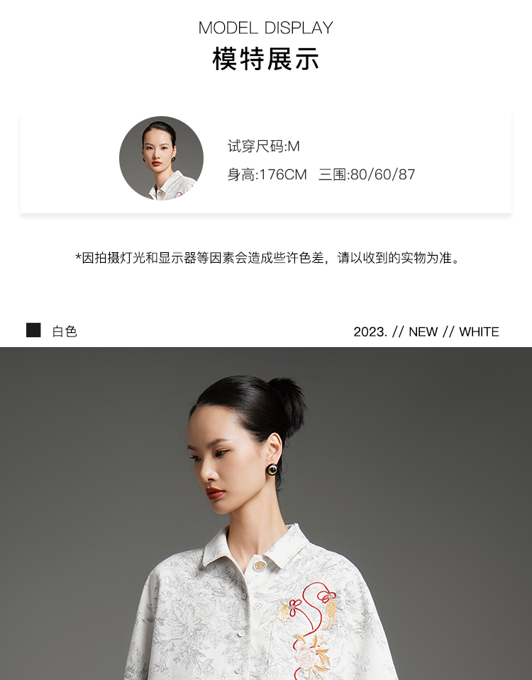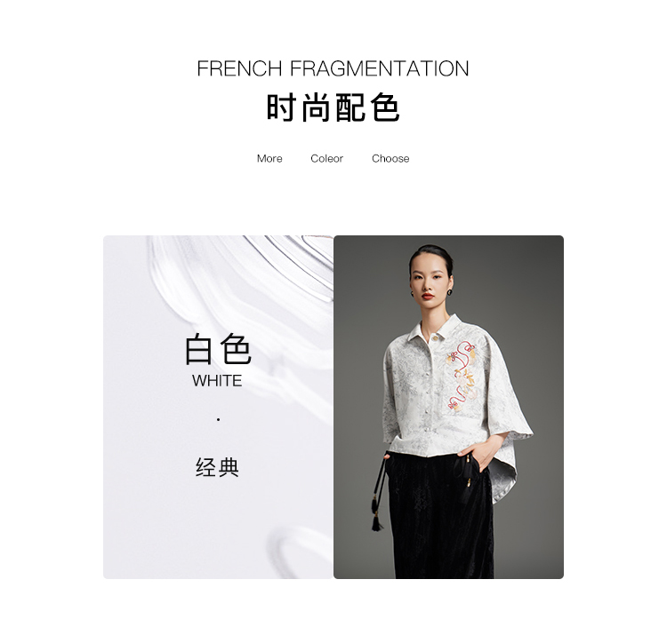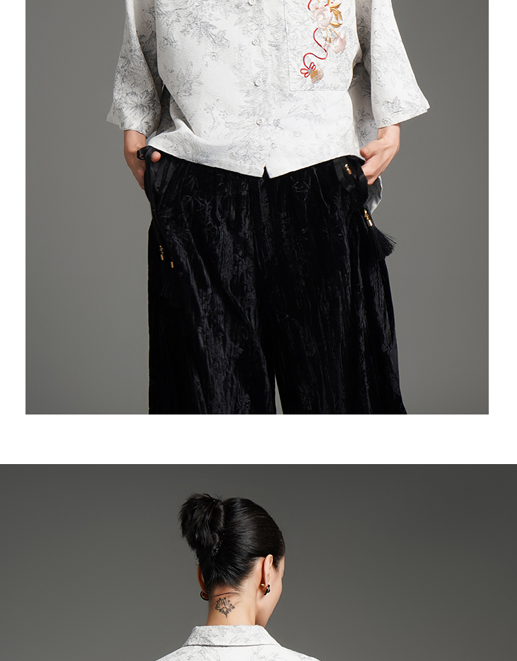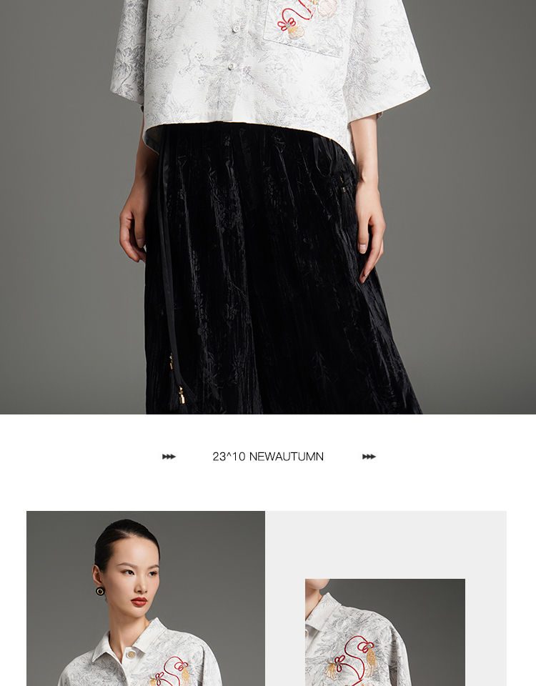 RSG郭培成衣品牌新中式芙蓉花刺绣国风设计感宽松款衬衫外套