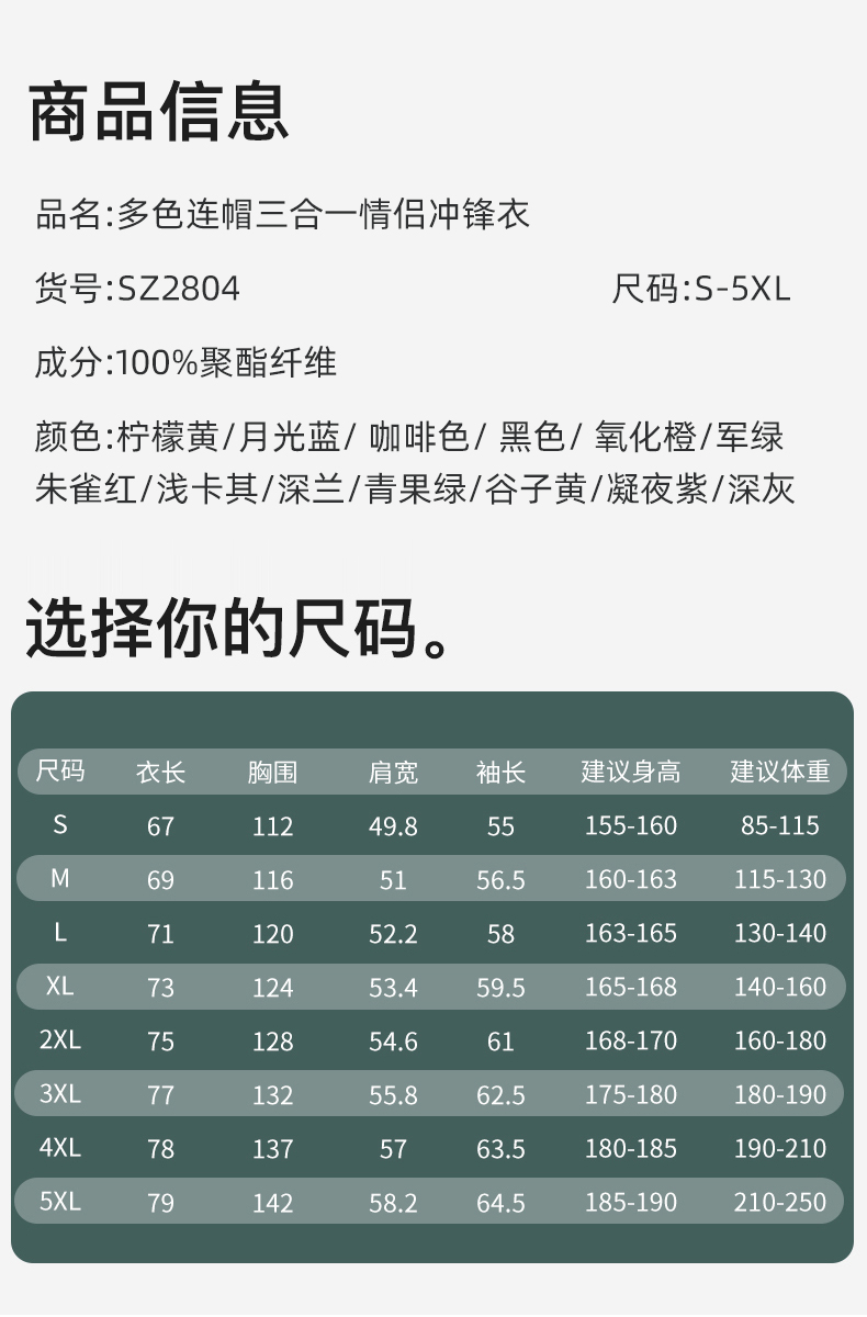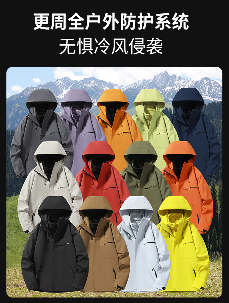臻选推荐【原价298双11特价149】男女同款13色连帽三合一情侣冲锋衣可拆卸登山服SZ2804
