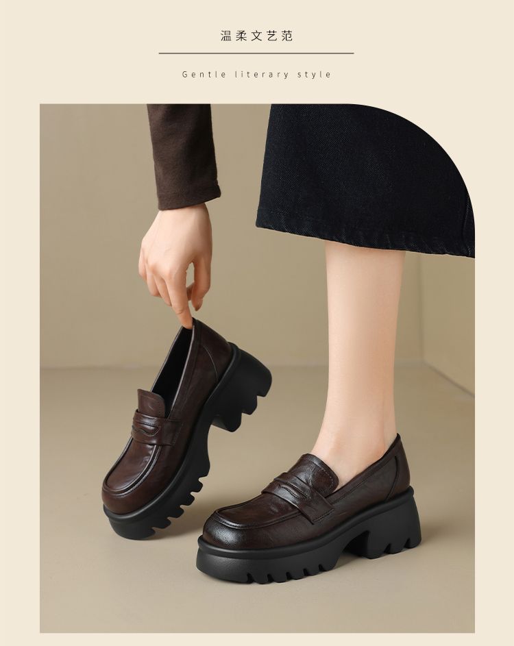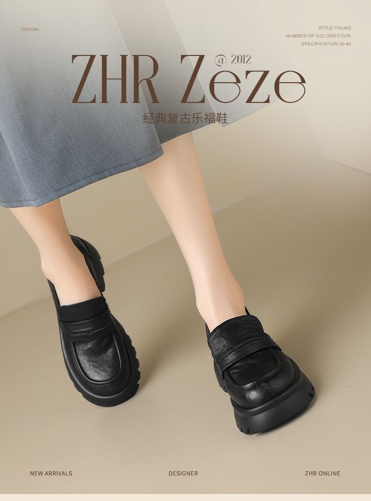 ZHR则则复古法式小皮鞋2024新款英伦乐福鞋厚底单鞋jk女鞋一脚蹬