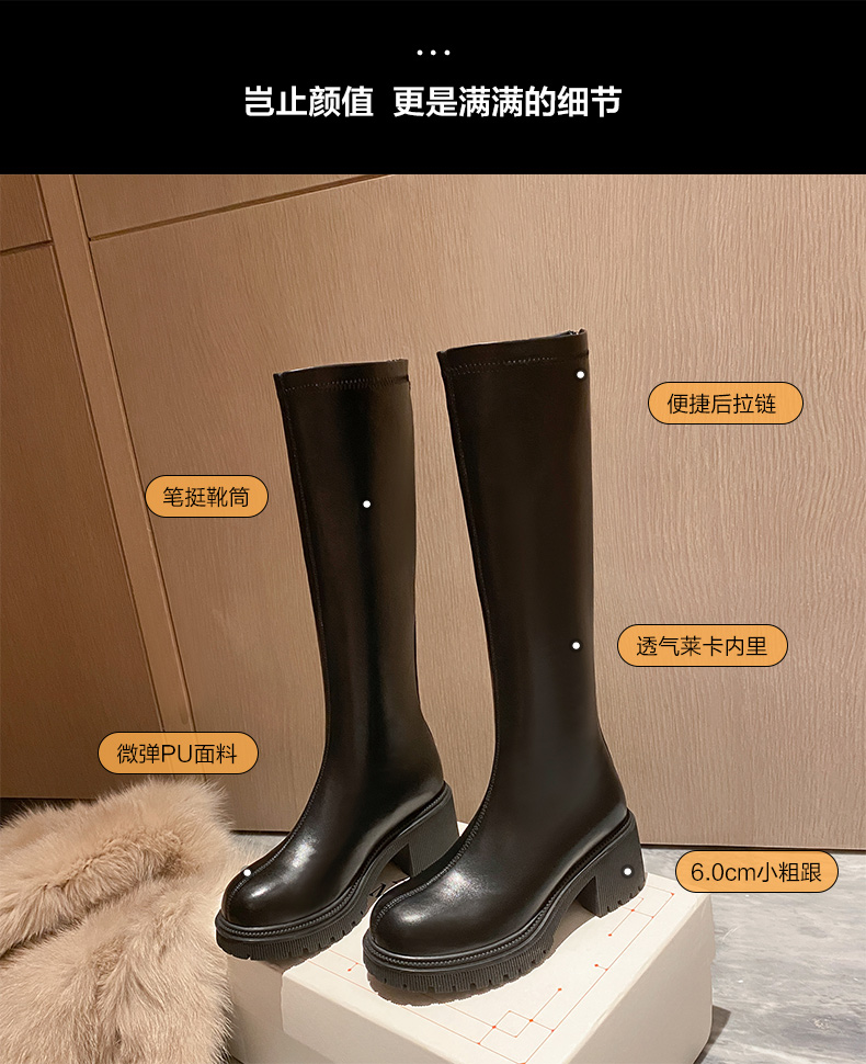 ZHR2023年秋季新款显瘦甜酷厚底长筒靴女百搭时尚韩版长筒靴