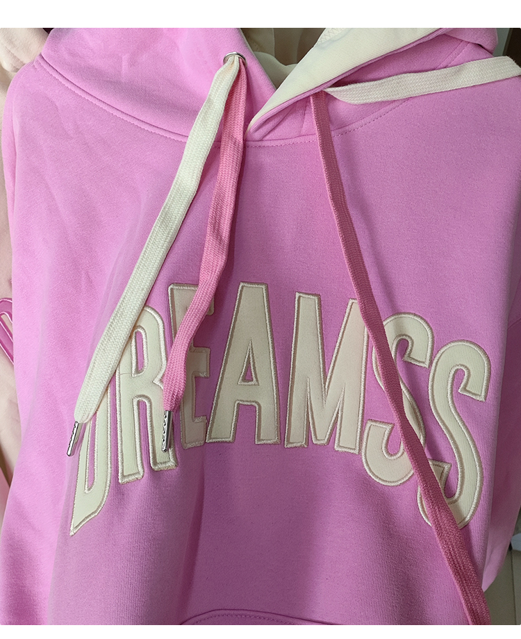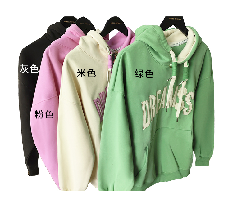 SZ2673连帽卫衣春秋款带兜纯棉女款字母刺绣上衣时尚宽松韩版卫衣