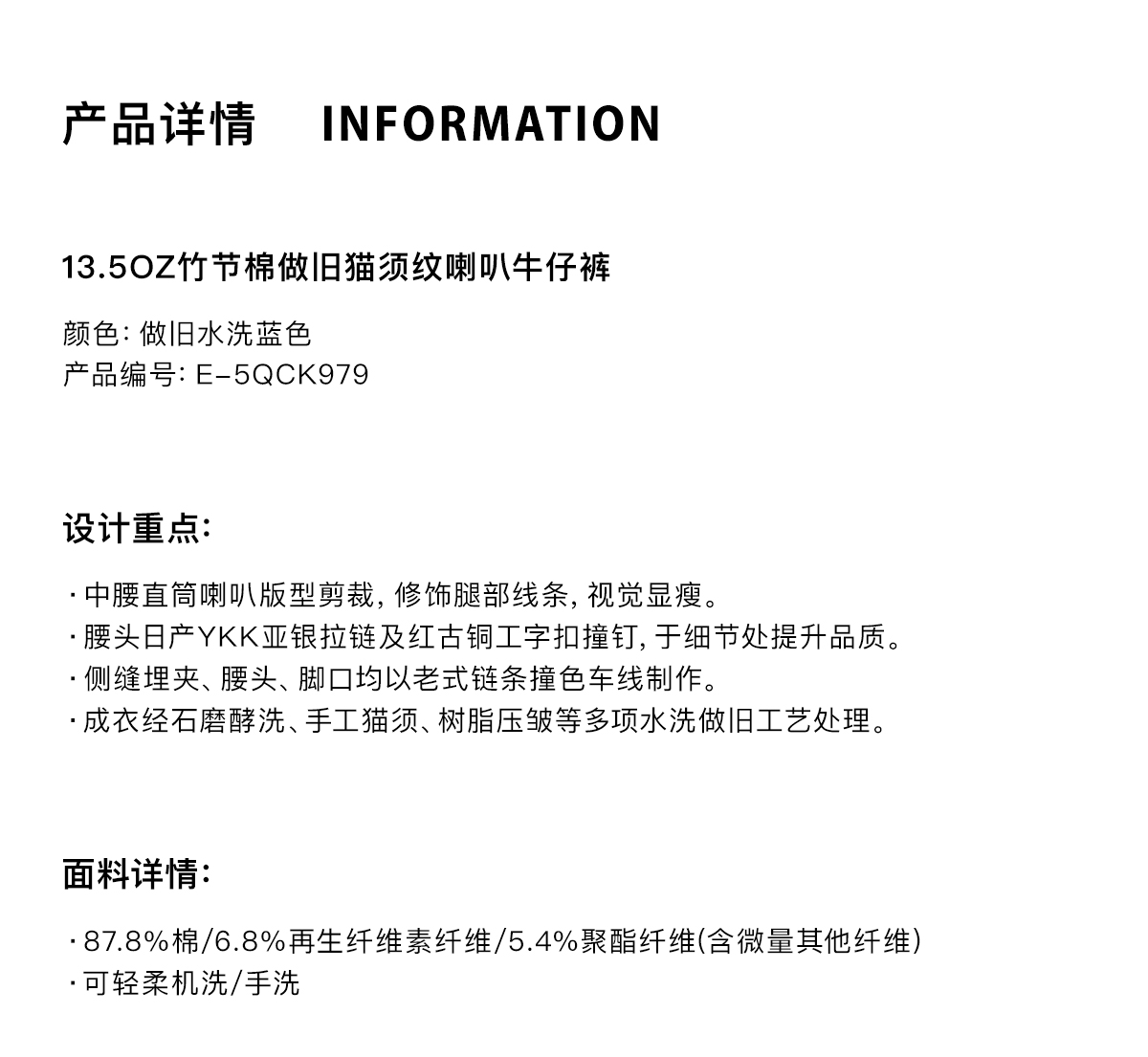 Evistub girls/E-5QCK979/竹节棉酵洗做旧牛仔裤女