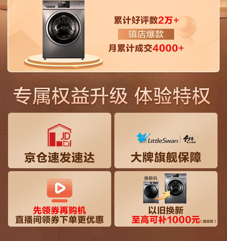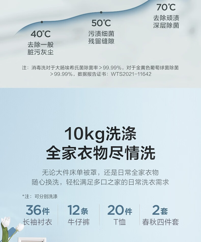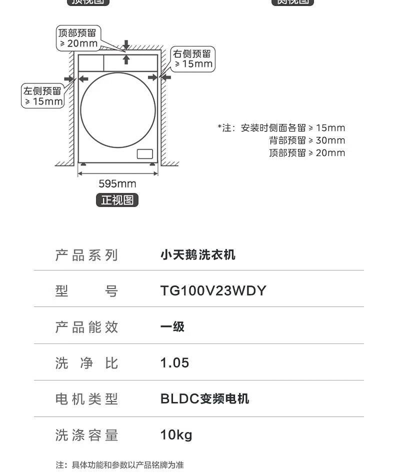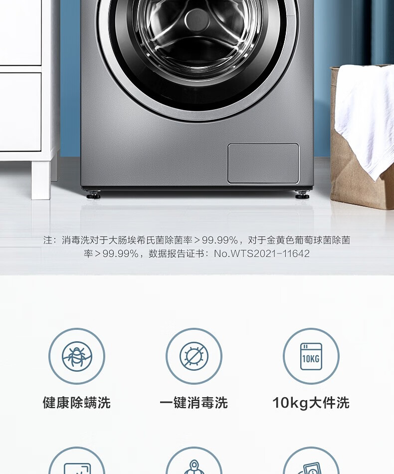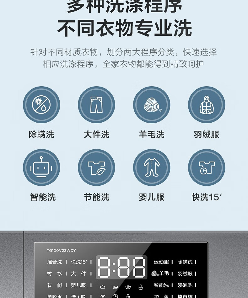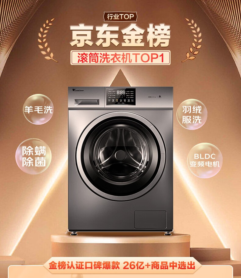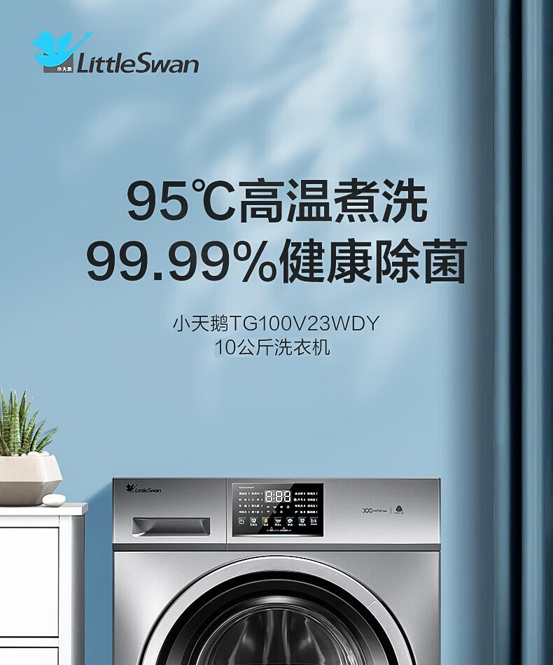 小天鹅(LittleSwan)TG100V23WDY 滚筒洗衣机全自动 10公斤大容量变频电机家用智能 深层除菌除螨 婴儿服羽绒服洗可洗内衣