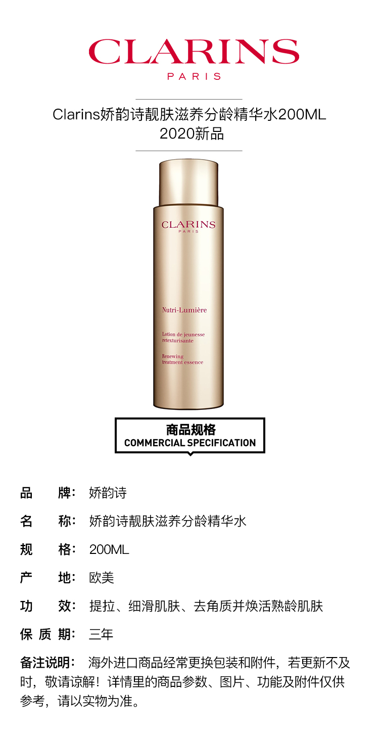 Clarins娇韵诗靓肤滋养分龄精华水200ML 2020新品