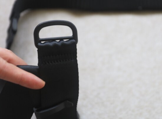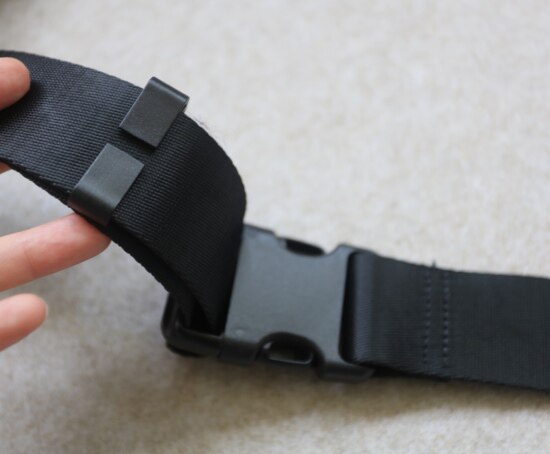 背带 长度可调节 有个D型扣 四截缝线上的隔断 还能挂钩扣