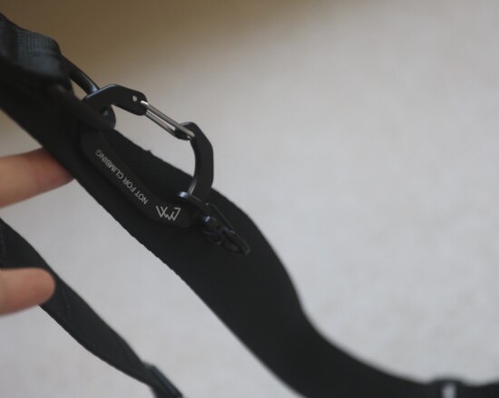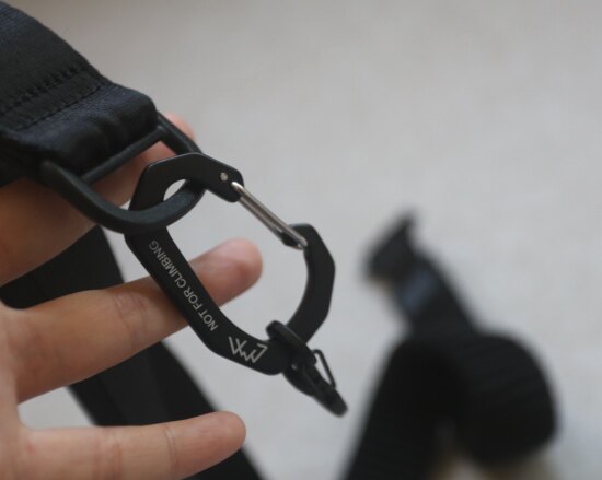 再来说背带 也是非常棒的设计 而且 四角都可固定背带 扣具上 都有刻字