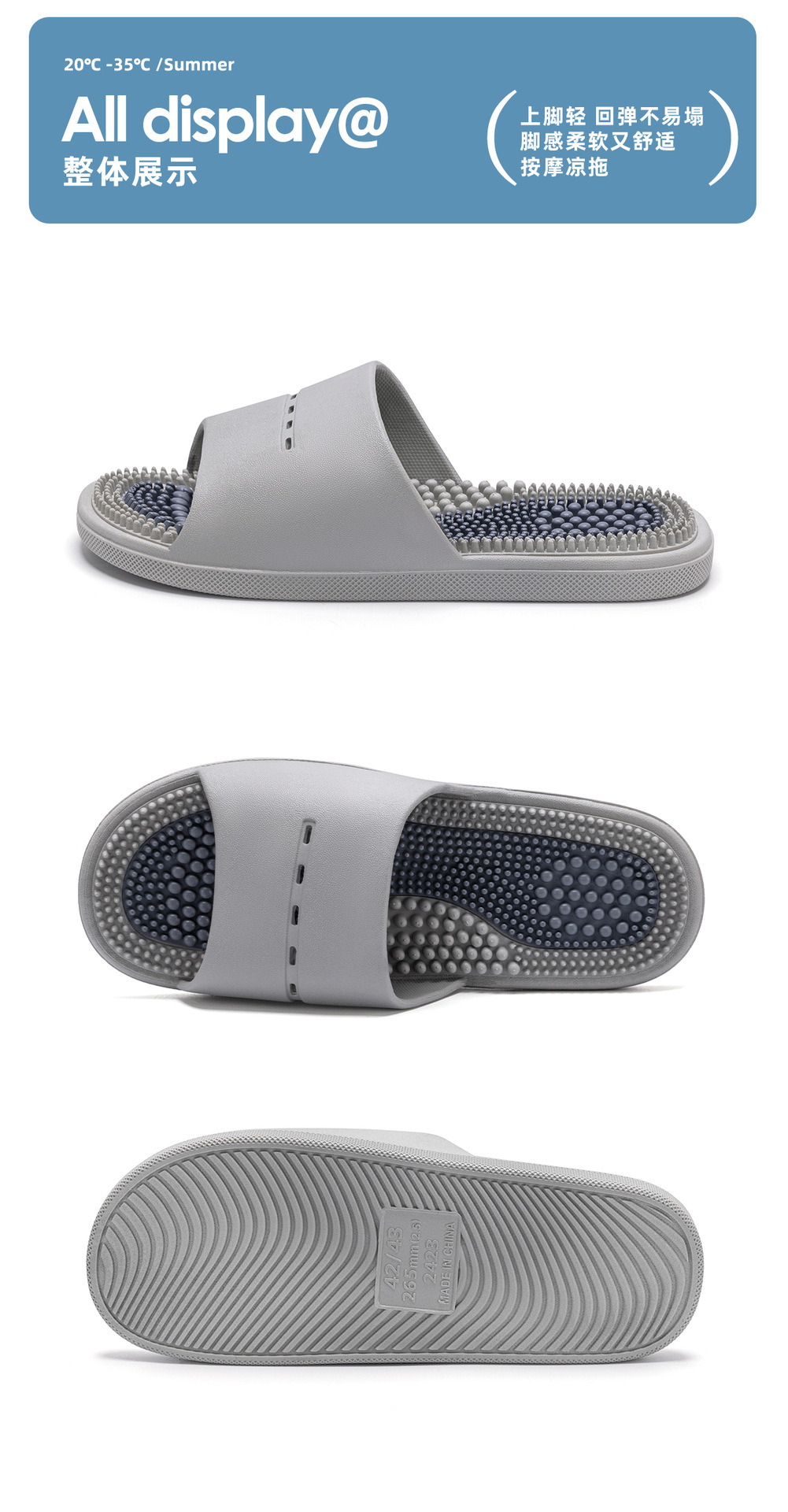 「9.9到手按摩拖鞋」男女室内舒适拖鞋 家居浴室足底穴位透气凉拖鞋四季鞋