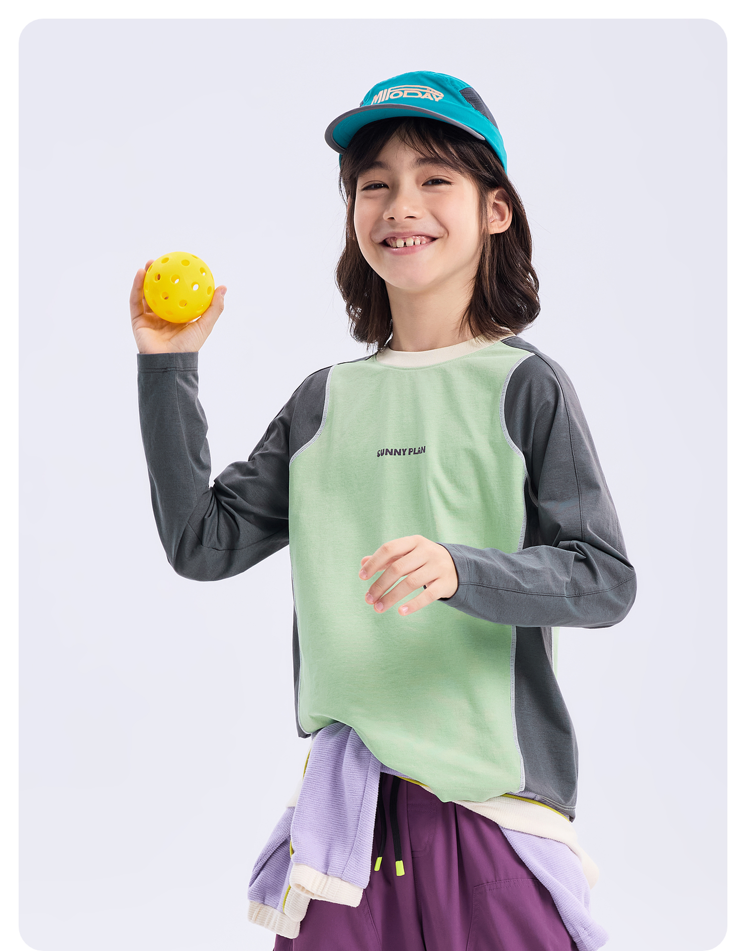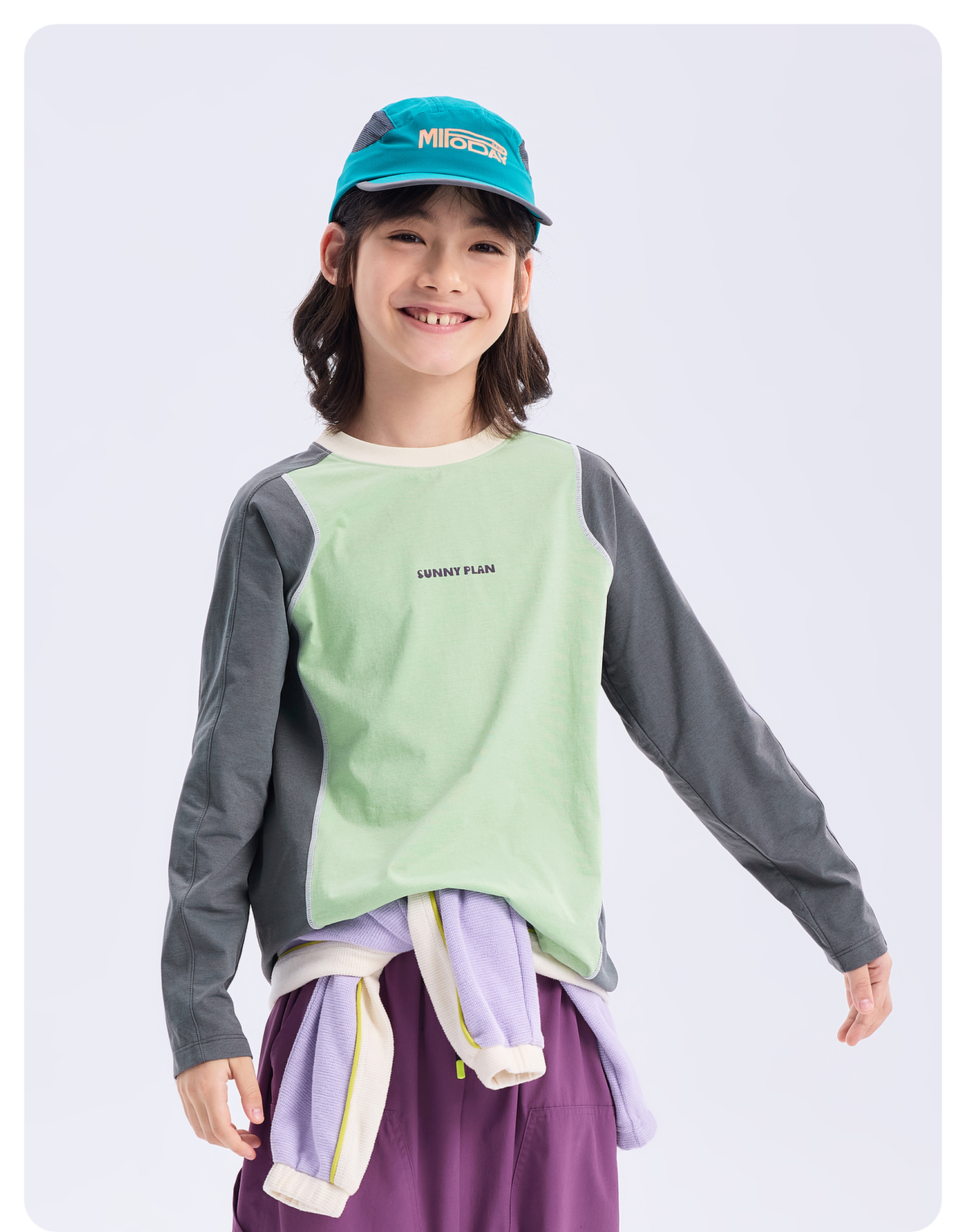 【代发】绿标哇噻T儿童秋季长袖上衣插肩款SUNNYWHITEGreen