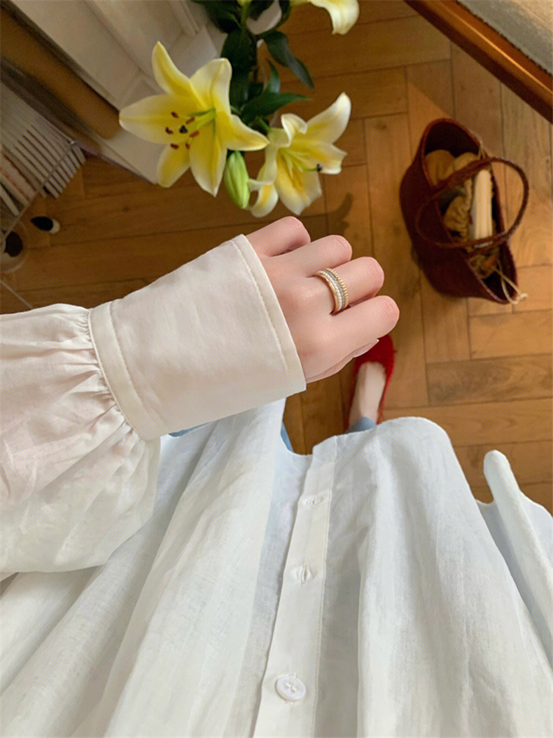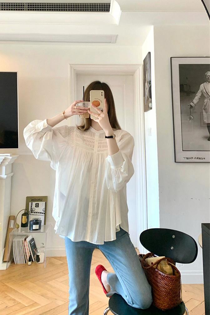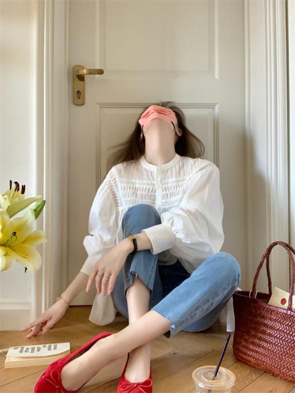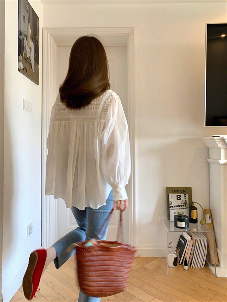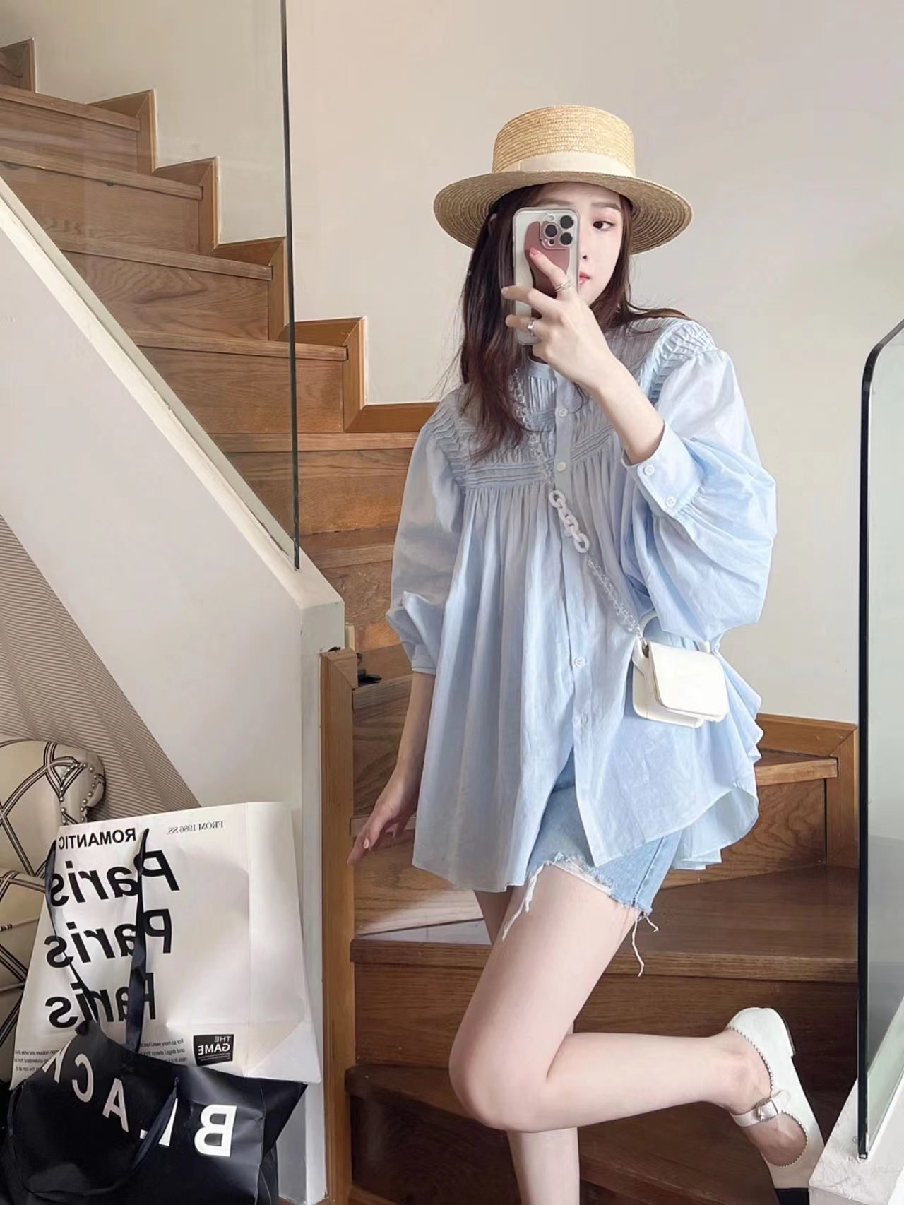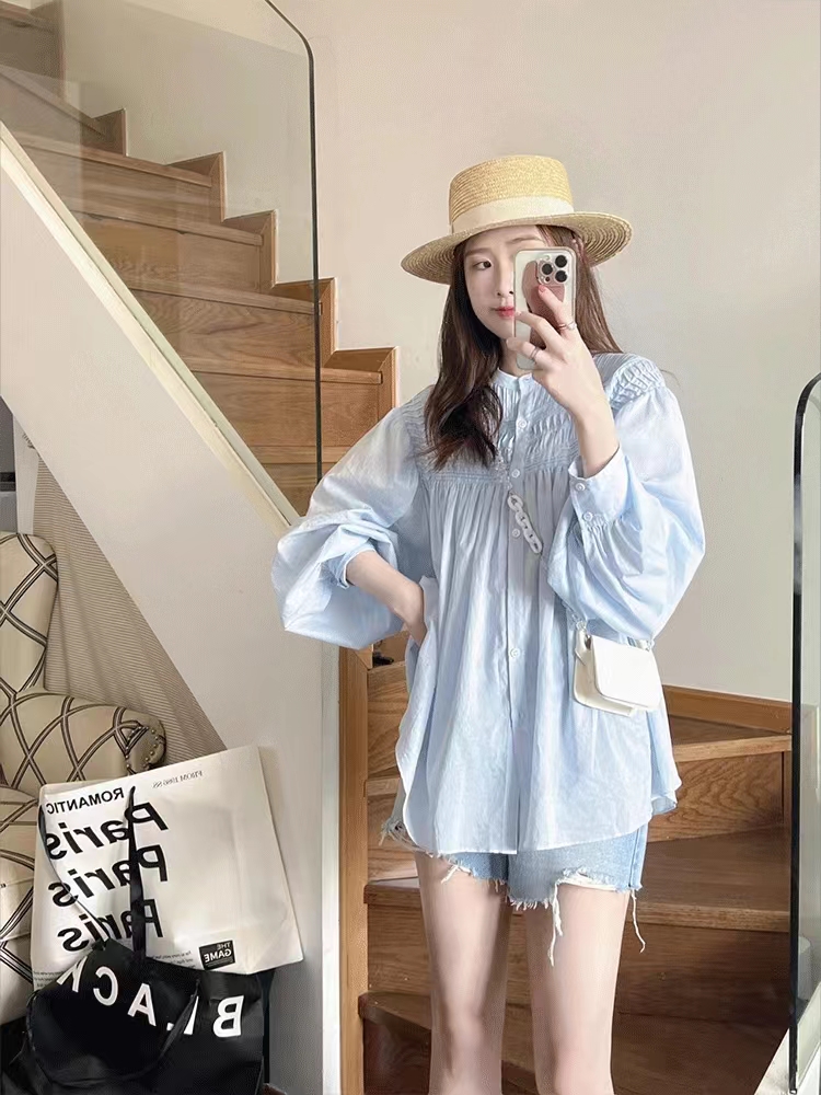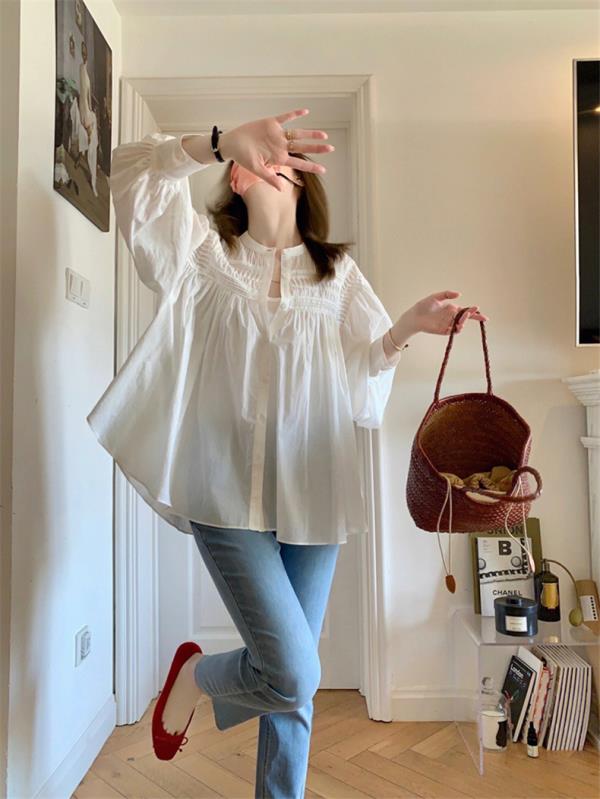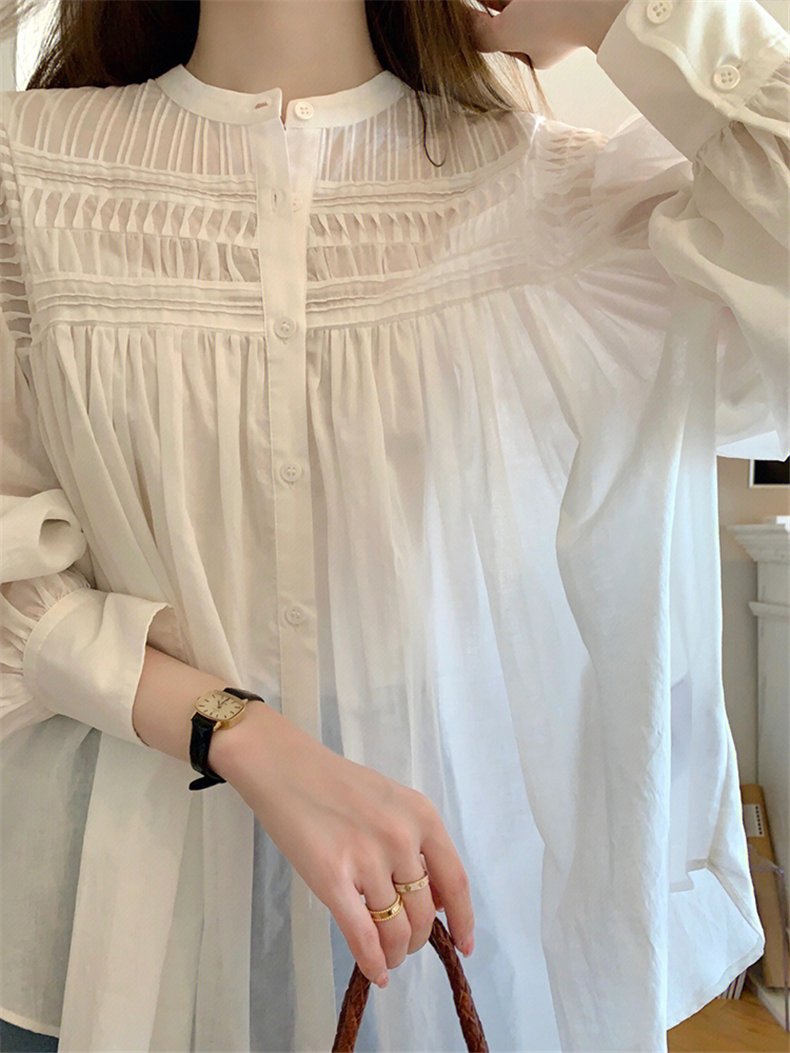 【亮眼小众雪纺衬衫】秋季重工风琴褶皱衬衫 法式娃娃衫设计感小众雪纺衬衫 减龄清新日常通勤皆可搭~