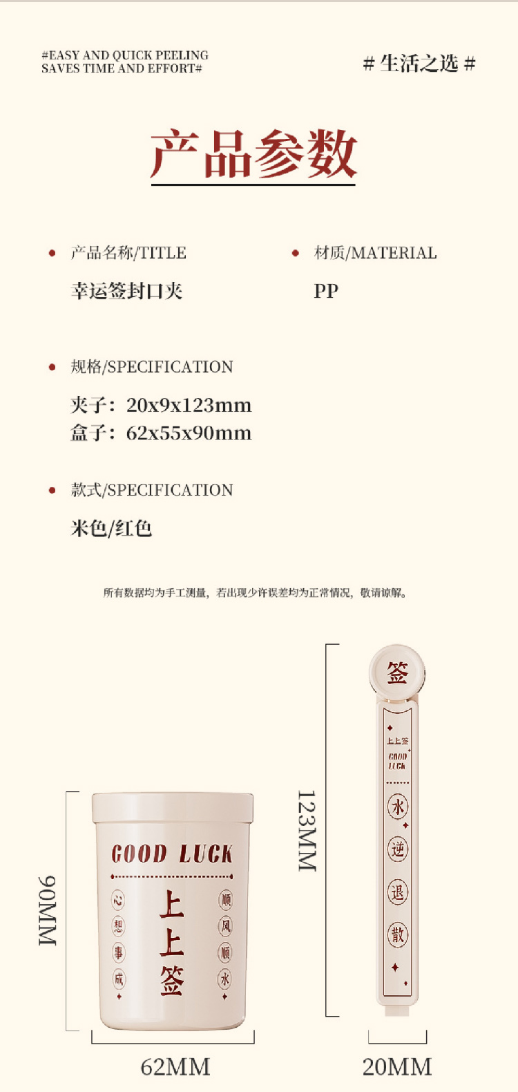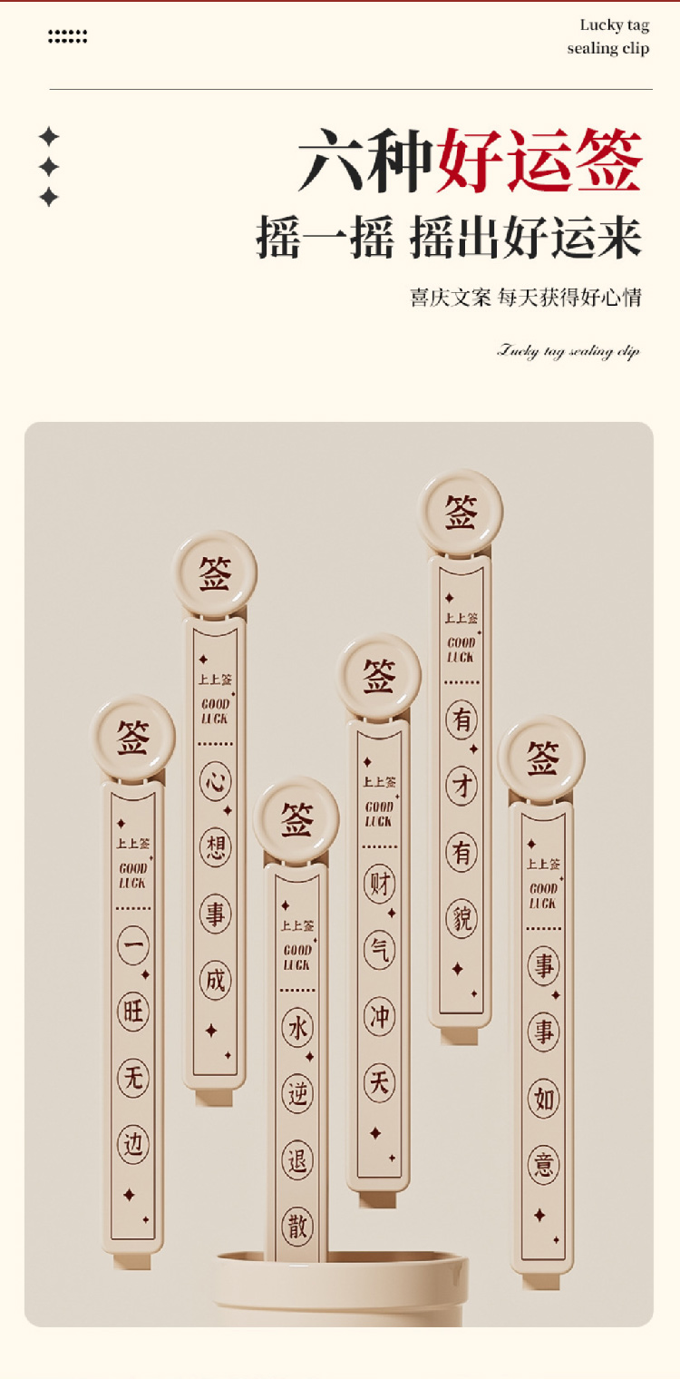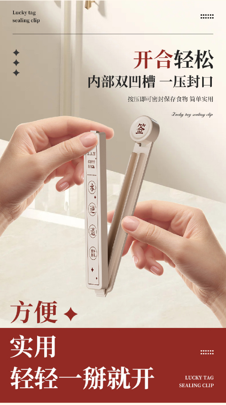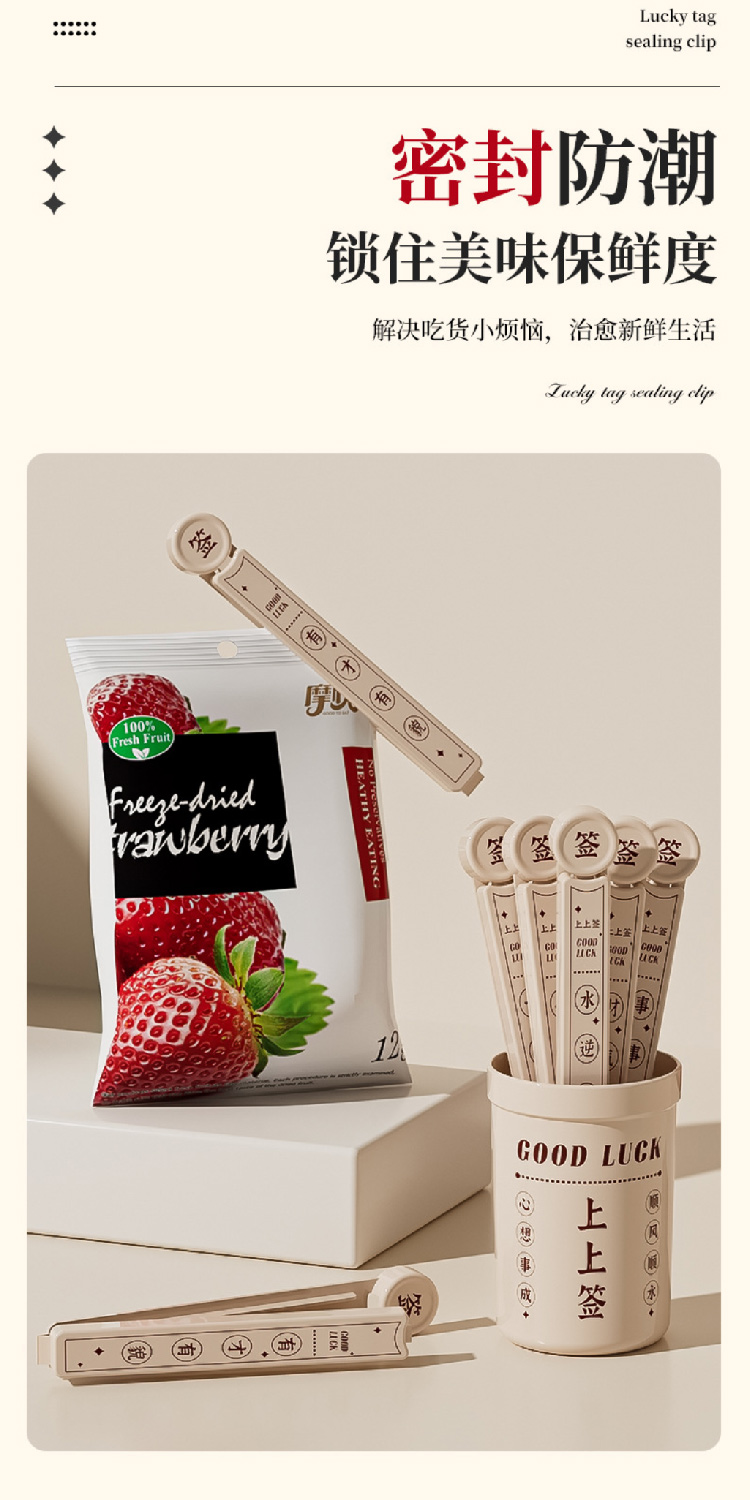 幸运签封口夹厨房零食夹子食品密封夹家用食物保鲜袋茶叶封口防潮