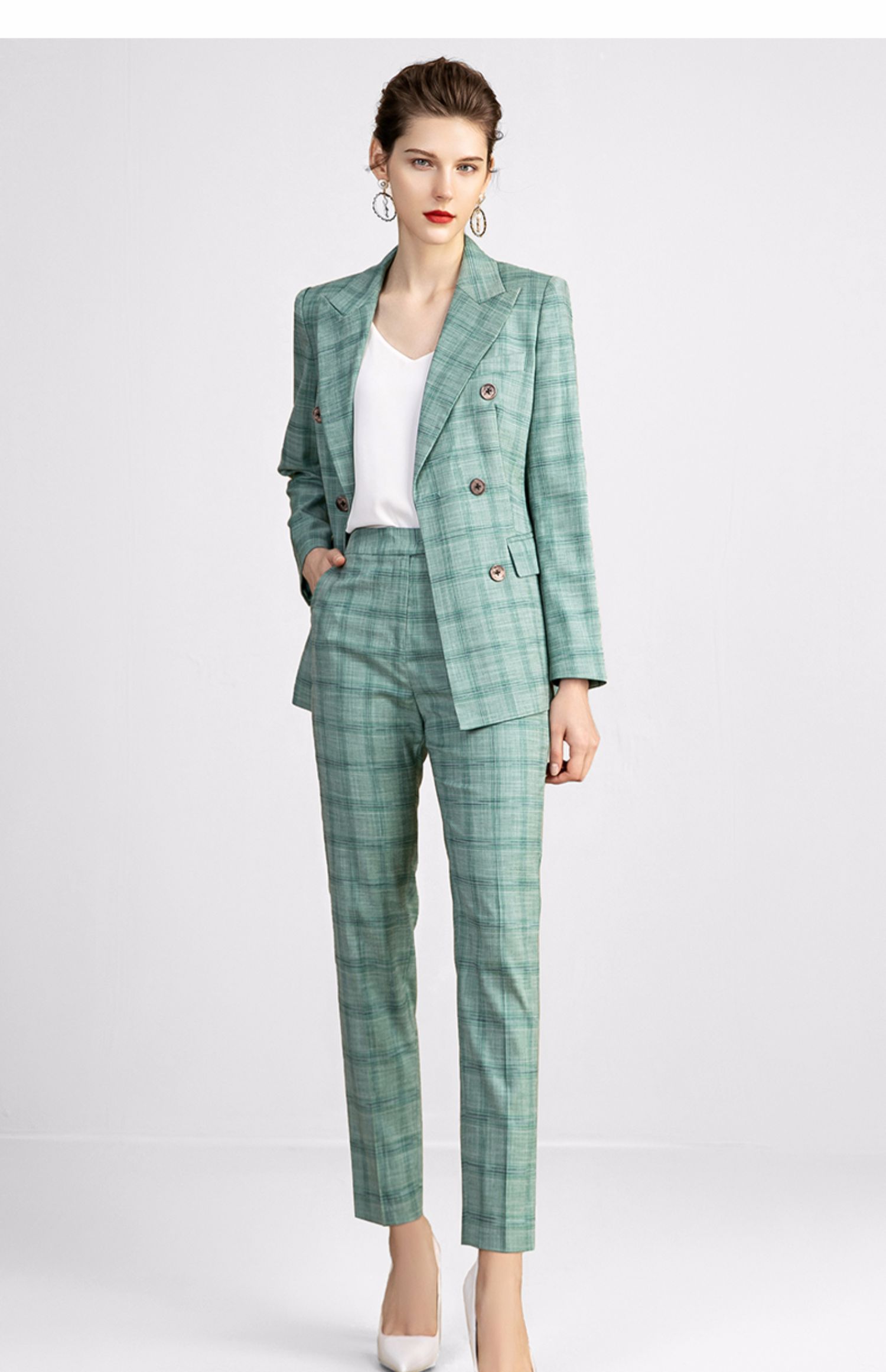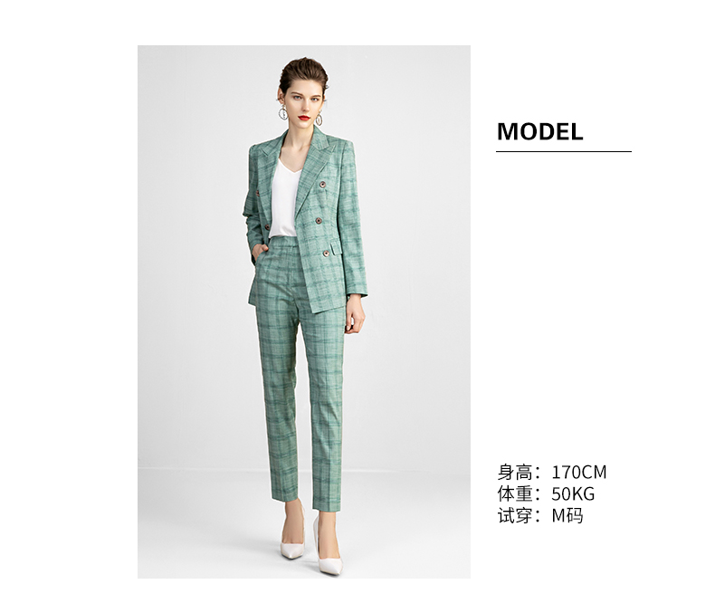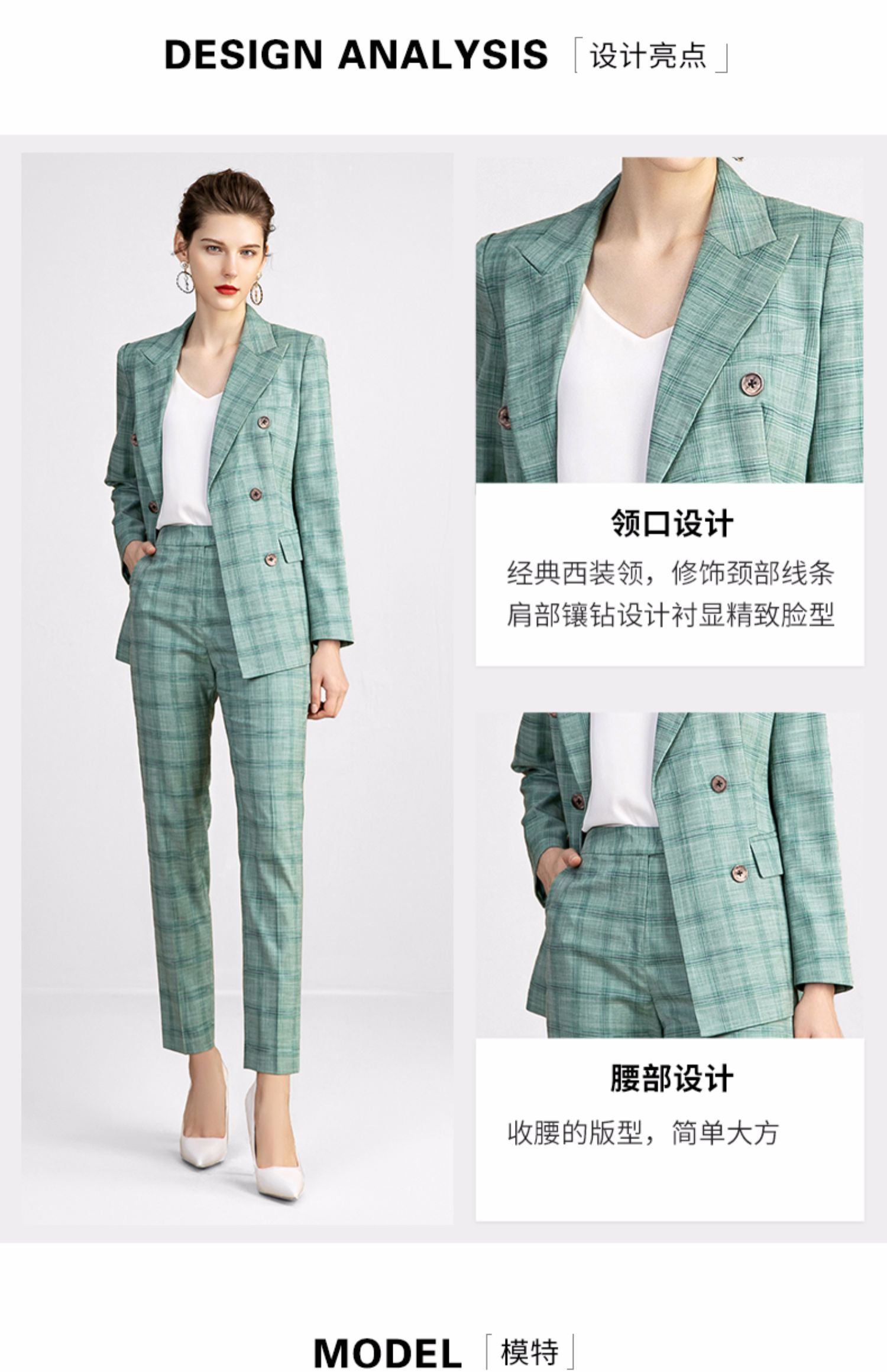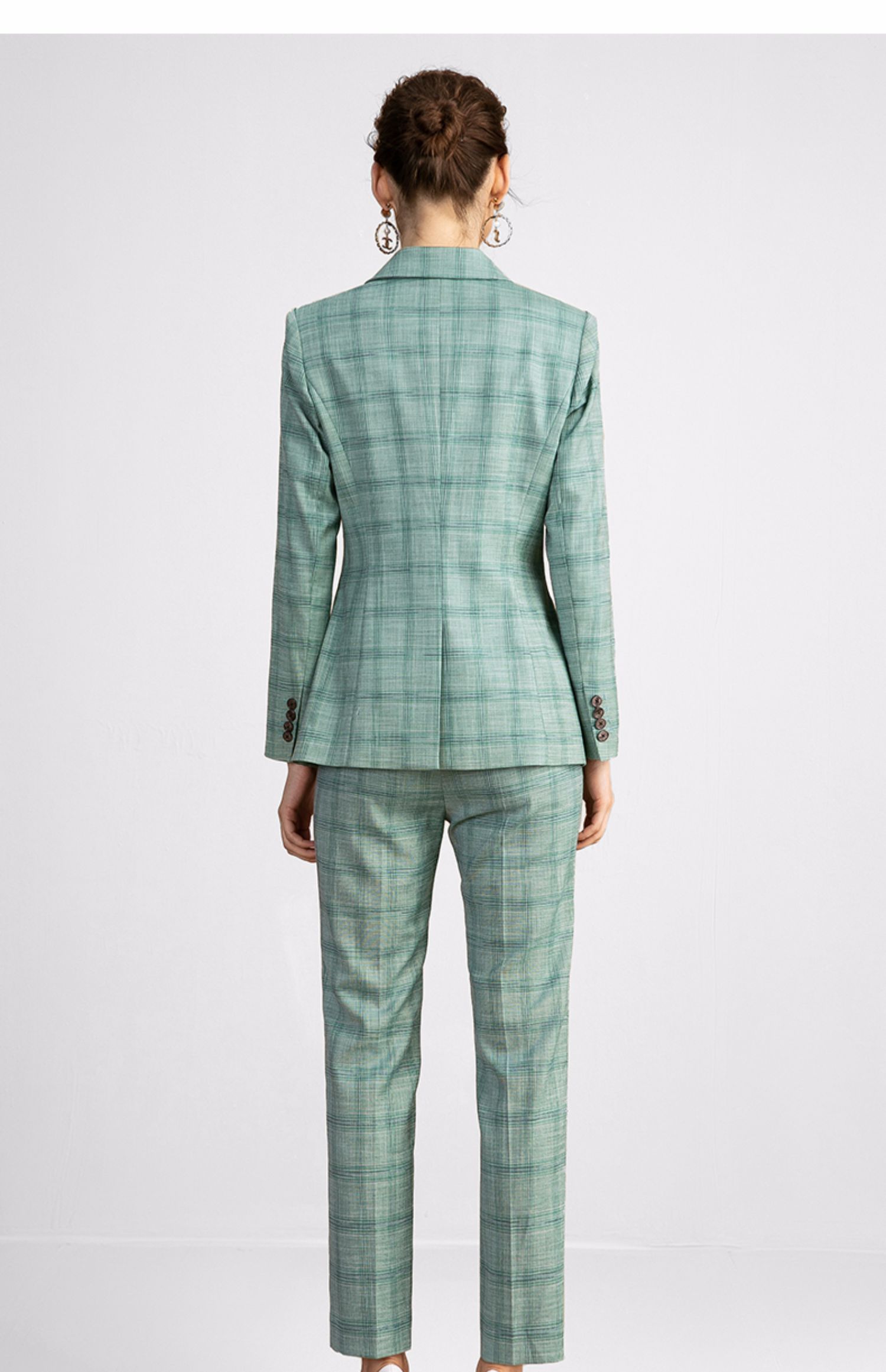 IWY/绿色格纹高端职业西装套装女时尚修身通勤工作服播音主持正装 213122C1+P1
