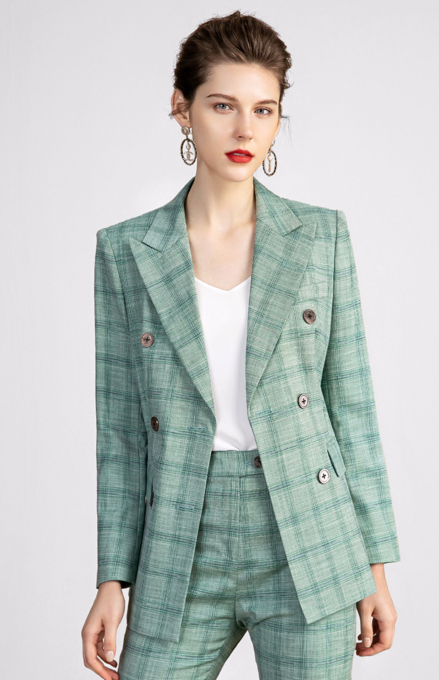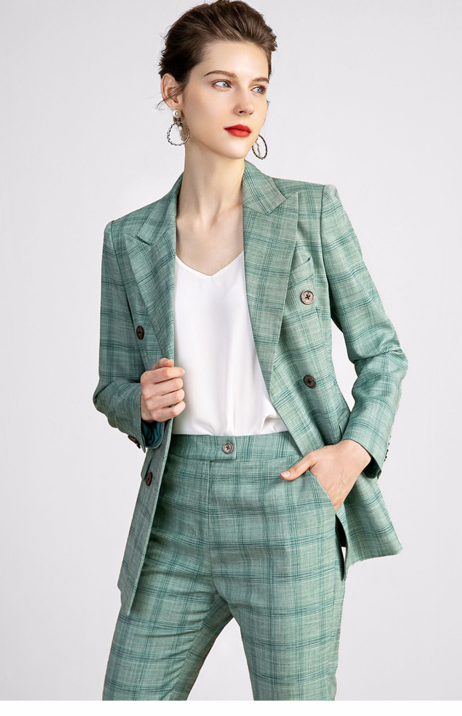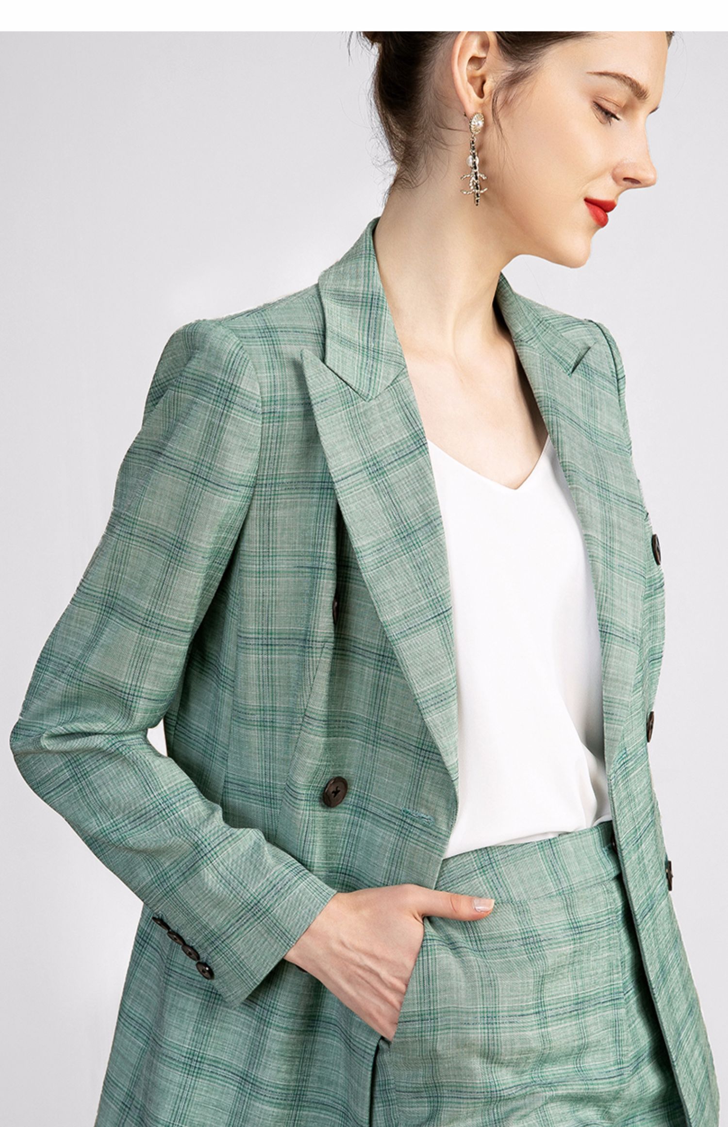 IWY/绿色格纹高端职业西装套装女时尚修身通勤工作服播音主持正装 213122C1+P1