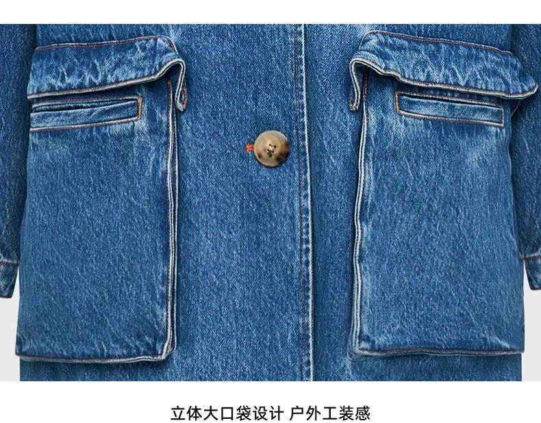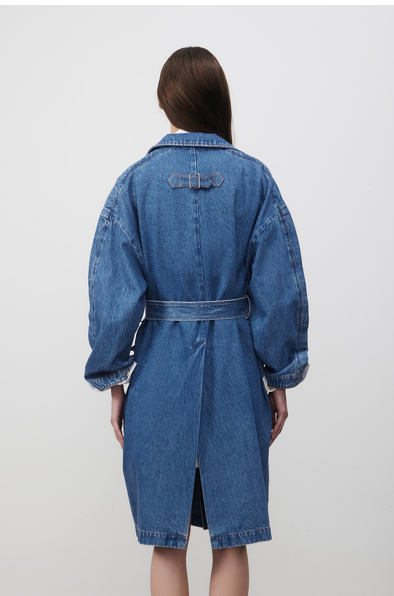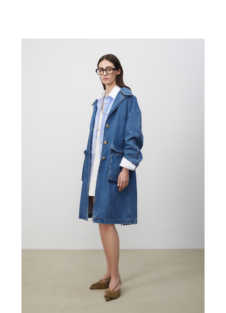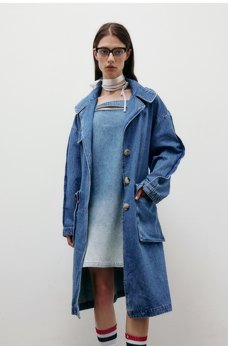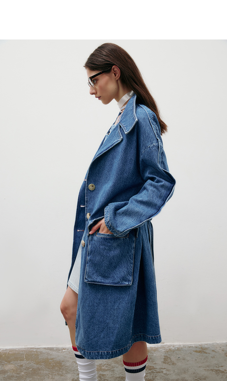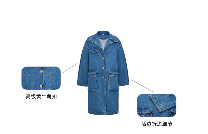lost in echo2025春夏新款高级牛角扣立体大口袋茧型牛仔风衣外套