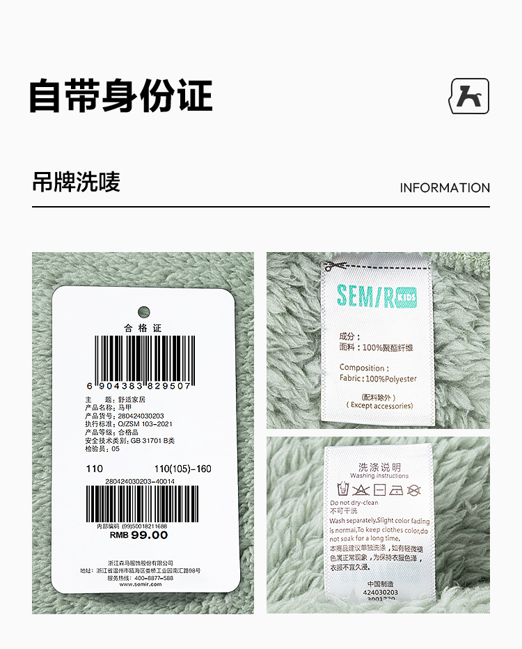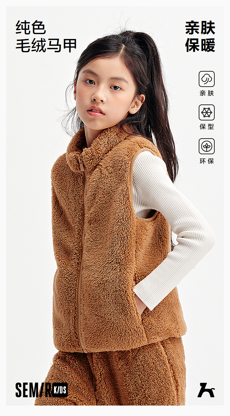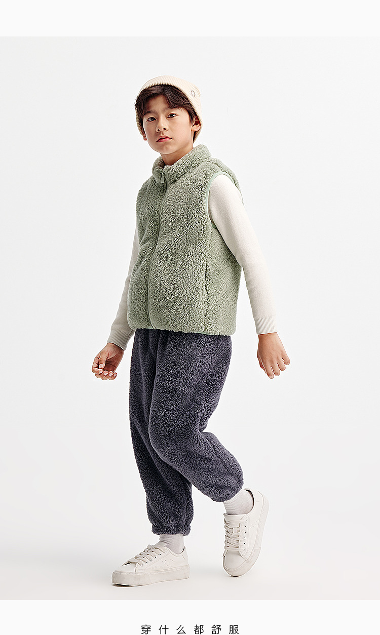 森马儿童马甲2024年新款冬装保暖珊瑚绒家居外套男童女童立领上衣