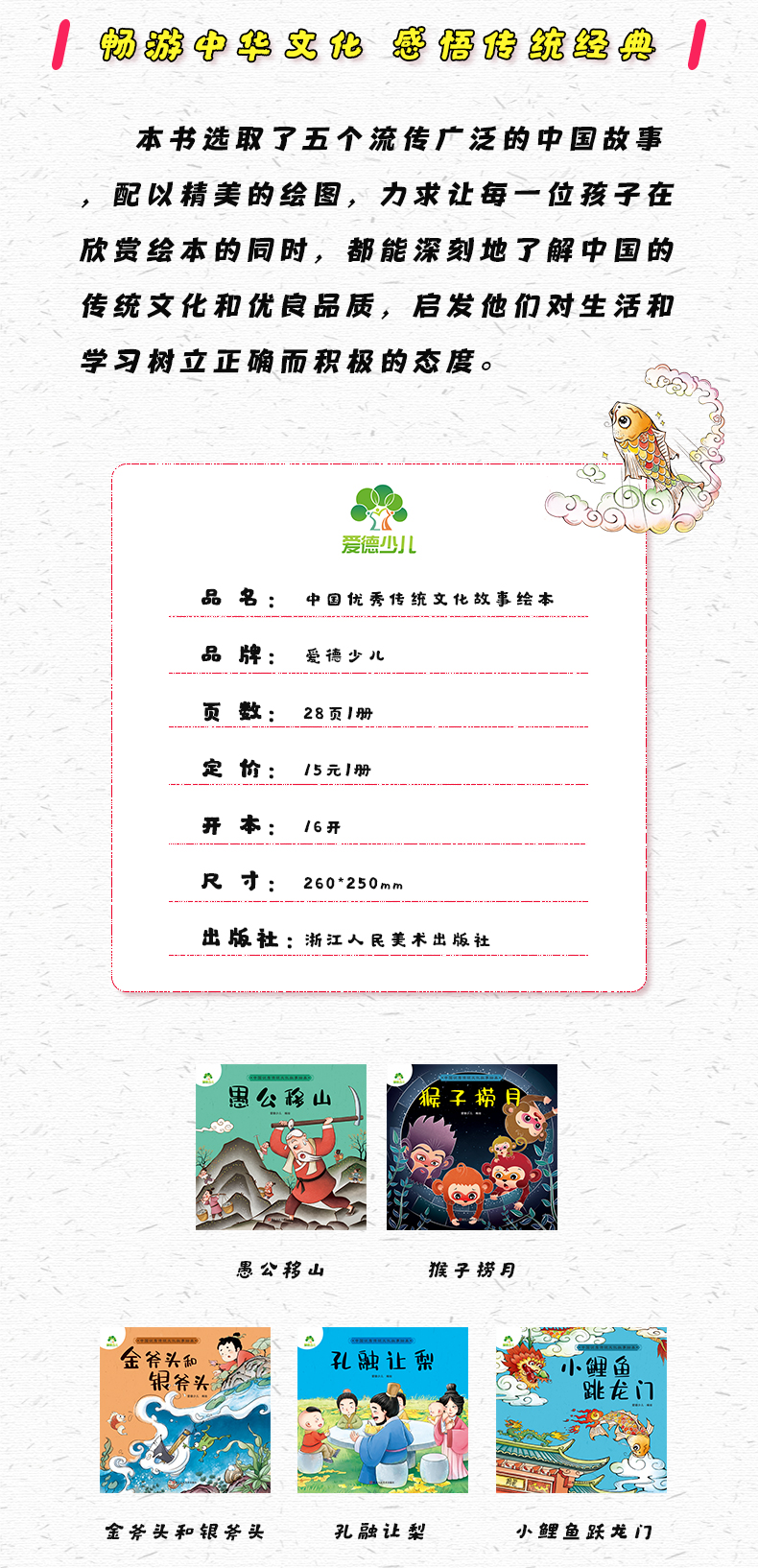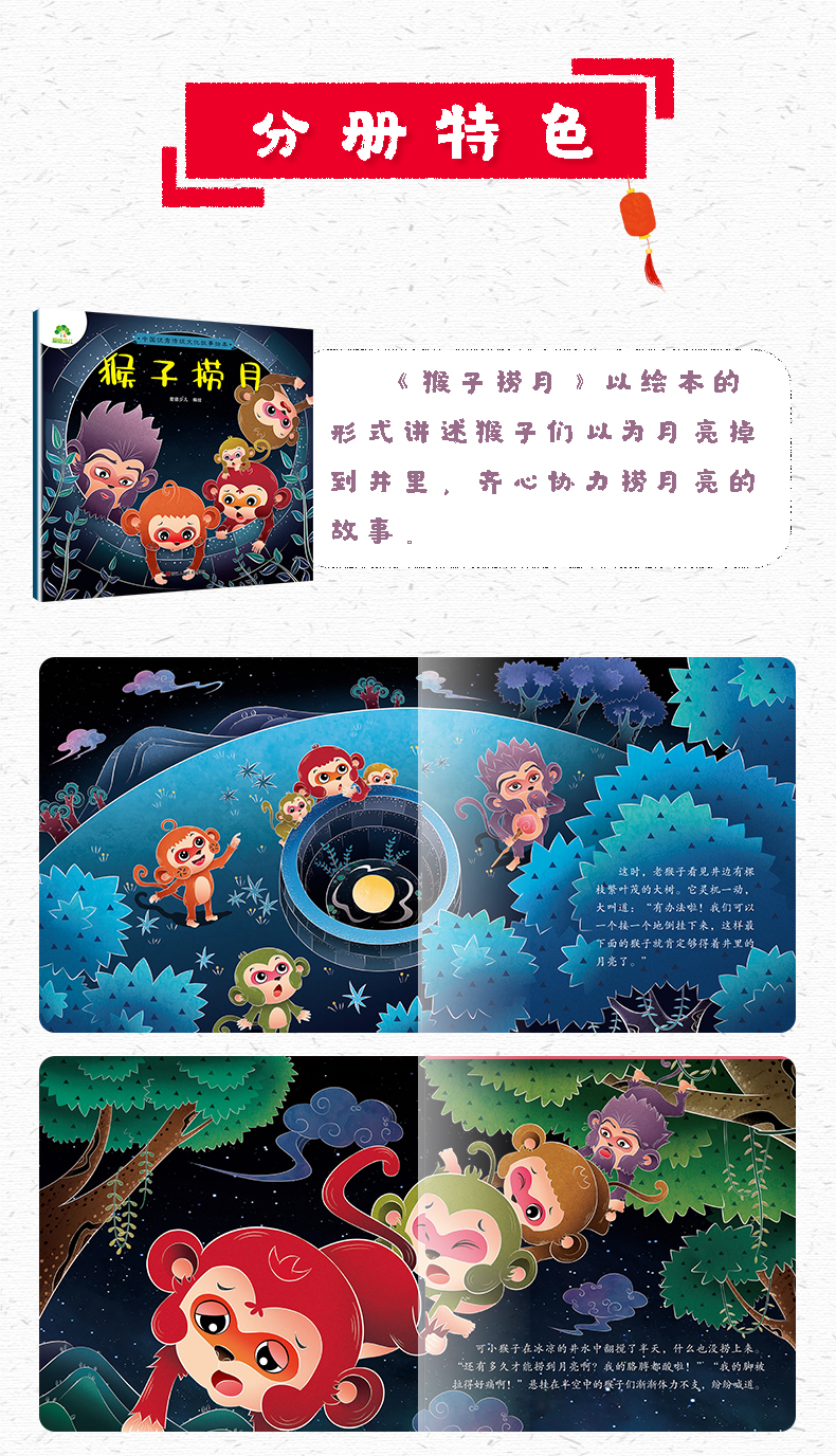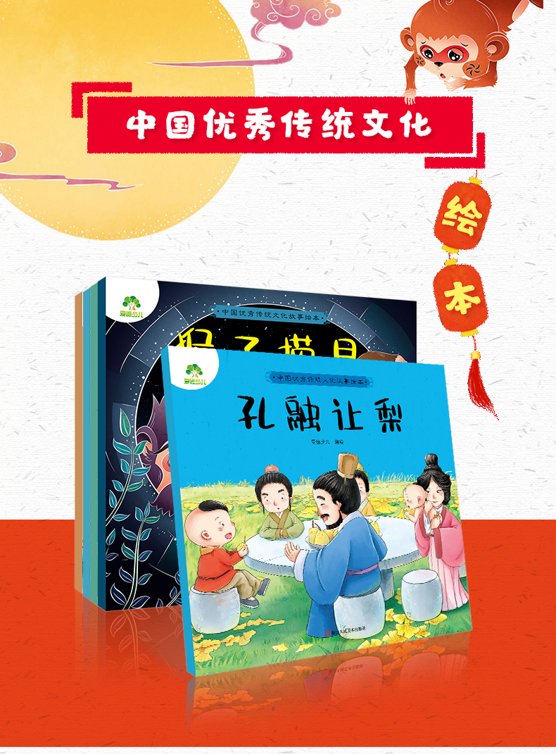 爱德少儿中国优秀传统文化故事绘本猴子捞月故事书一年级小鲤鱼跳龙门愚公移山孔融让梨金斧头和银斧头小学生课外阅读书籍经典童话睡前故事