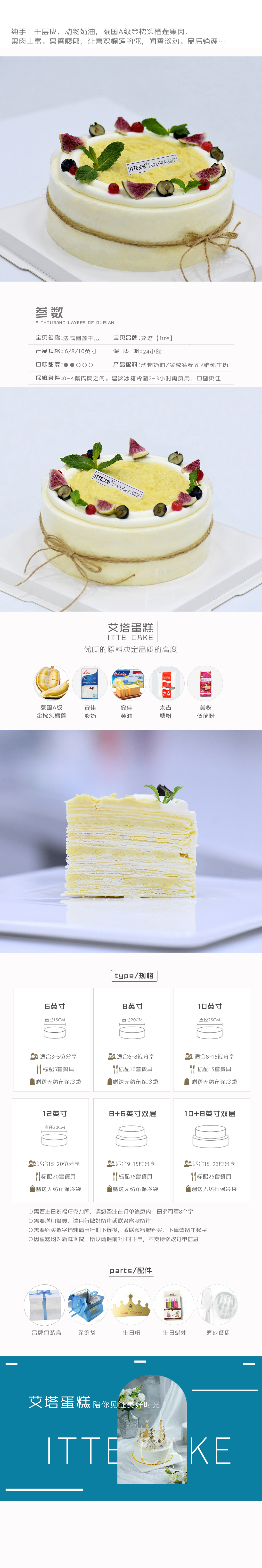【法式榴莲千层】 榴莲   千层蛋糕   网红蛋糕 商品图2