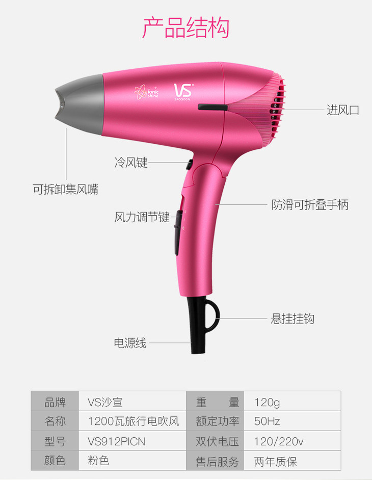 沙宣(VS)电吹风机家用 负离子冷热吹风筒VS912PICN