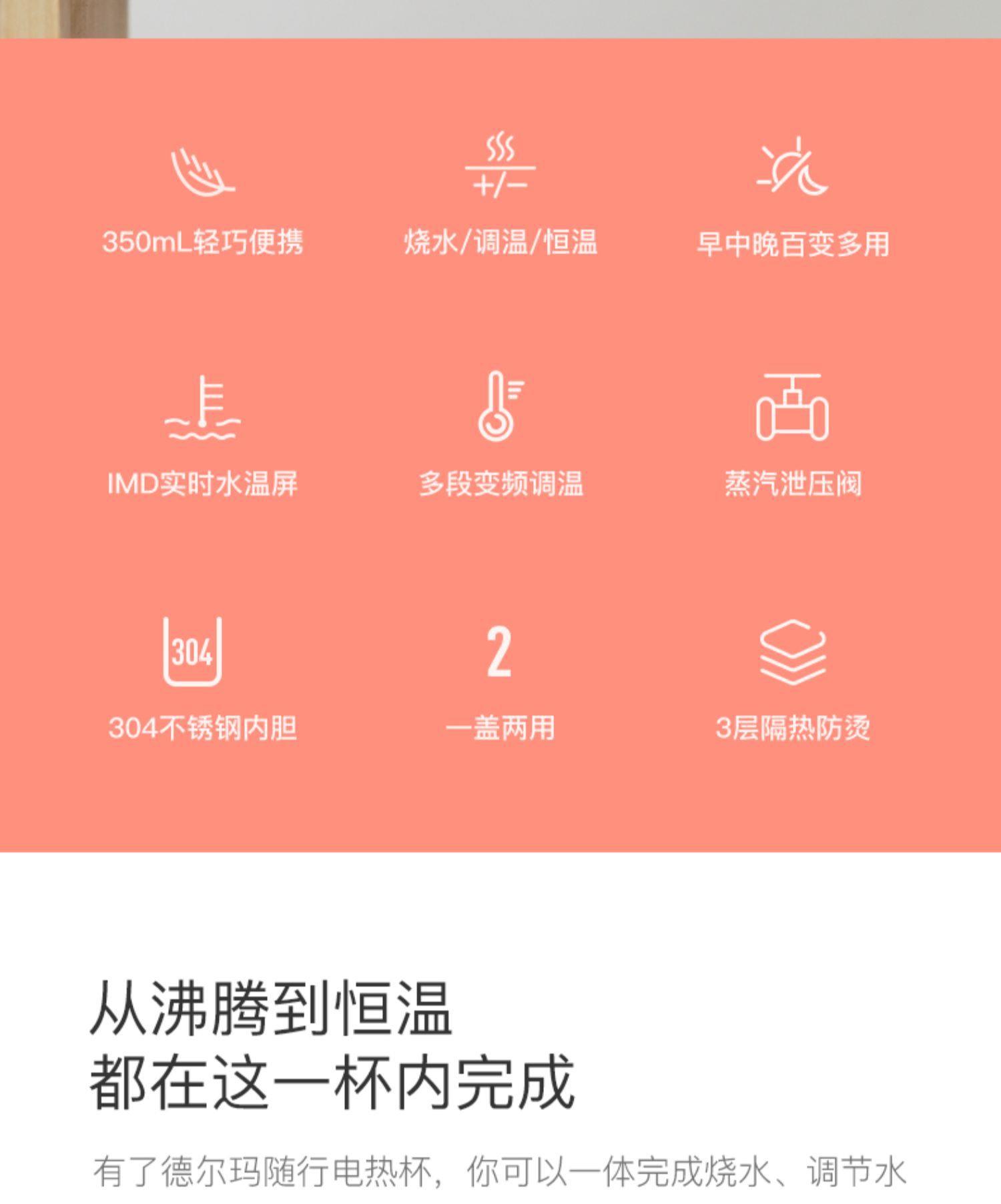 德尔玛电热水杯便携式烧水壶小型旅行家用加热保温烧水杯礼品批发