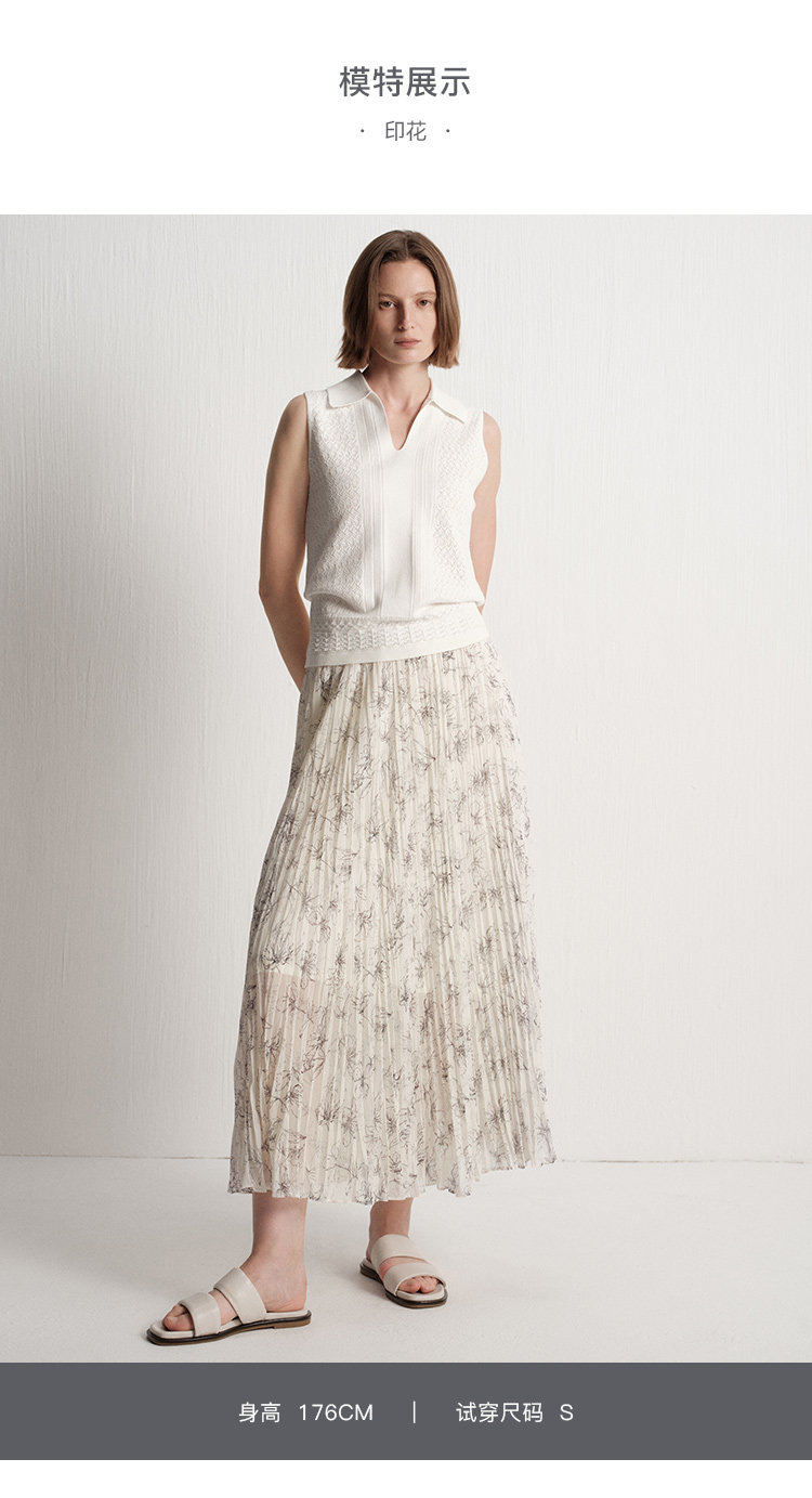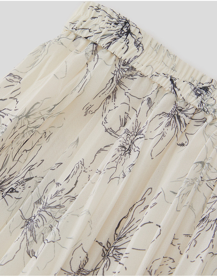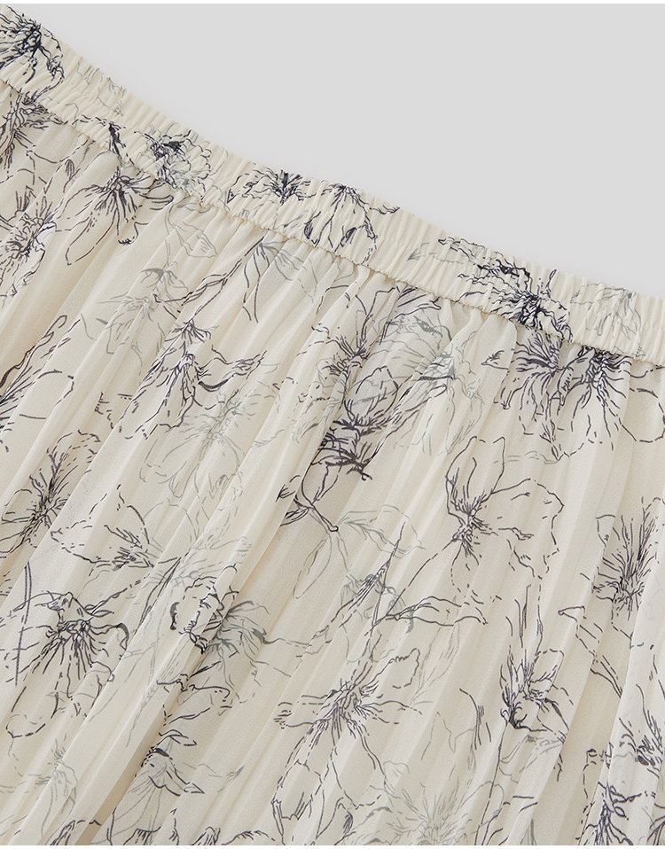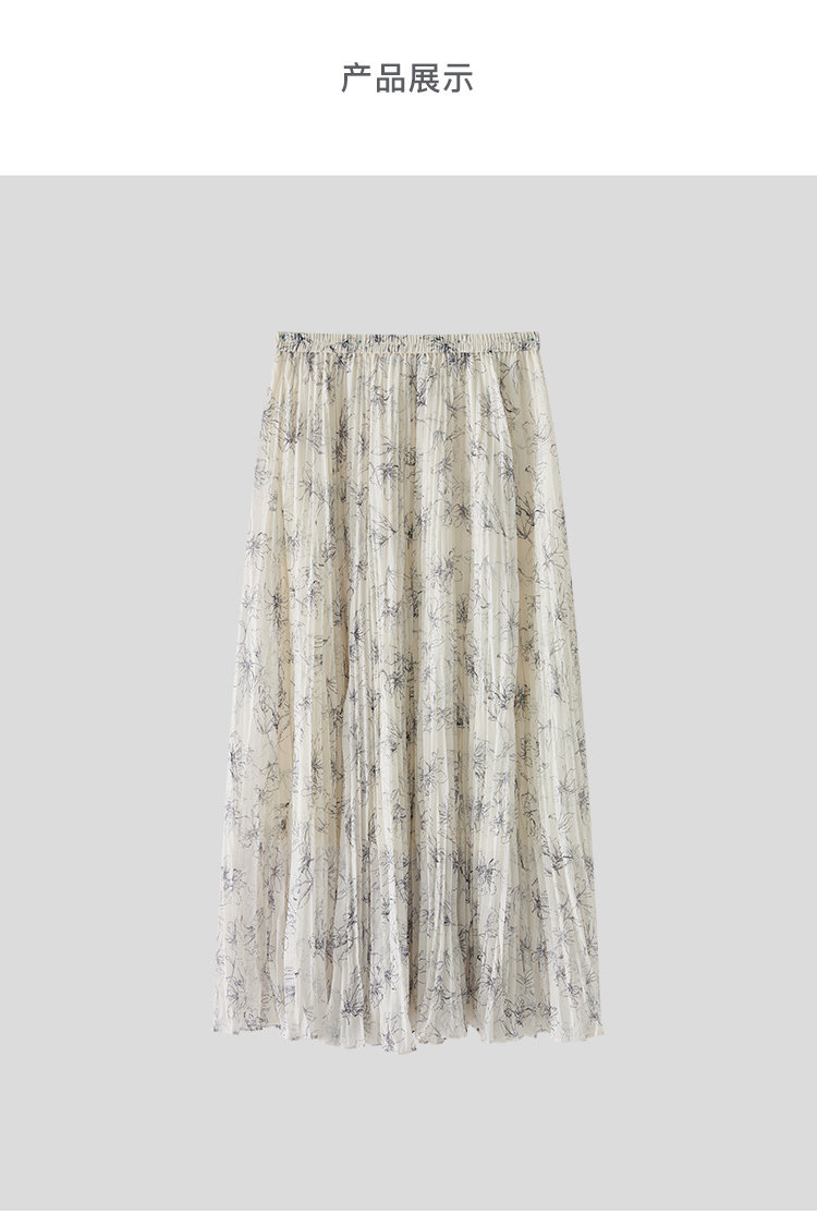 Marc O'Polo/MOP夏季新款好看气质法式压褶印花长款半裙女半身裙