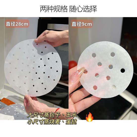 这个尺寸适配各种小型蒸笼、蒸锅 蒸小笼包、烧麦、迷你蛋挞、小汤圆时 严丝合缝,不浪费一丝空间,还能避免食物相互粘连。