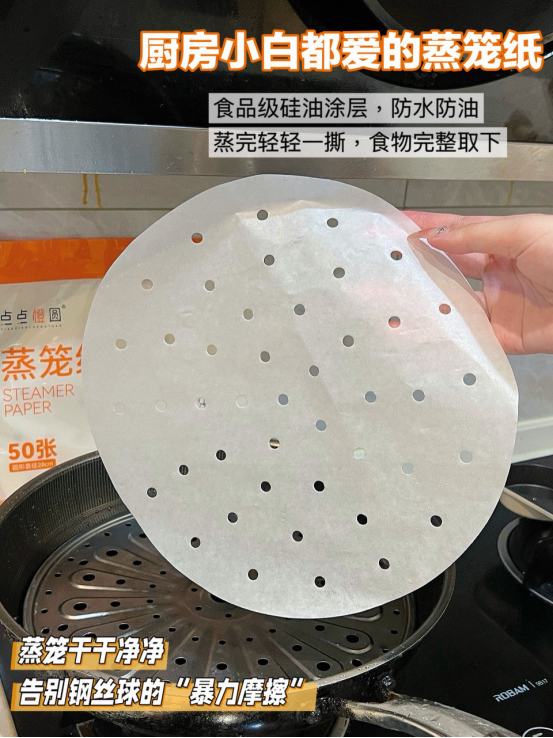 食品级的双面硅油涂层,防水又防油 蒸制时不粘不糊,轻轻一揭,食物轻松脱离 蒸笼毫无残留,免去繁琐的刷洗步骤。
