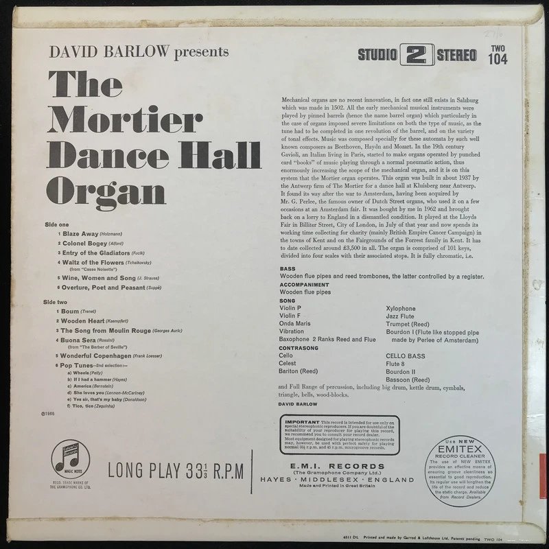 LP黑胶唱片 戴维·巴洛《莫蒂埃舞厅风琴》