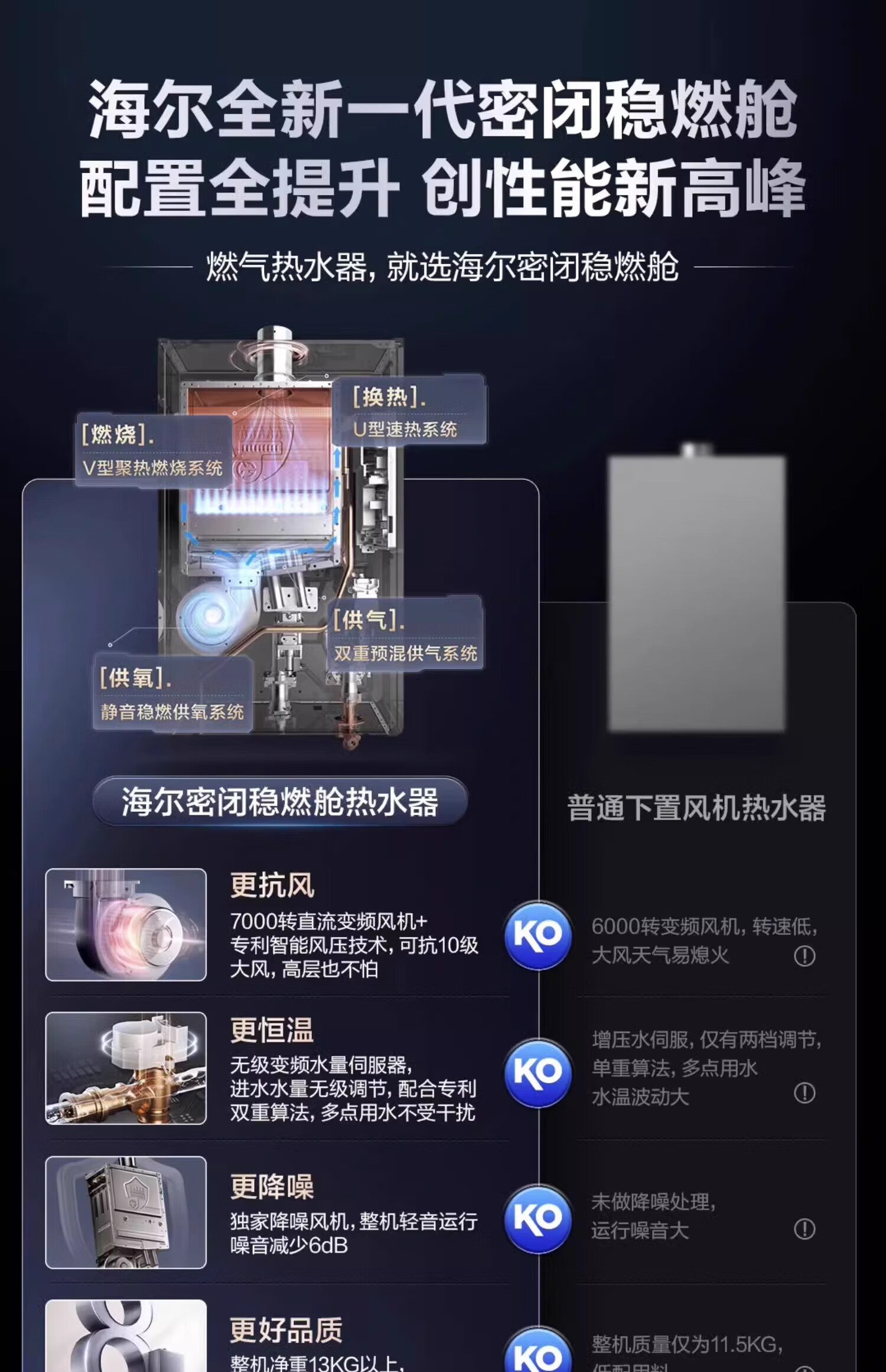 海尔燃气热水器家用水伺服恒温密闭稳燃零冷水16升FPD6 JSQ31-16FPD6FPRGU1