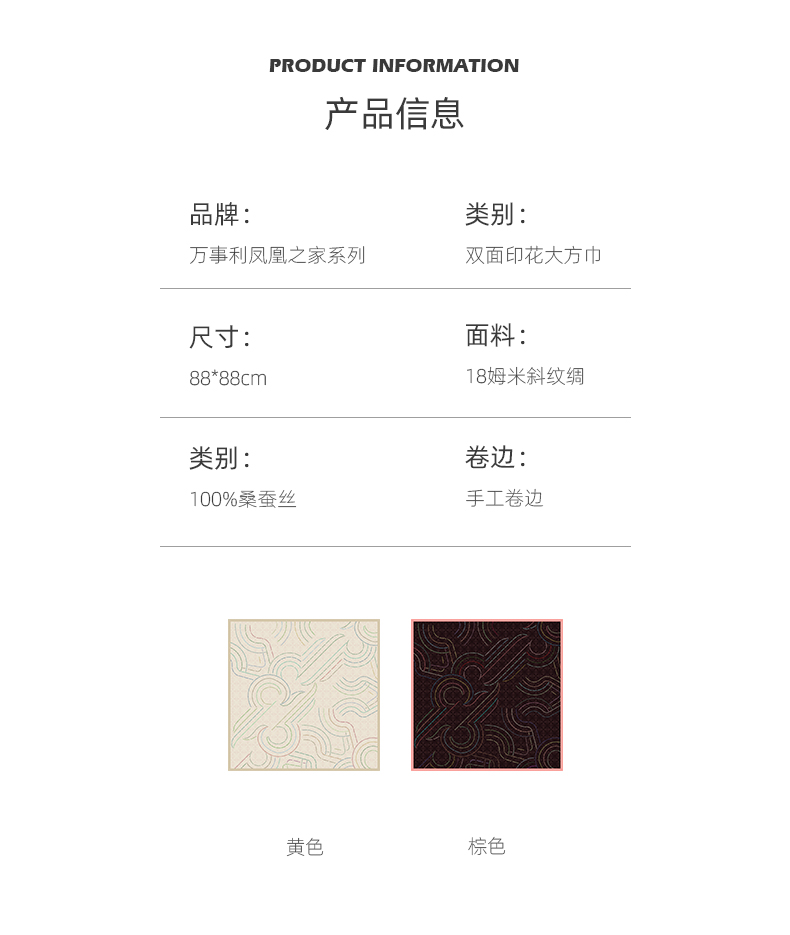 凤凰之家“传奇”88厘米双面印花真丝大方巾
