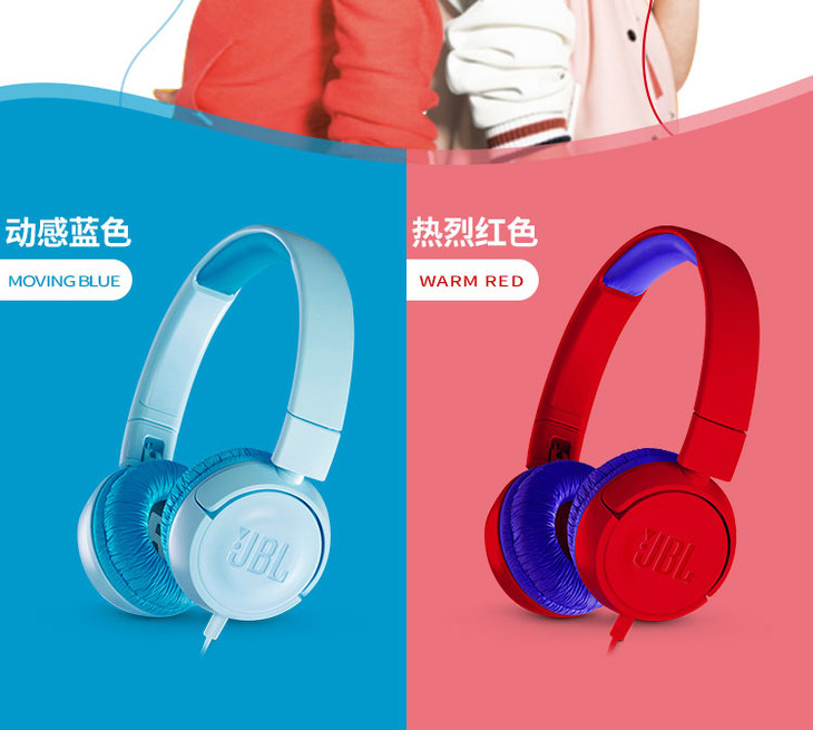 JBL JR300 头戴式学生有线耳机 护耳学习耳机 网课在线教育耳机 低分贝儿童耳机通用苹果小米华为(蓝色/红色)