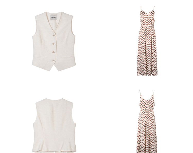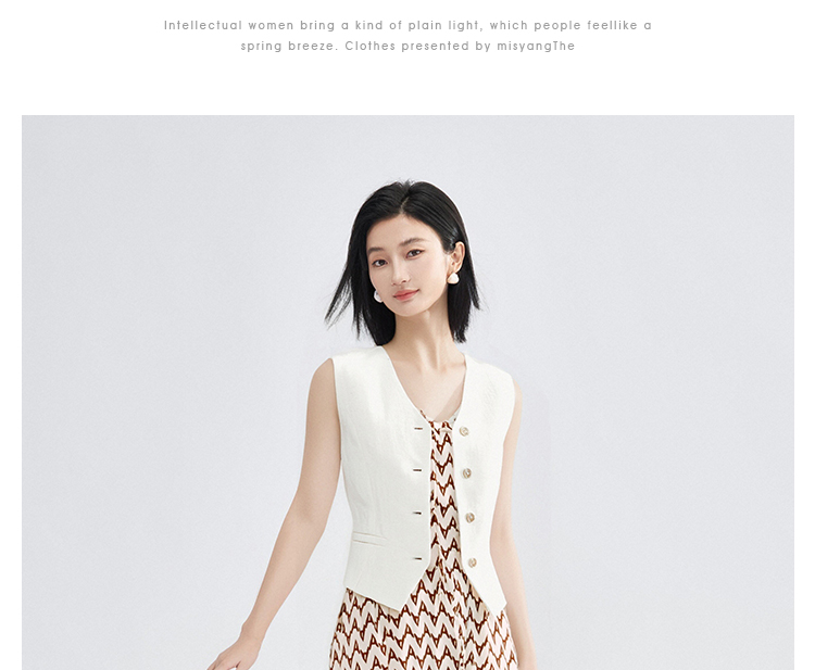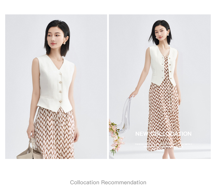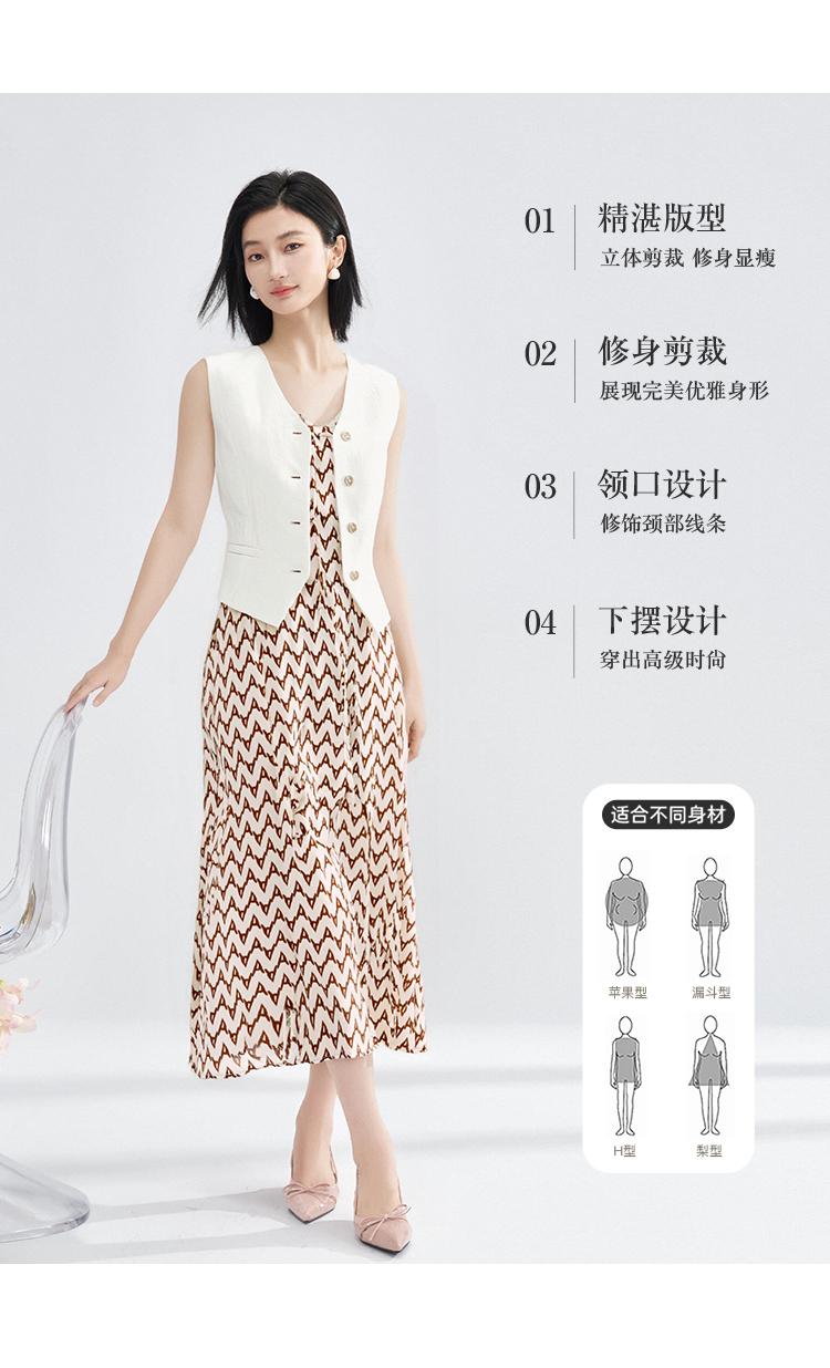 剩M/XL 米思阳2025秋季老钱风休闲感白色修身马甲+印花吊带裙两件套装女4468