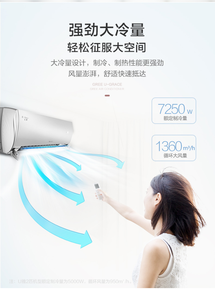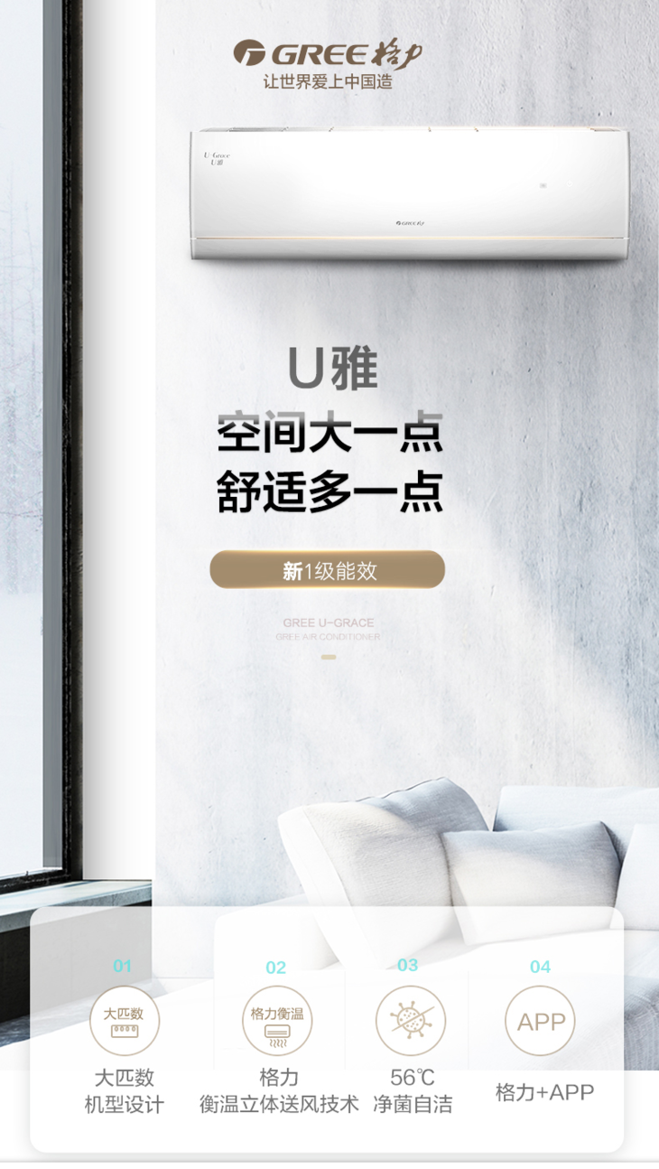 格力·U雅变频冷暖2匹1级能效挂机空调 KFR-50GW/(50521)FNhAb-B1(WIFI)(皓雪白)