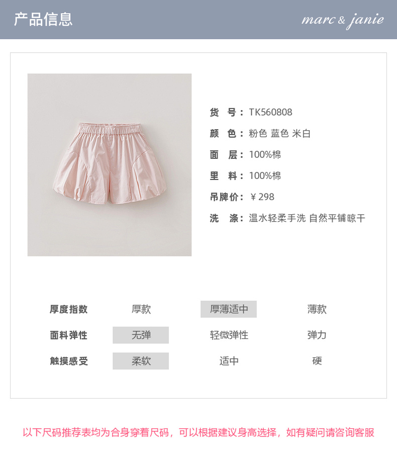 马克珍妮缤纷夏日女童纯棉花苞短裤2026年夏装新款560808