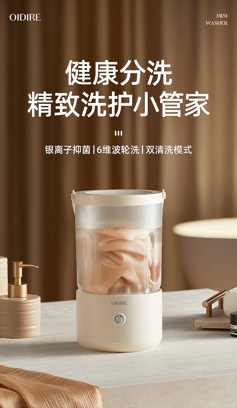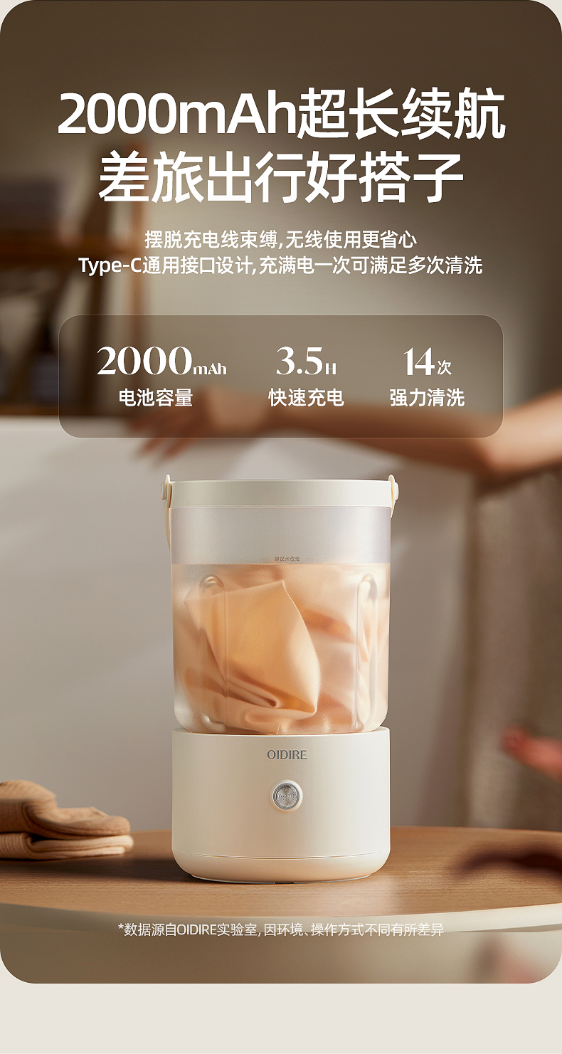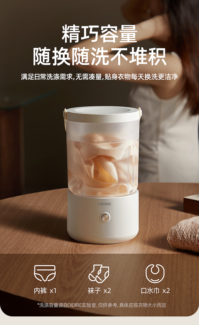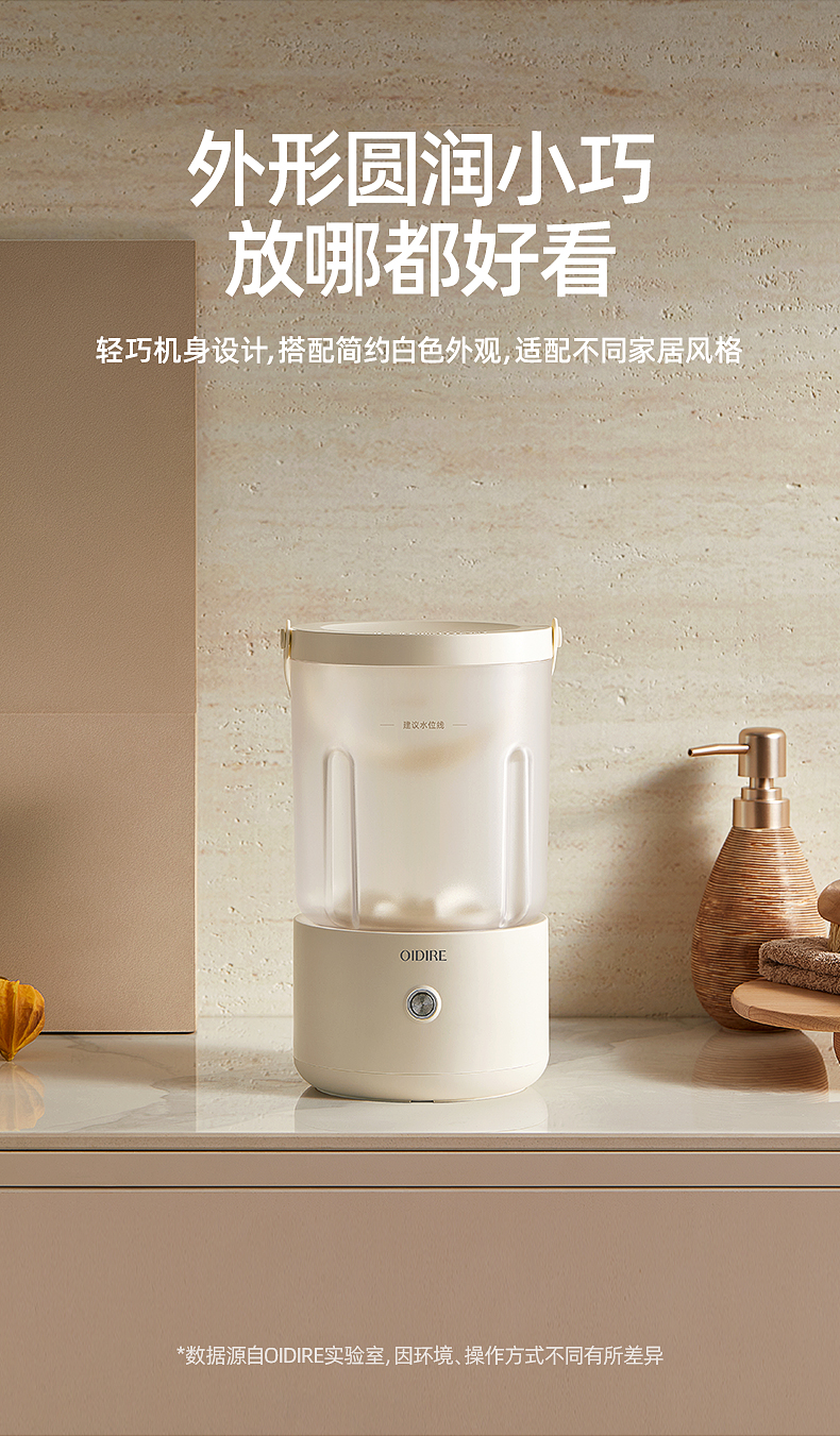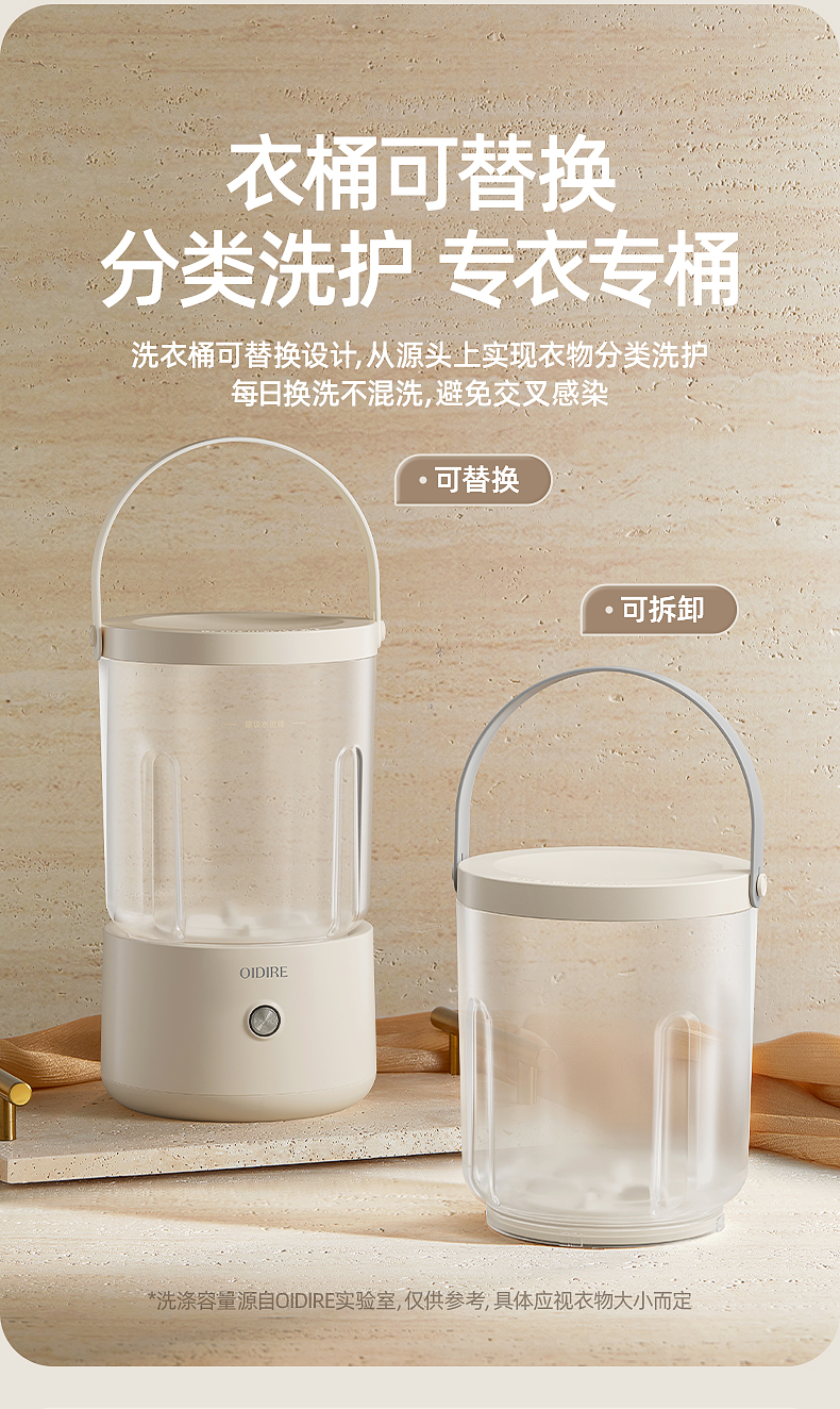 【分类洗护 专衣专桶】oidire奥帝尔 迷你分体洗衣杯 银离子抑菌 仿生6维波轮洗 双清洗模式 有效去污不伤衣 轻音不扰民 快速充电 超长续航 出差/旅行可带(预售双桶款排单发货)