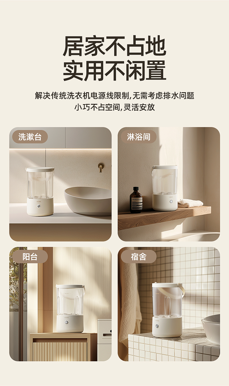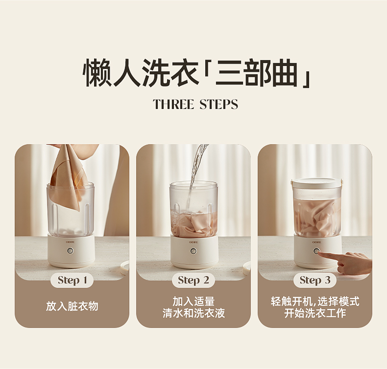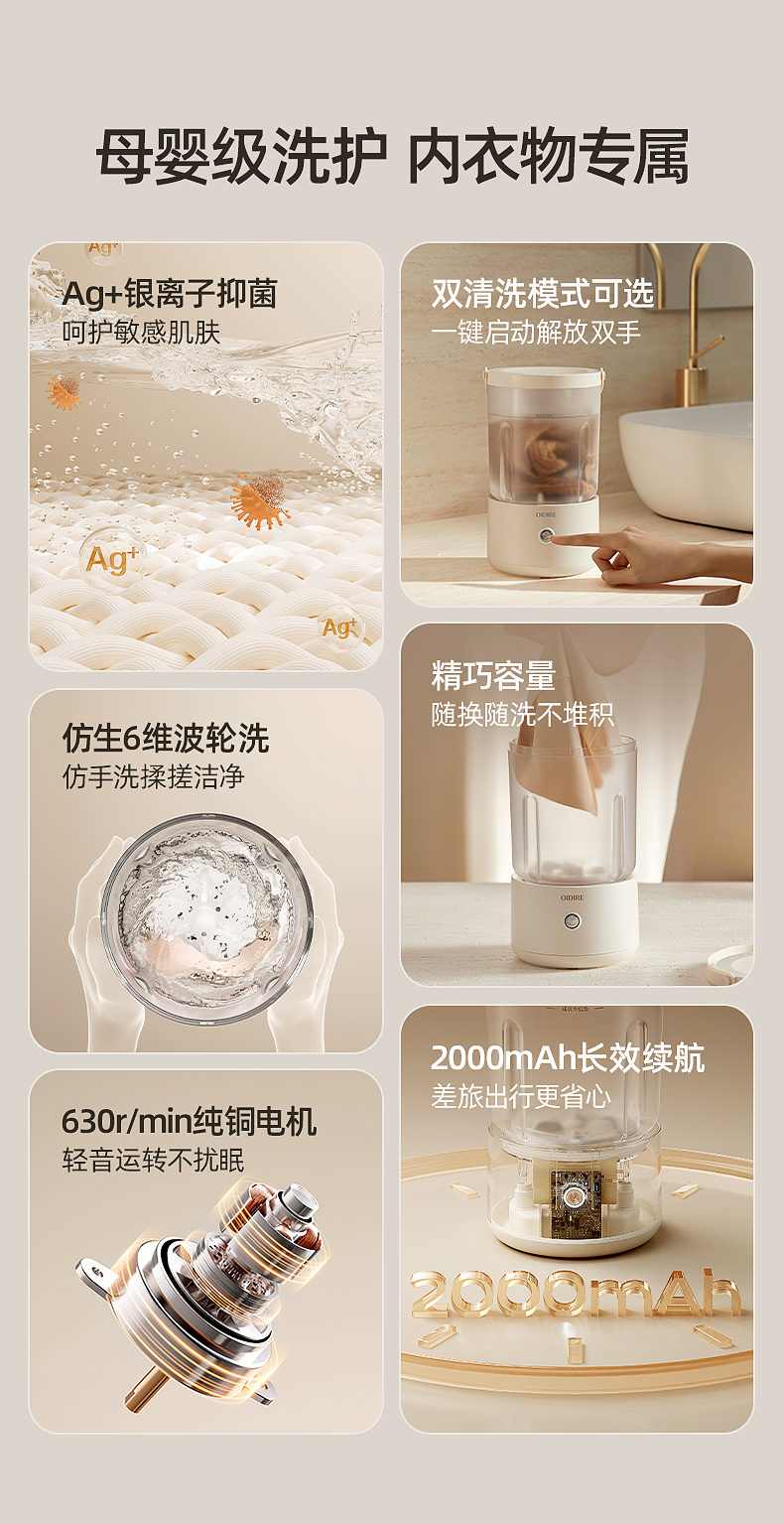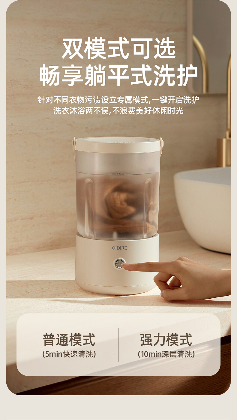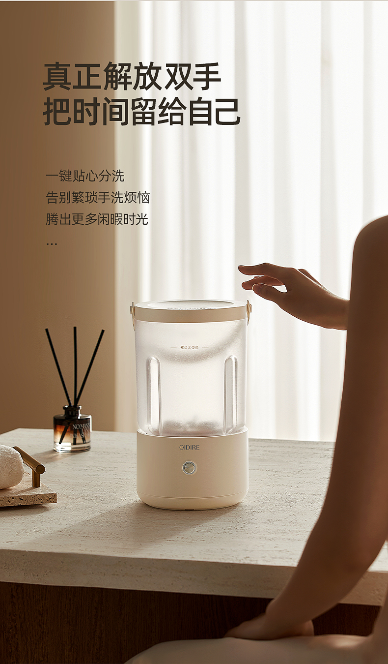 【分类洗护 专衣专桶】oidire奥帝尔 迷你分体洗衣杯 银离子抑菌 仿生6维波轮洗 双清洗模式 有效去污不伤衣 轻音不扰民 快速充电 超长续航 出差/旅行可带(预售双桶款排单发货)