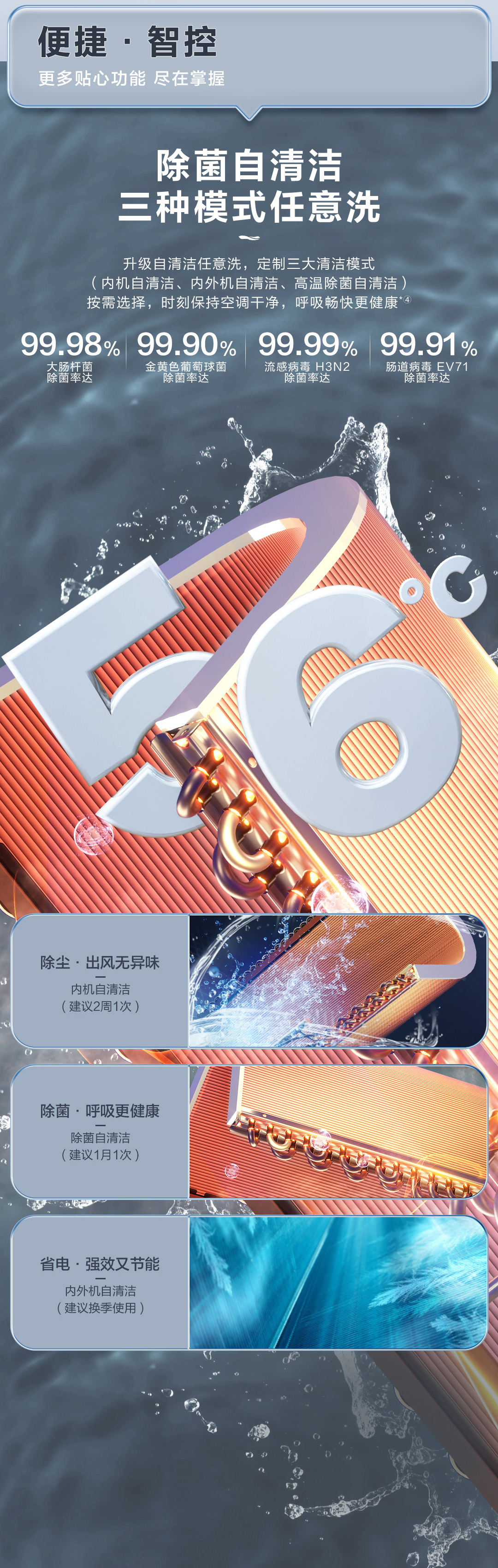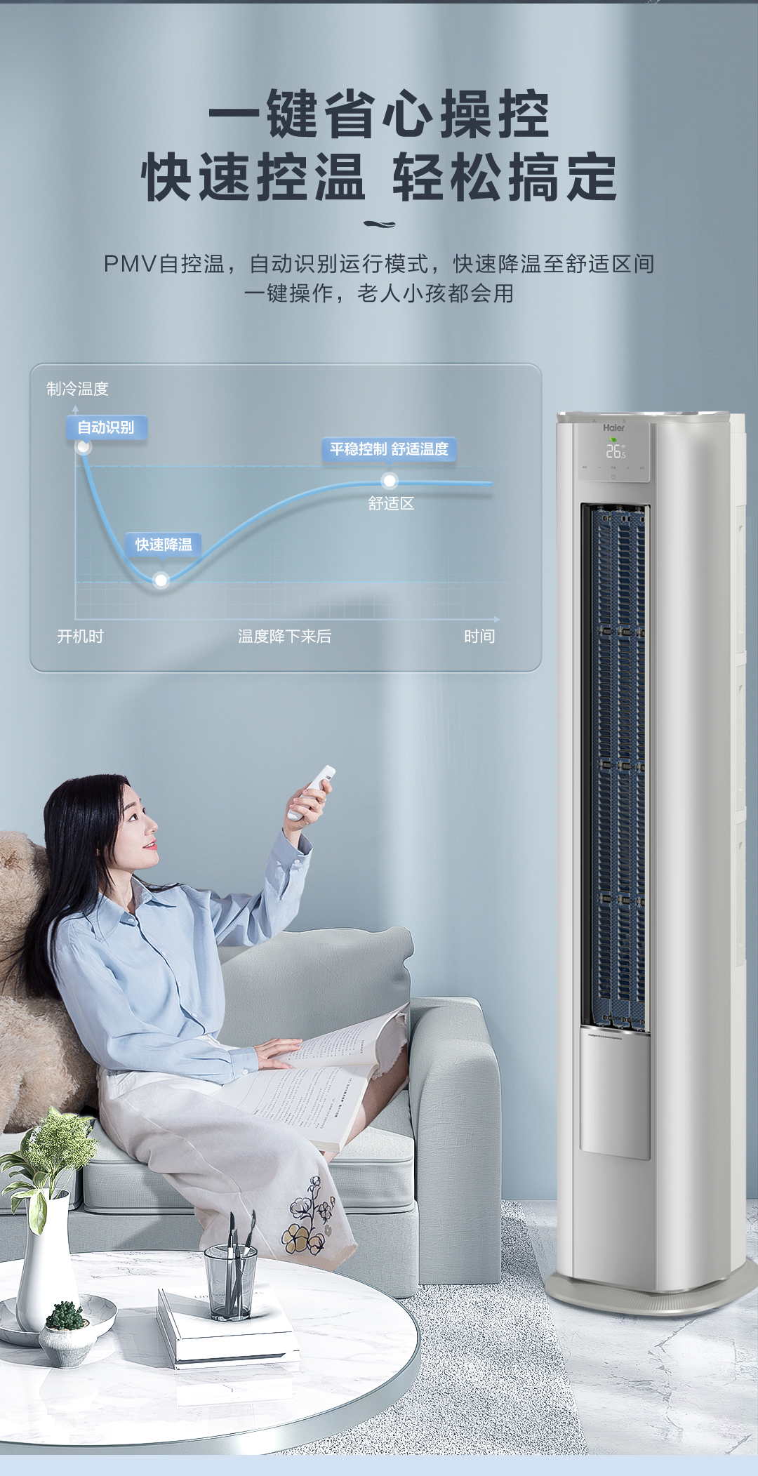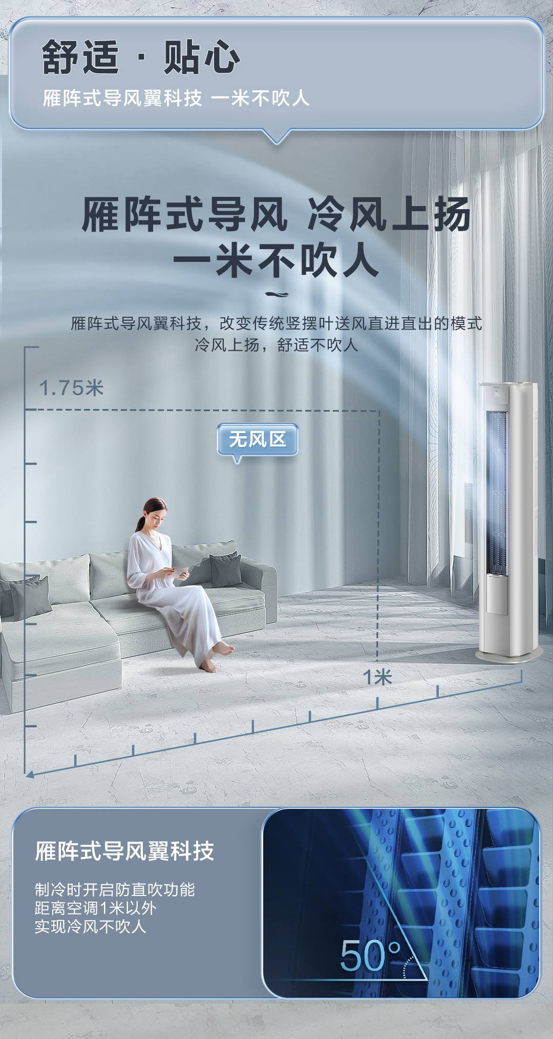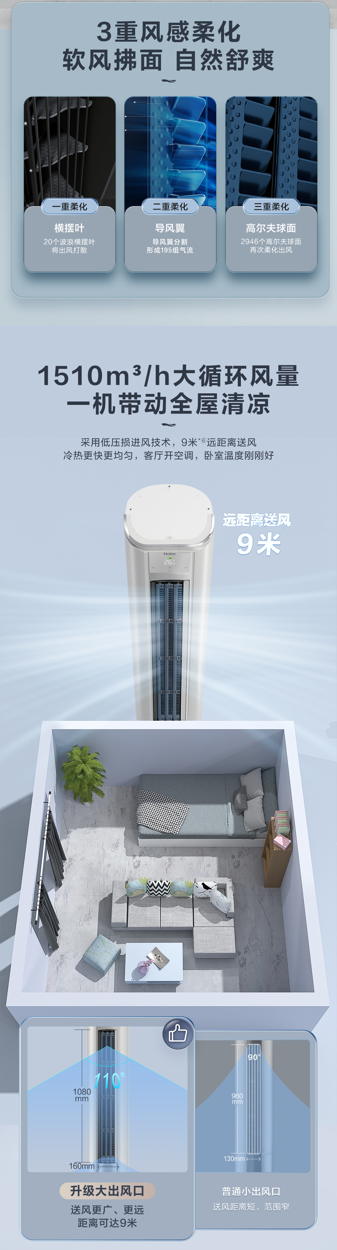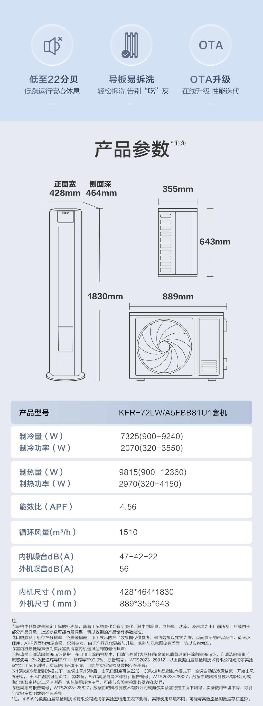 海尔(140193)家用空调KFR-72LW/A5FBB81U115s速冷,30s速热; 雁阵式导风,一步不吹人; 自清洁任意洗,只吹干净风。