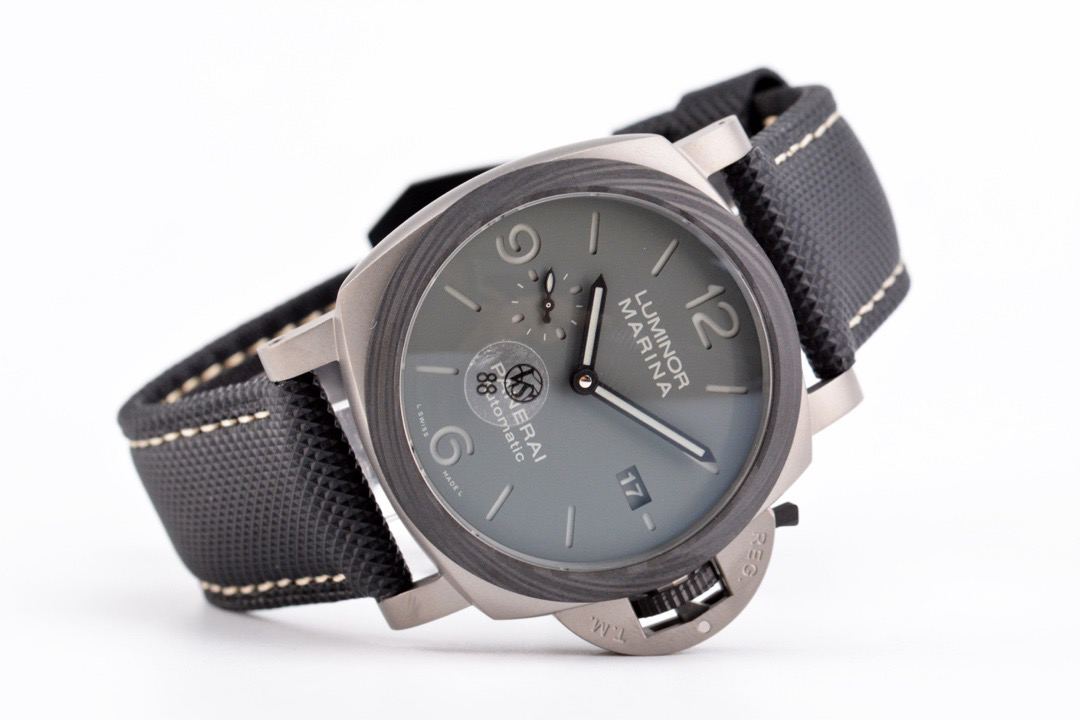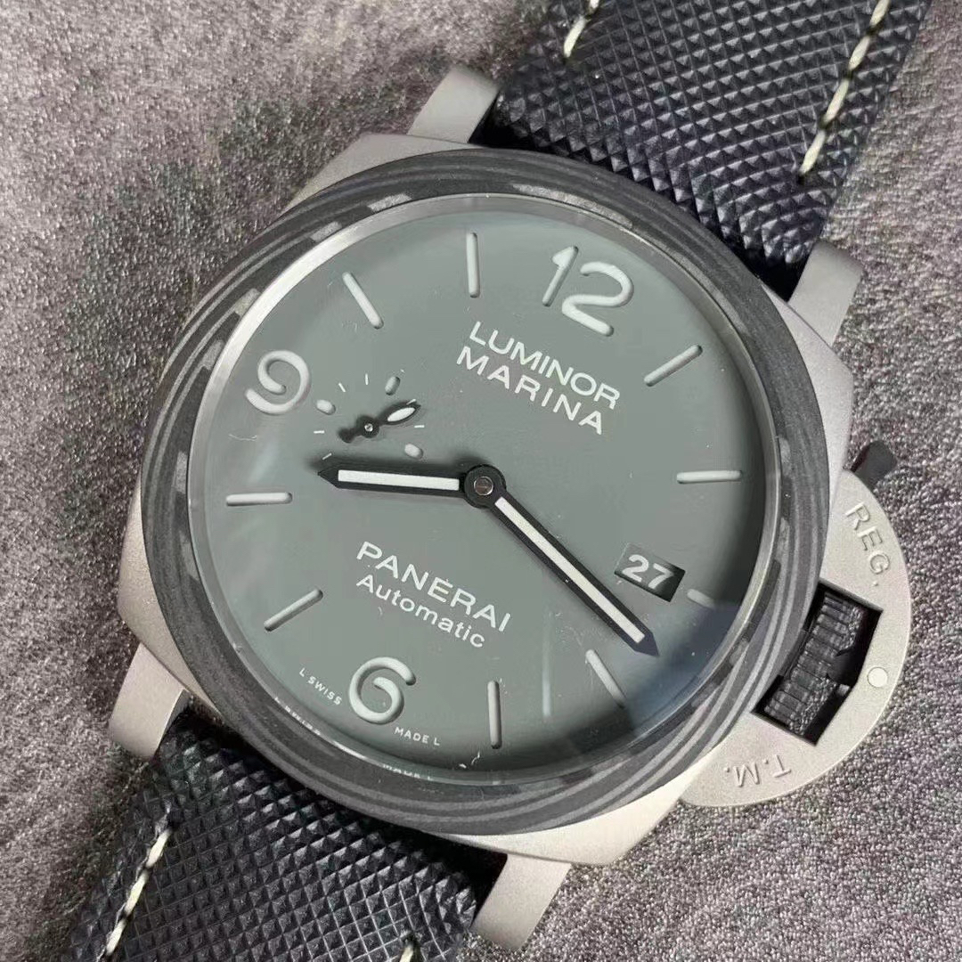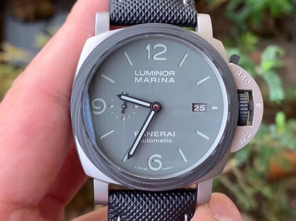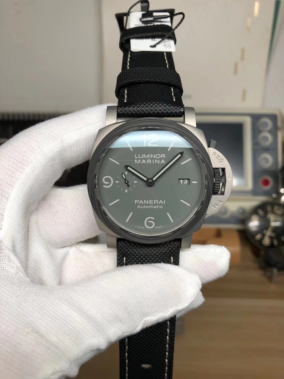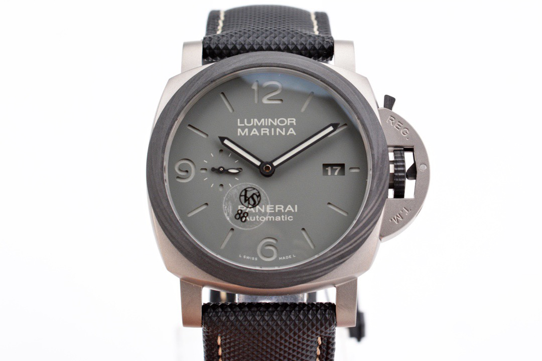 NOOB official新品:沛呐海Luminor Marina 44MM “烟灰”1662 喷砂钛壳工业感十足护侨把 圈口 把头深色碳纤维 色调层次高级上档次,与1661 相似却比1661 更闷骚