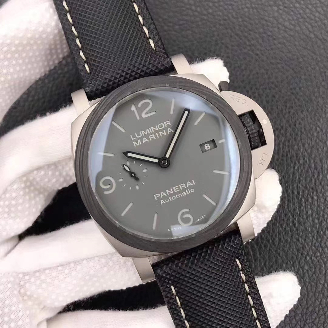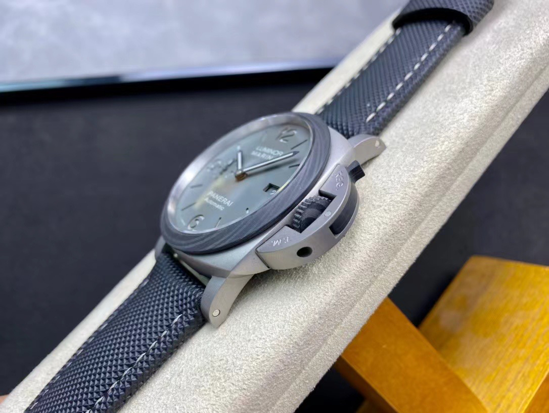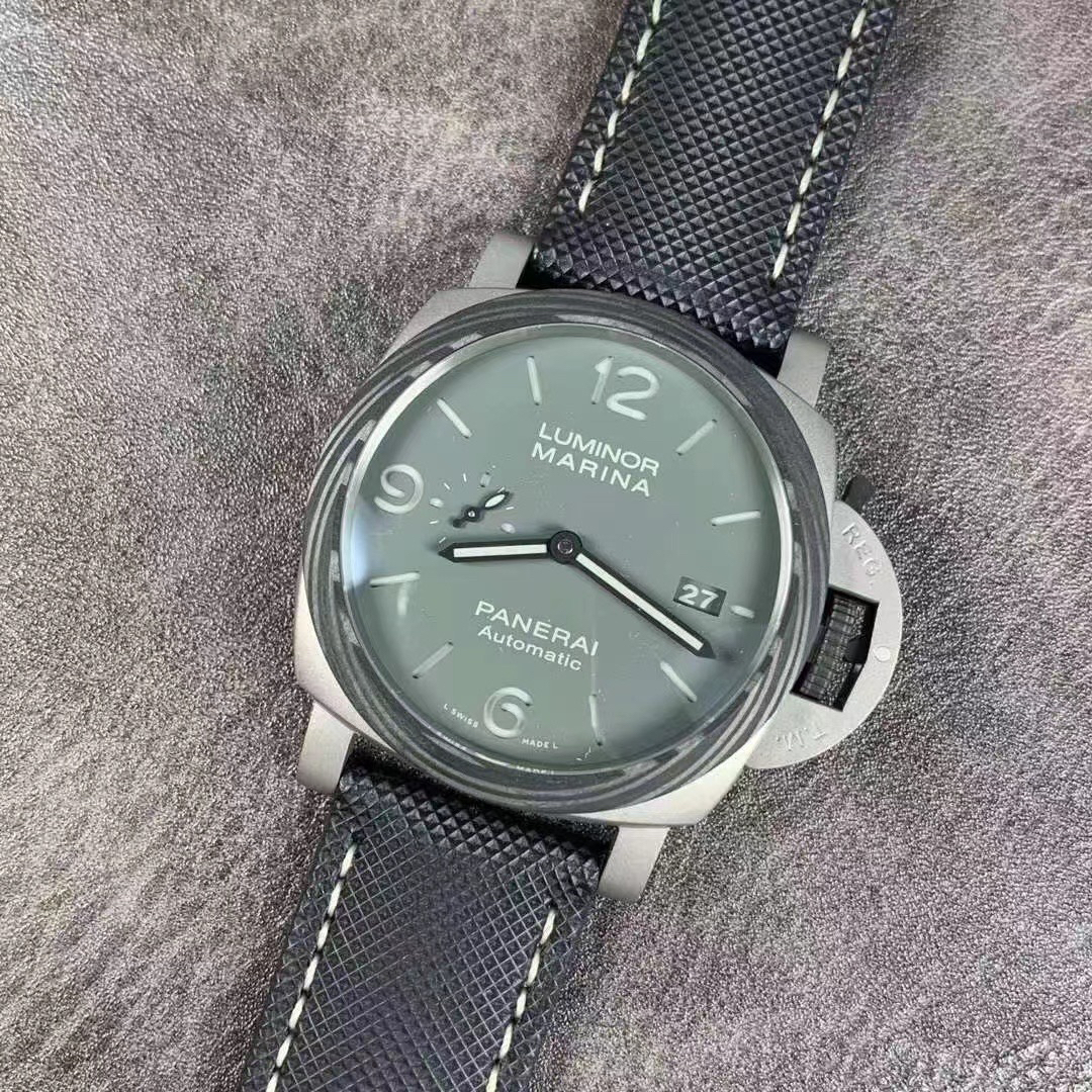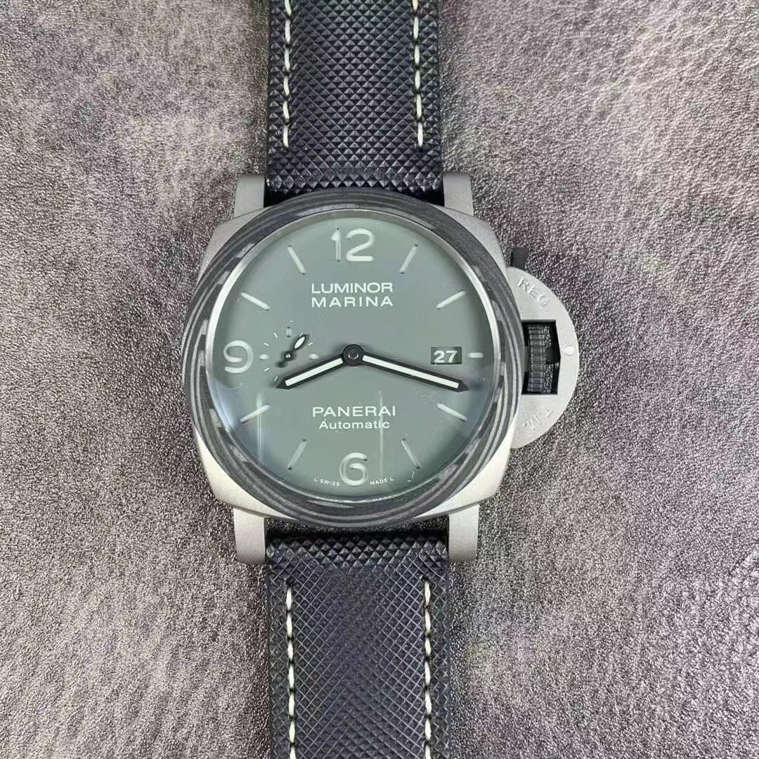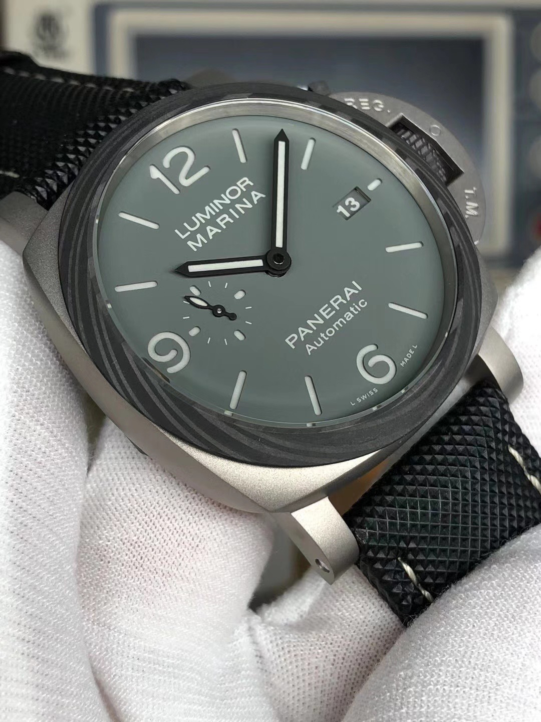 NOOB official新品:沛呐海Luminor Marina 44MM “烟灰”1662 喷砂钛壳工业感十足护侨把 圈口 把头深色碳纤维 色调层次高级上档次,与1661 相似却比1661 更闷骚