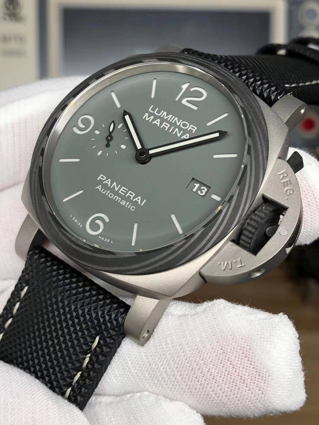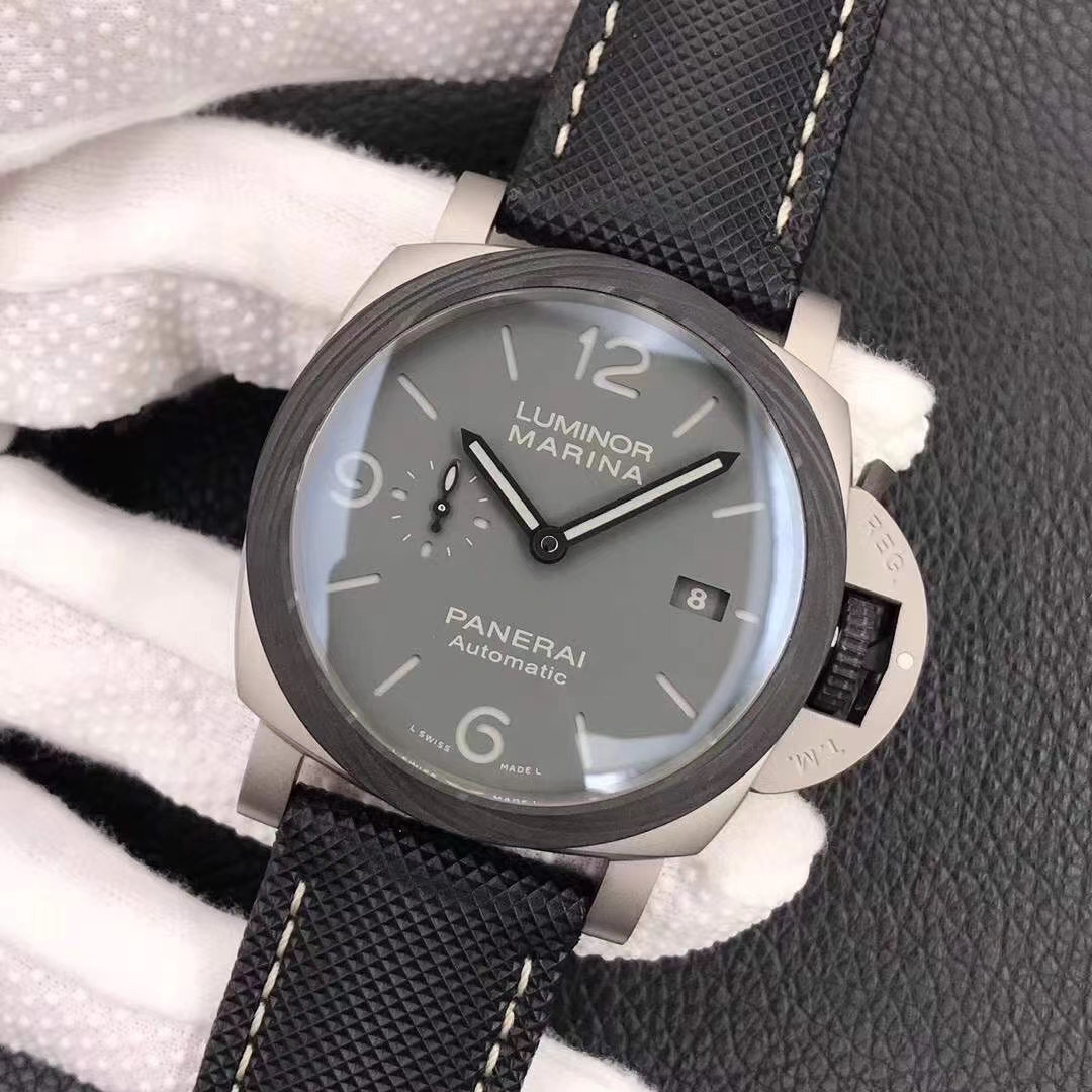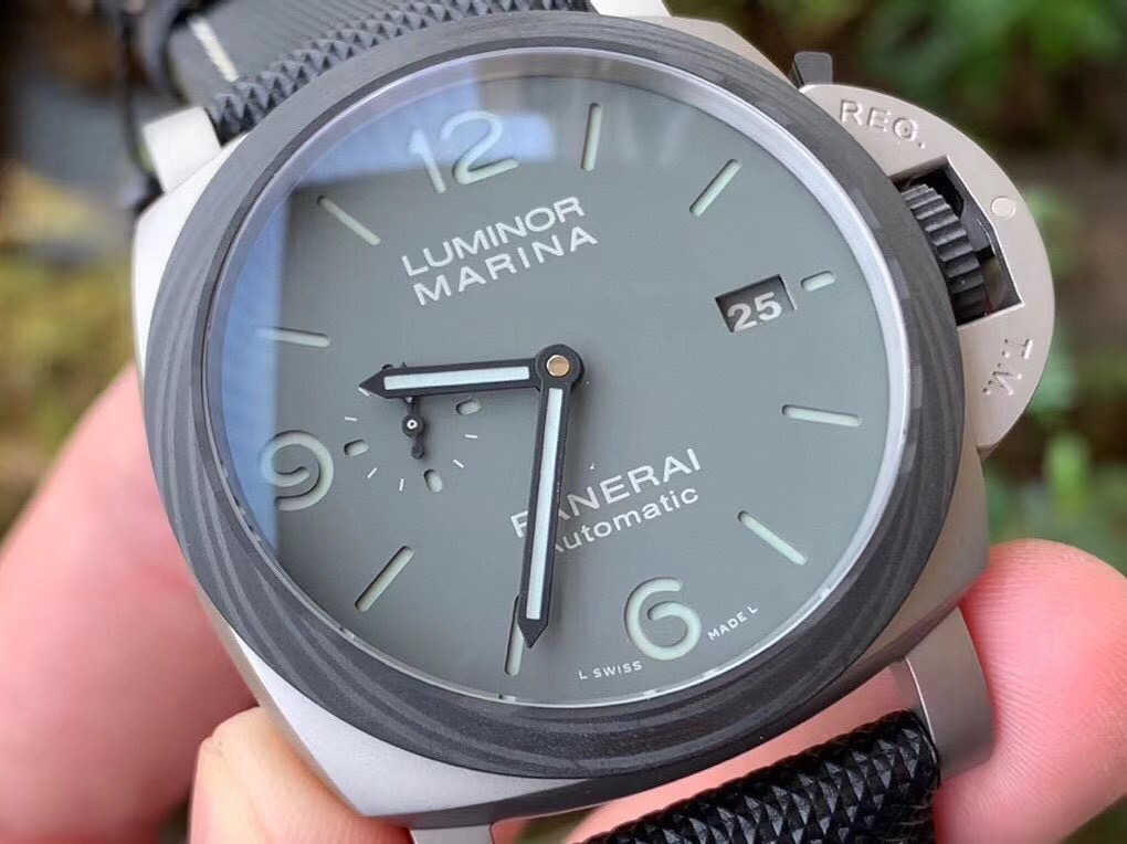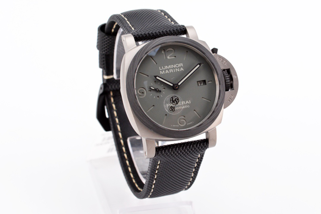 NOOB official新品:沛呐海Luminor Marina 44MM “烟灰”1662 喷砂钛壳工业感十足护侨把 圈口 把头深色碳纤维 色调层次高级上档次,与1661 相似却比1661 更闷骚