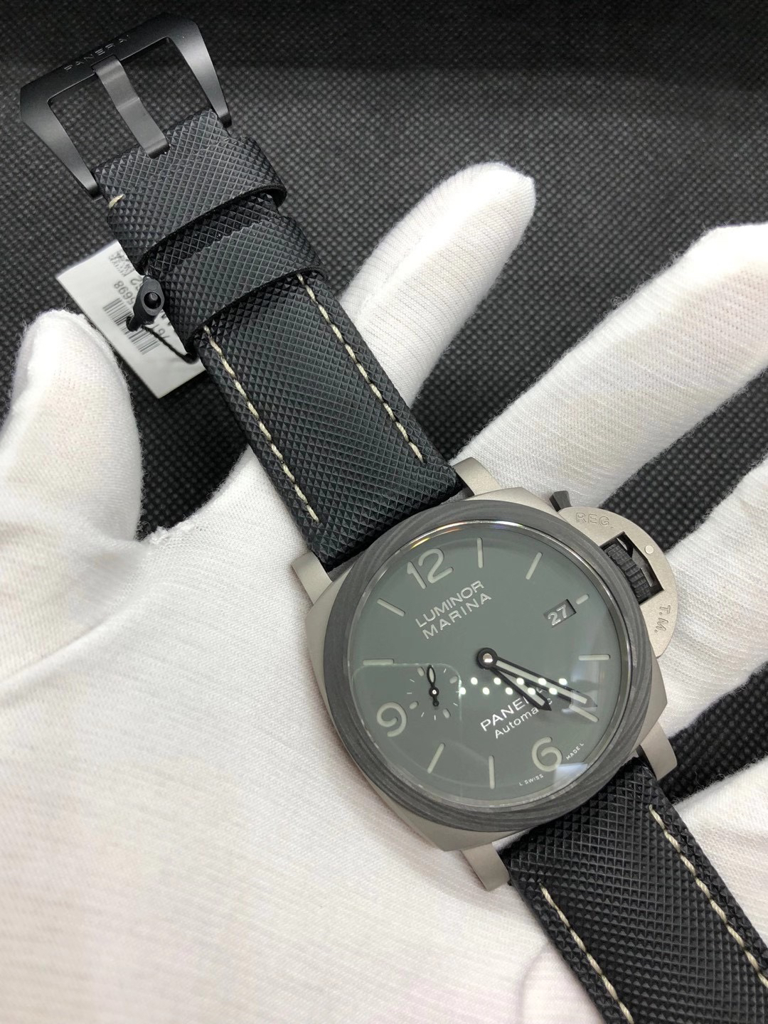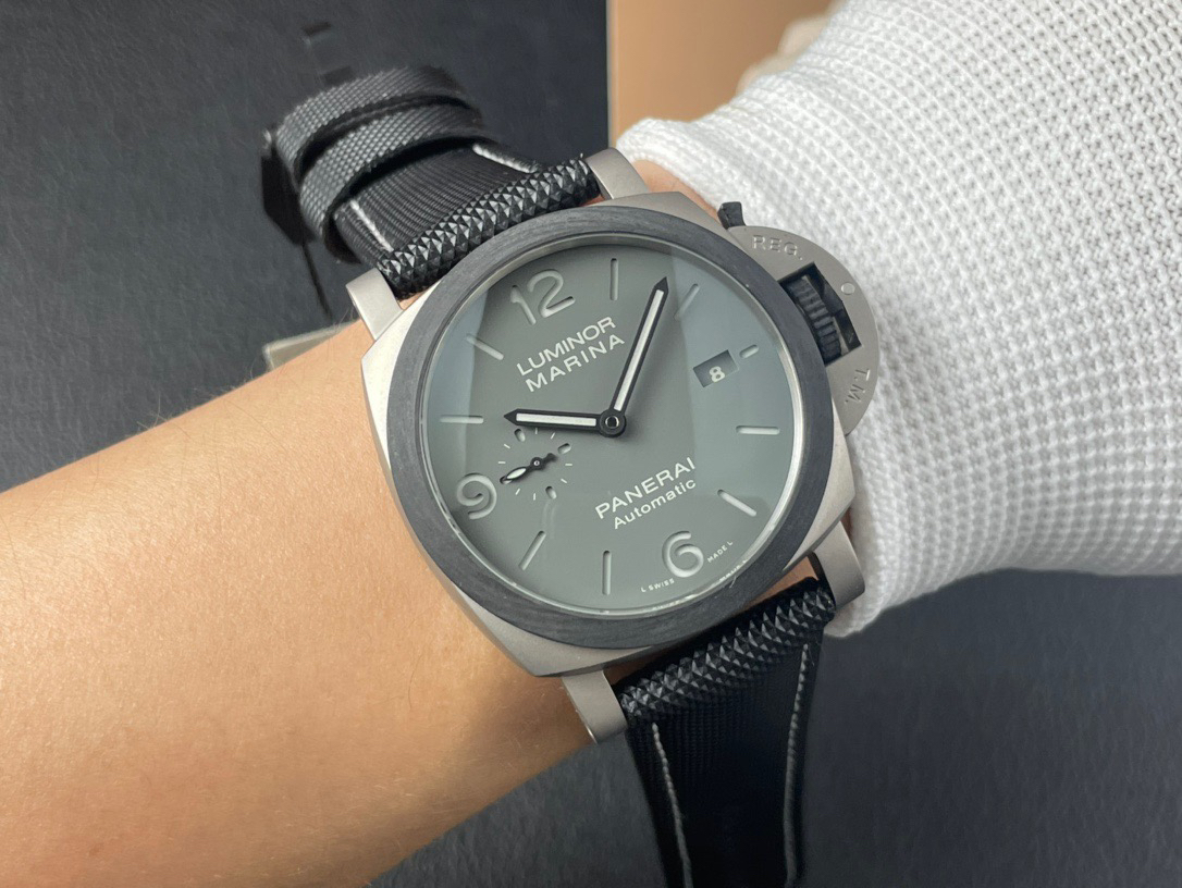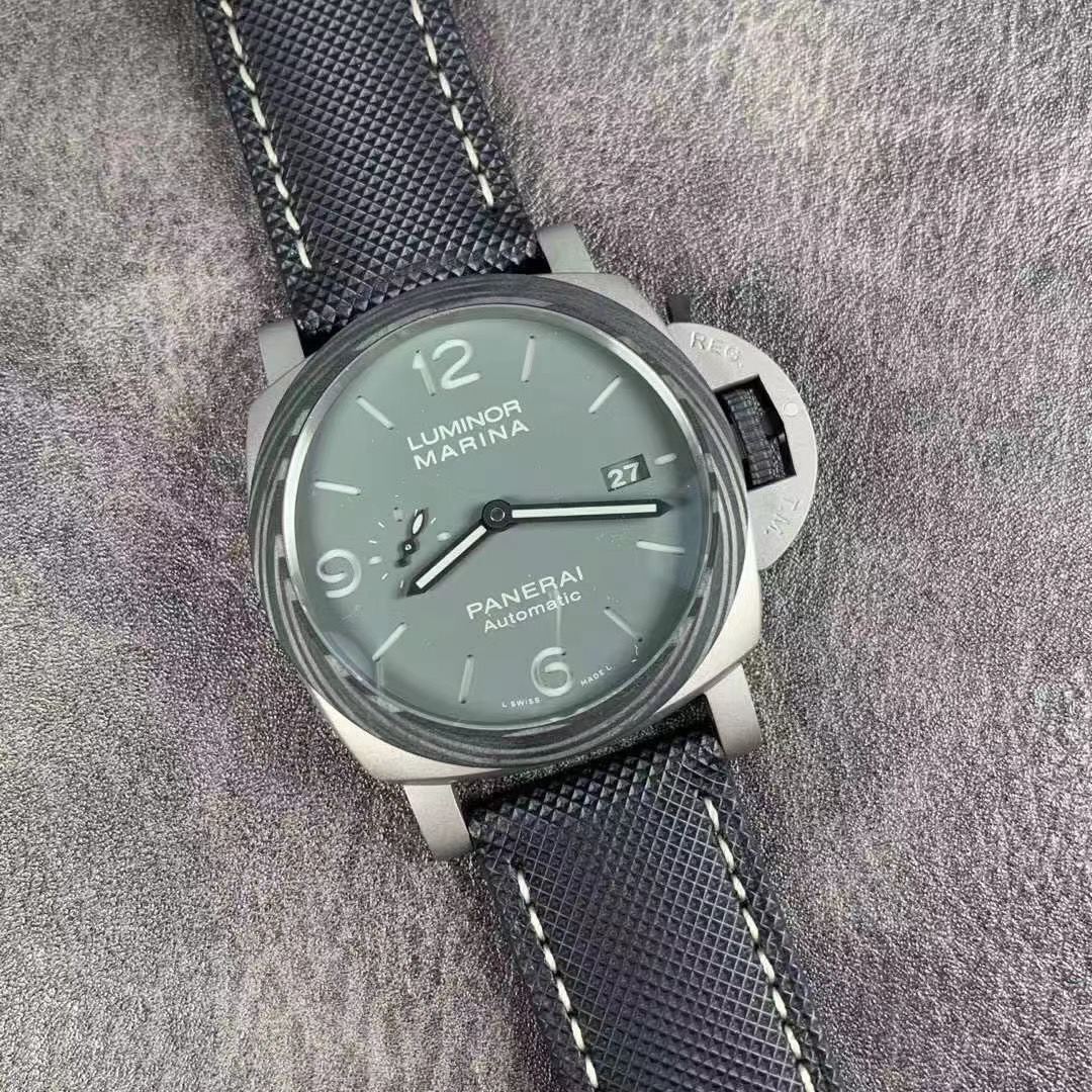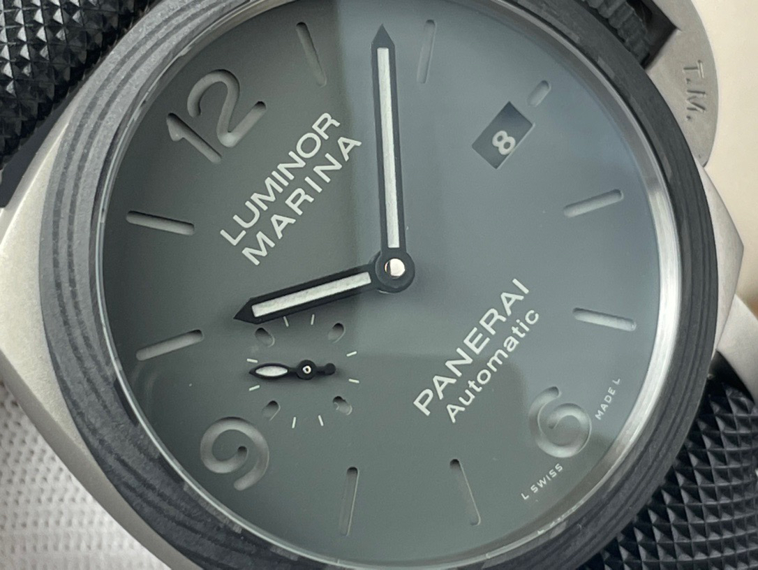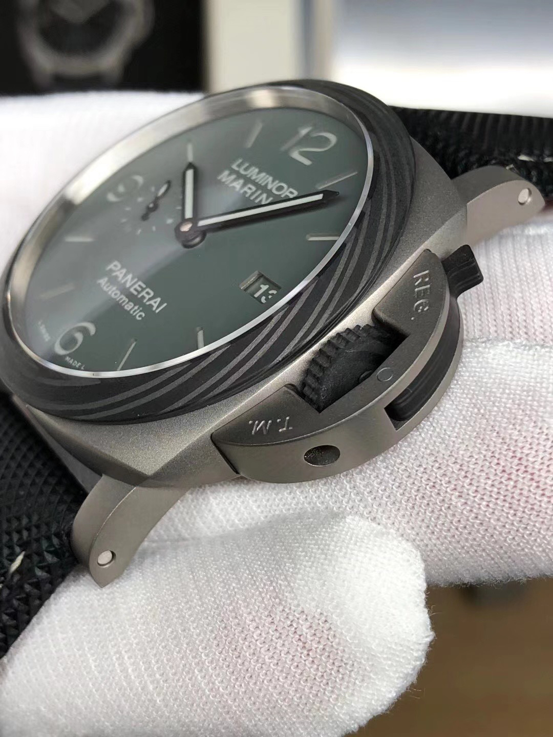 NOOB official新品:沛呐海Luminor Marina 44MM “烟灰”1662 喷砂钛壳工业感十足护侨把 圈口 把头深色碳纤维 色调层次高级上档次,与1661 相似却比1661 更闷骚