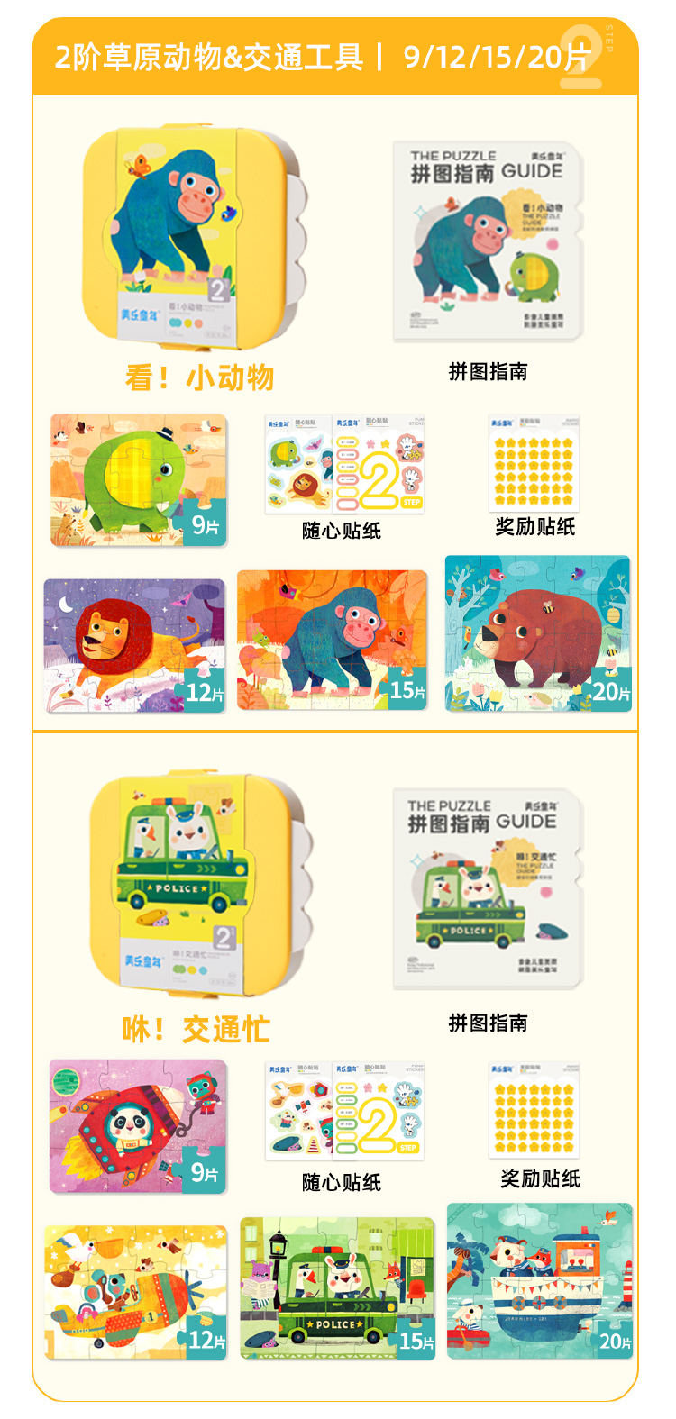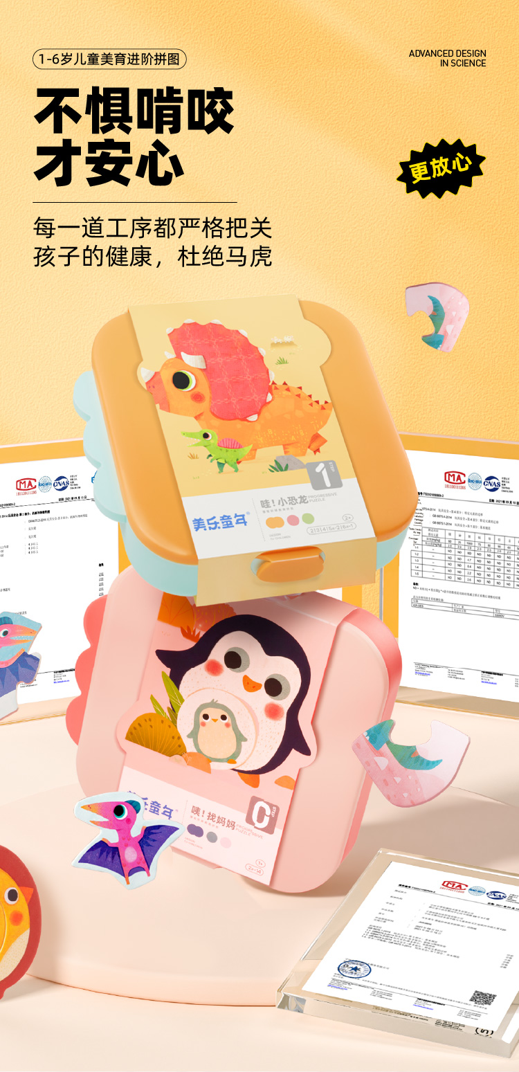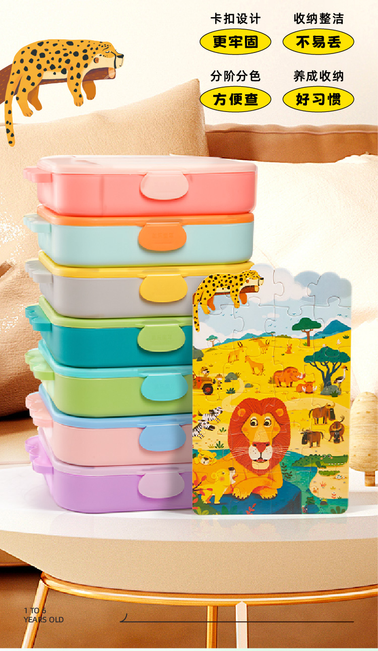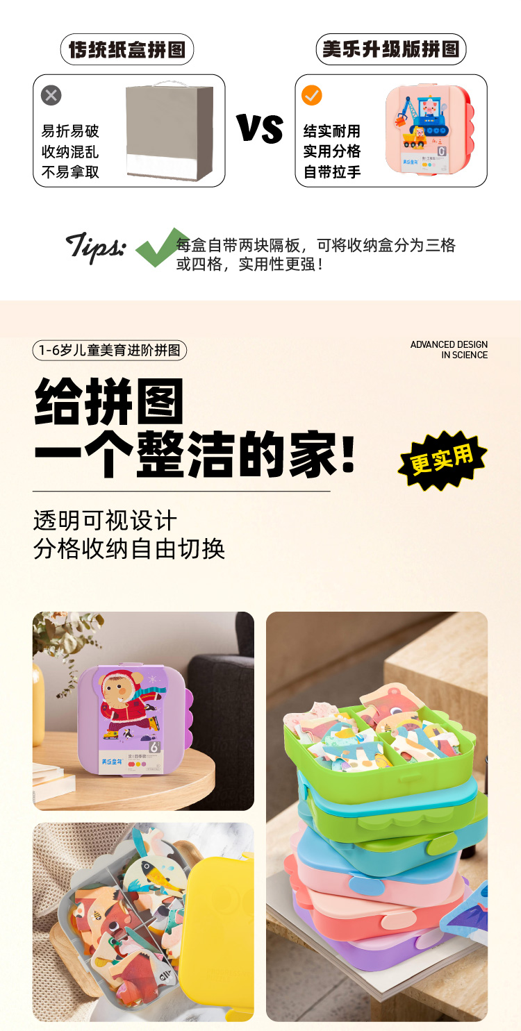 【分格收纳,给拼图一个整洁的家】美乐童年美育拼图PP材质结实耐用,安全无味,提升宝宝专注力,从简到难,能力步步提升