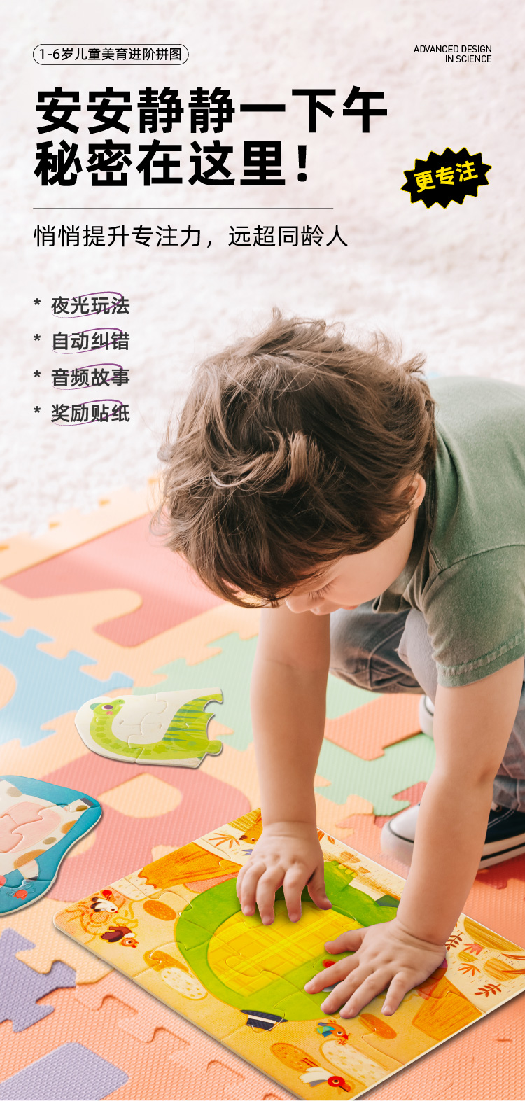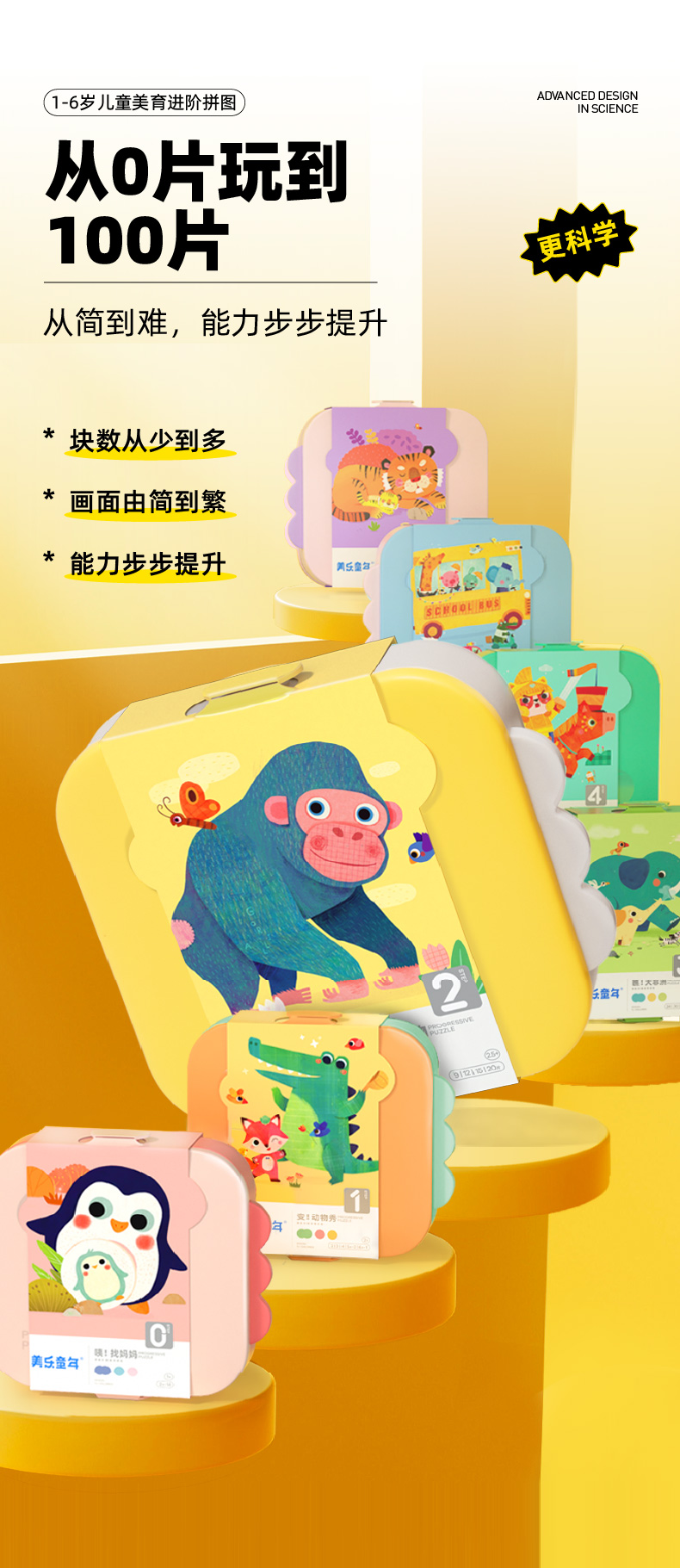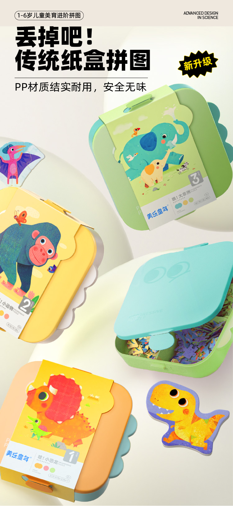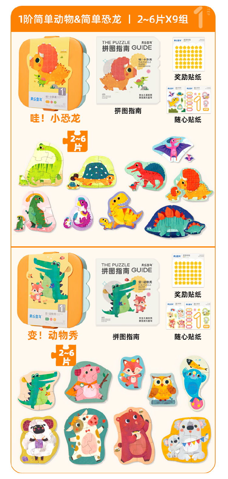 【分格收纳,给拼图一个整洁的家】美乐童年美育拼图PP材质结实耐用,安全无味,提升宝宝专注力,从简到难,能力步步提升