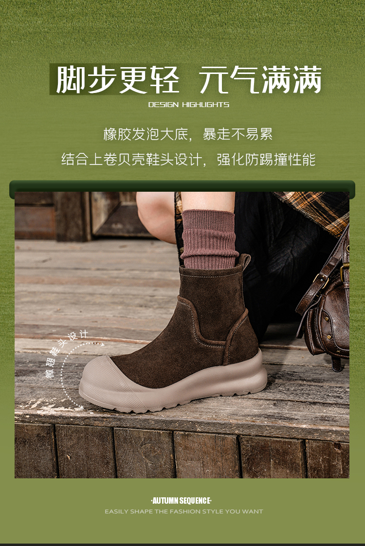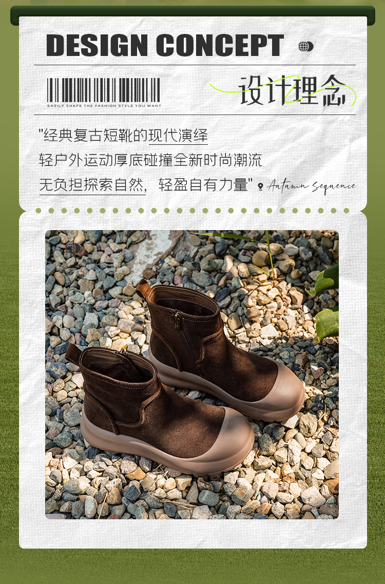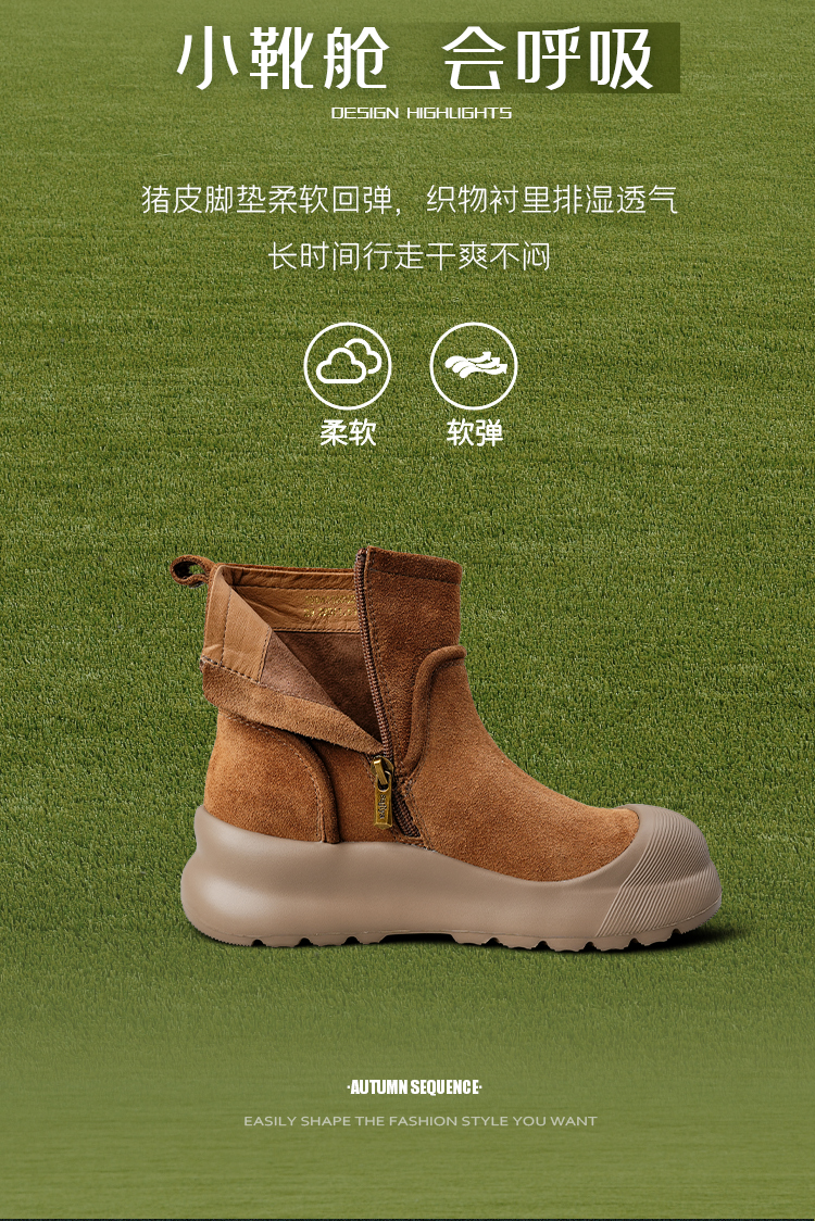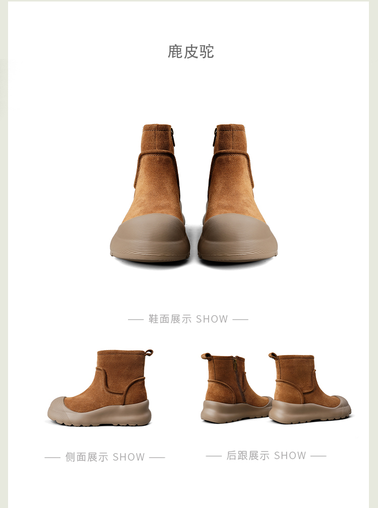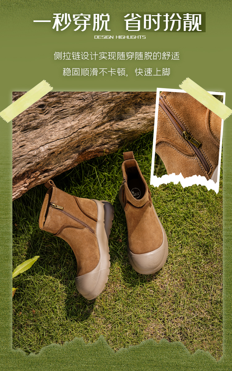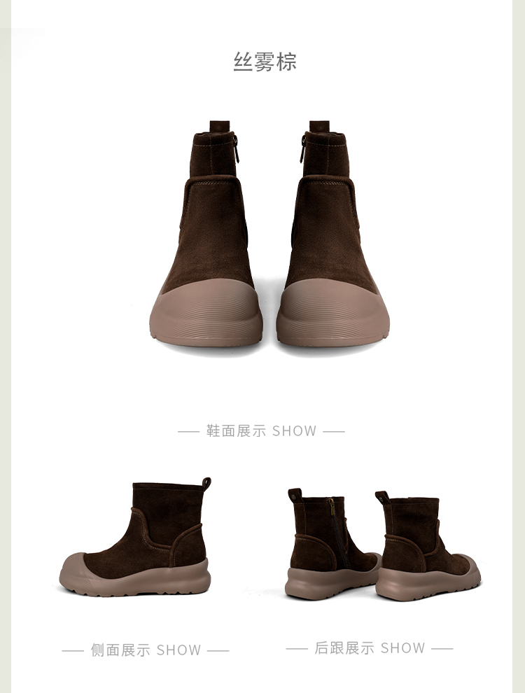 Safiya/索菲娅2025户外风厚底侧拉链反绒复古轻便百搭休闲短靴SFD4116062