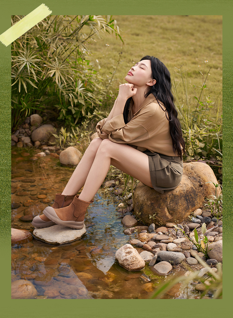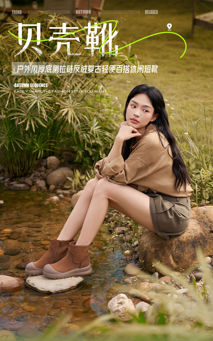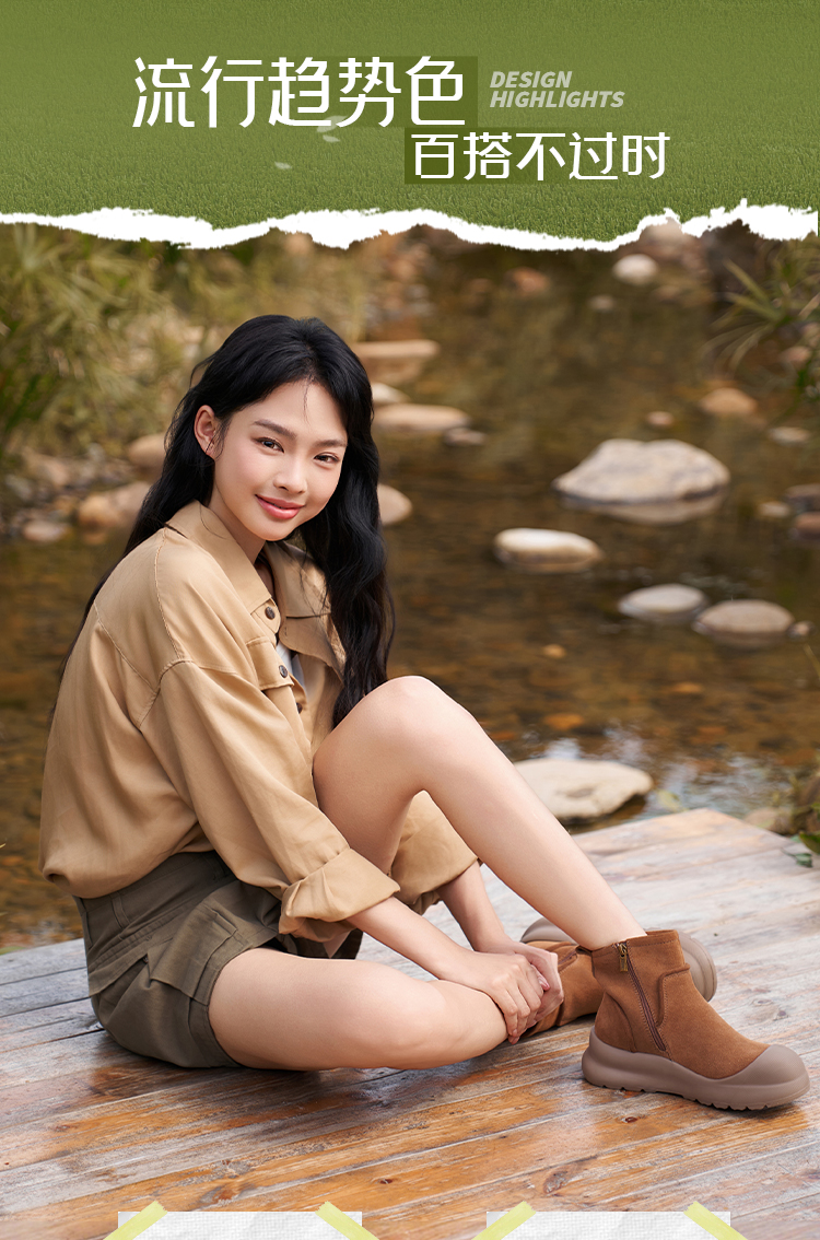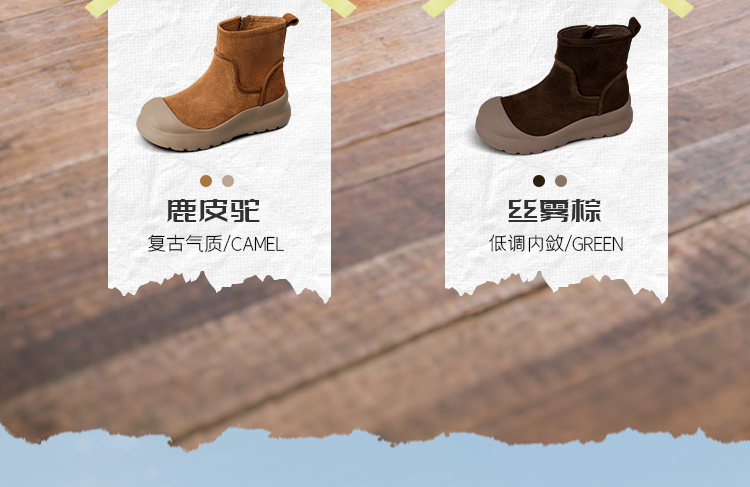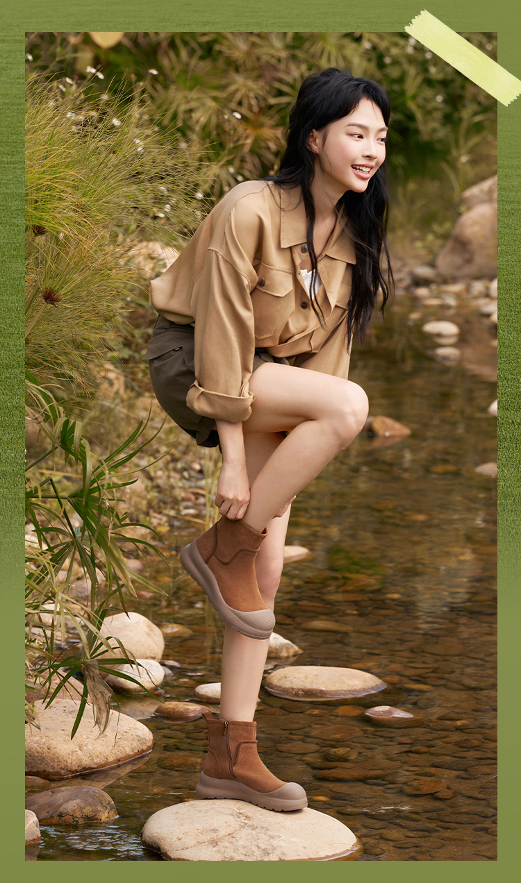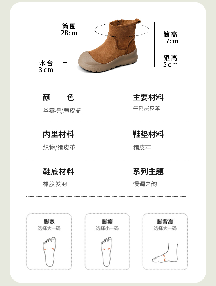 Safiya/索菲娅2025户外风厚底侧拉链反绒复古轻便百搭休闲短靴SFD4116062