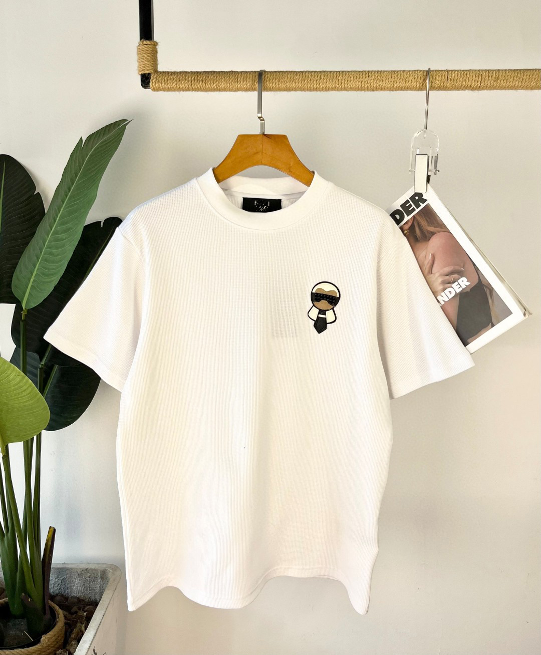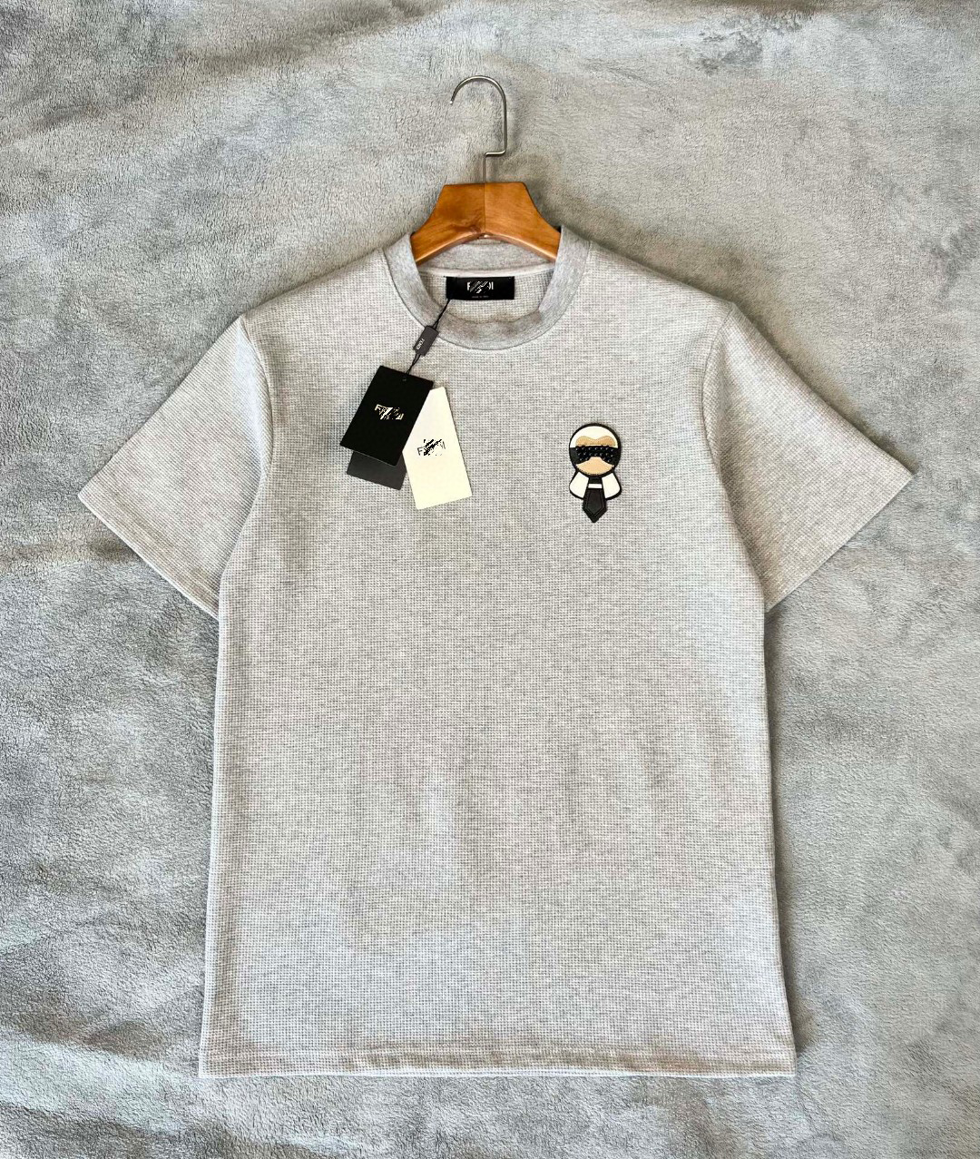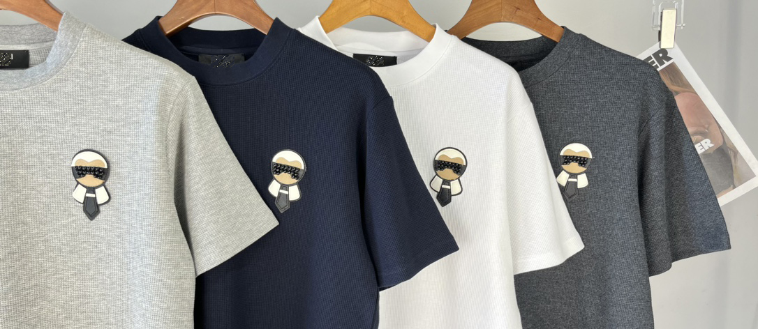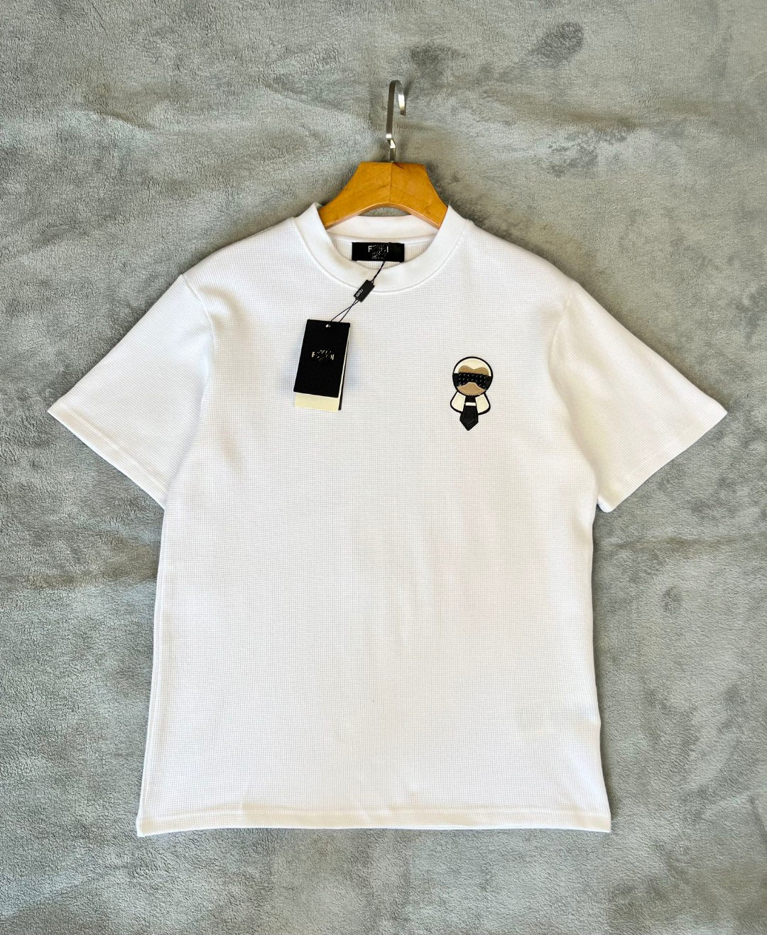 FD 24春季新款胸口老佛爷徽标图案圆领短袖 采用华夫格面料 宽松版型男女同款非常的时尚百搭~