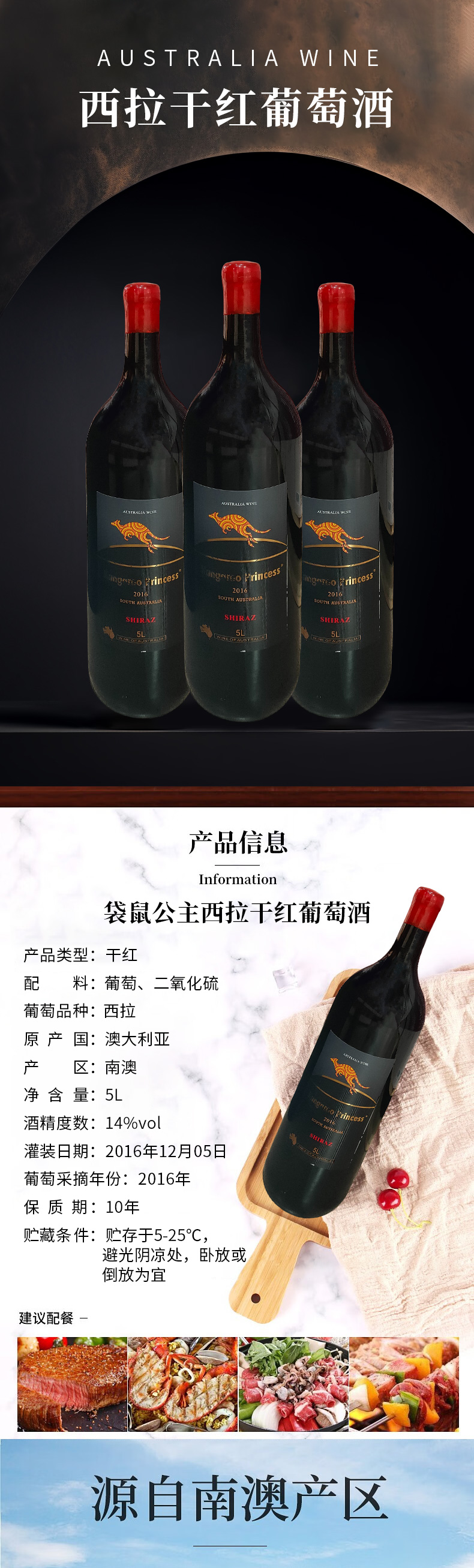澳大利亚进口袋鼠公主西拉干红葡萄酒5L