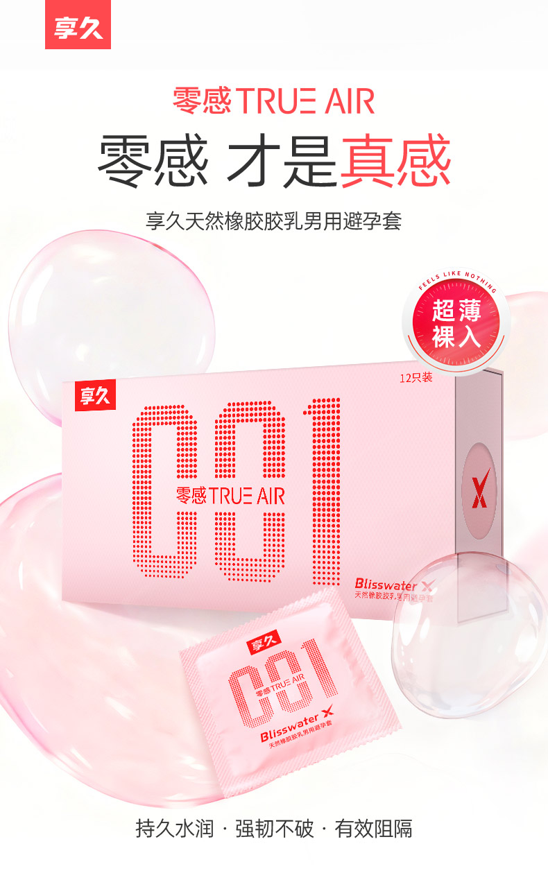 享久避孕套超薄持久水润润滑安全套计生用品零感TRUEAIR天然橡胶胶乳男用避孕套