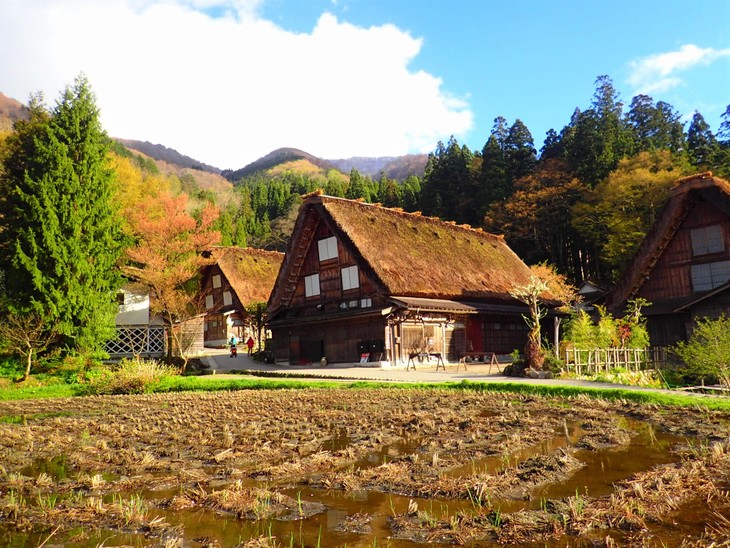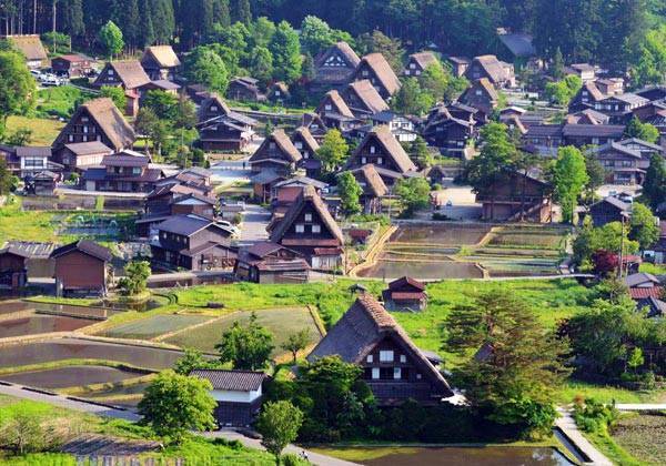 3,白川乡的荻町地区因合掌造而著称。白川乡与五箇山等具有独特景观的村落以“白川乡与五箇山的合掌造聚落”之名于1995年12月被登录为联合国教科文组织的世界遗产。白川乡位于岐阜县西北部白山山麓,是四面环山、水田纵横、河川流经的安静山村。那里“合掌造”(茅草的人字形木屋顶)式的民宅,110 多栋连成一片,1995 年被指定为联合国教科文组织的世界文化遗产。在野外博物馆的“合掌造民家园”里,将 25 栋在白川乡各地使用过的“合掌造”房屋移建、保存在这里。园内还按古代农村的模样,建有寺庙、水车小屋、烧炭小屋、马厩等建筑。其中有染色、机织等传统工艺的表演,游人在这里还能亲自体验一下。在荞麦面道场,可体验日本荞麦面的打制。,秋天,举办浊酒节,节日期间请普通观光者喝上一盅混有米饭的白浊酒。在会场之一的白川八幡神社内,办有浊酒节之馆,利用木偶人模型介绍在节日上举行的狮子舞等。荻町城迹瞭望台则是俯瞰村落风光的绝好场所。