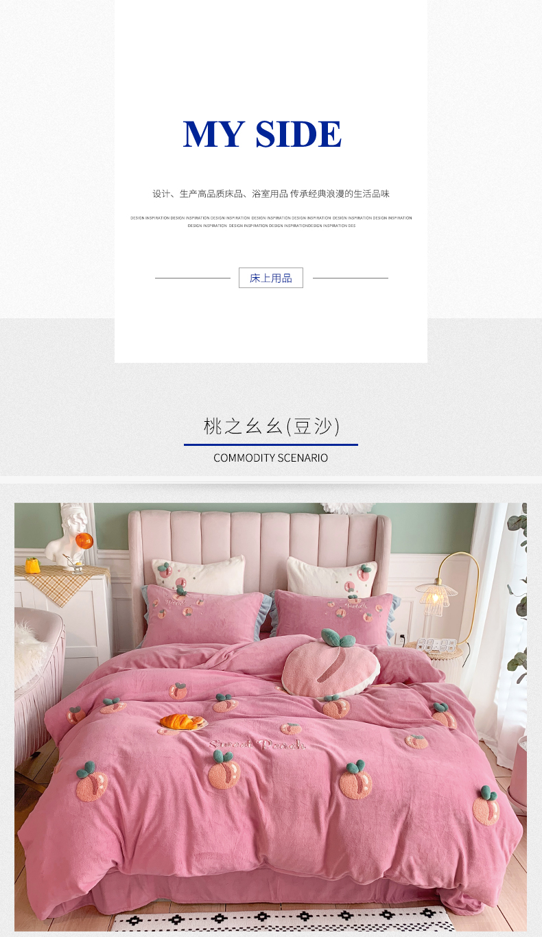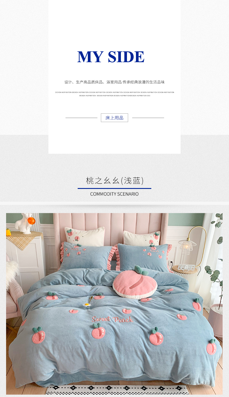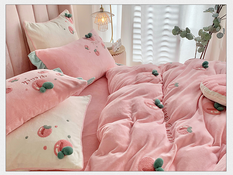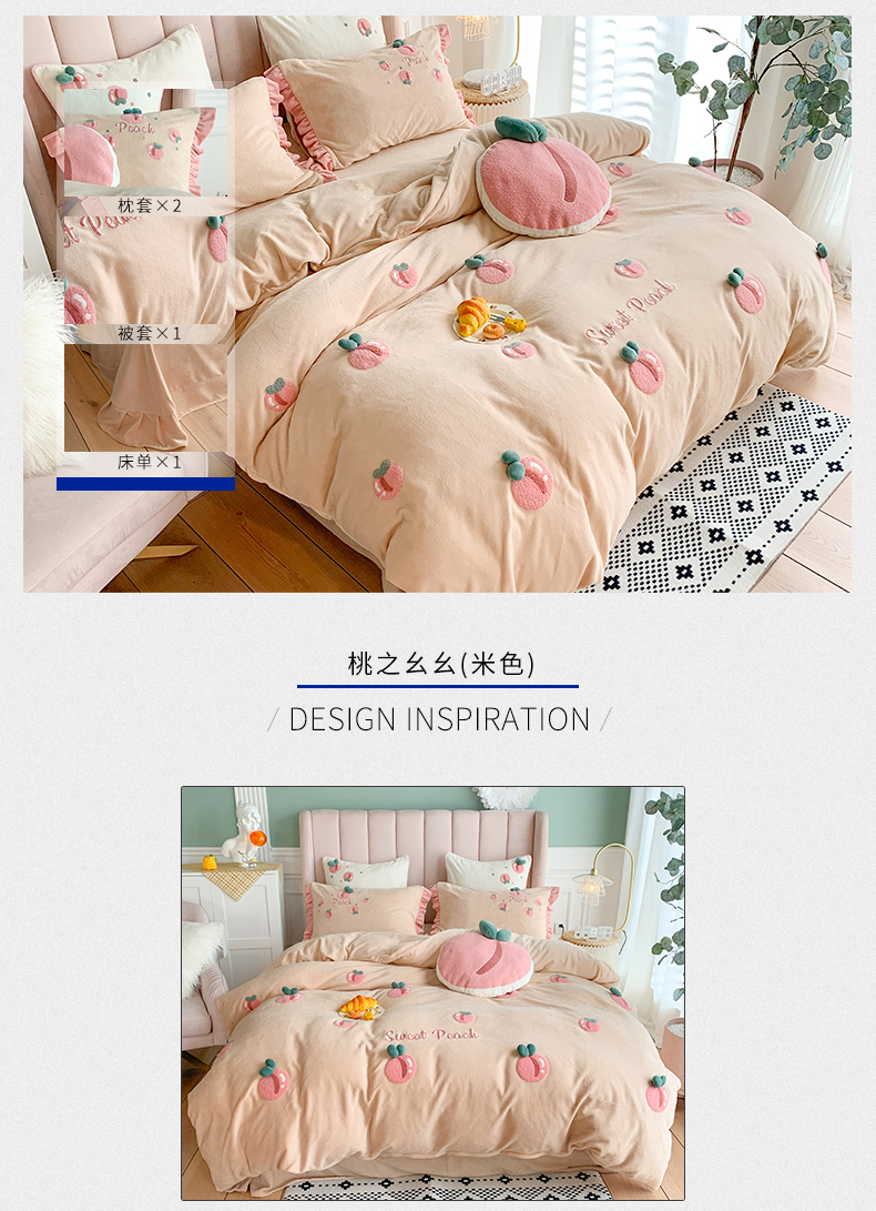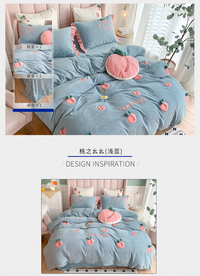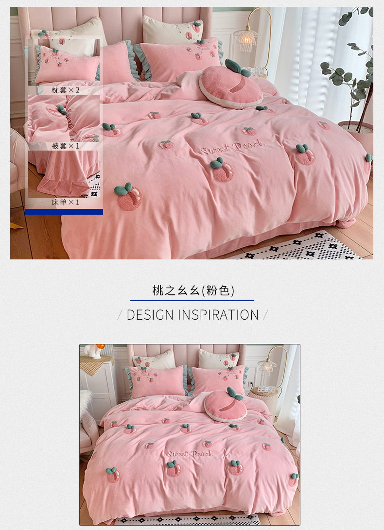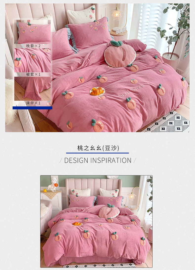 立体毛巾绣牛奶绒秋冬保暖四件套/三件套 御寒被套床单-桃之幺幺